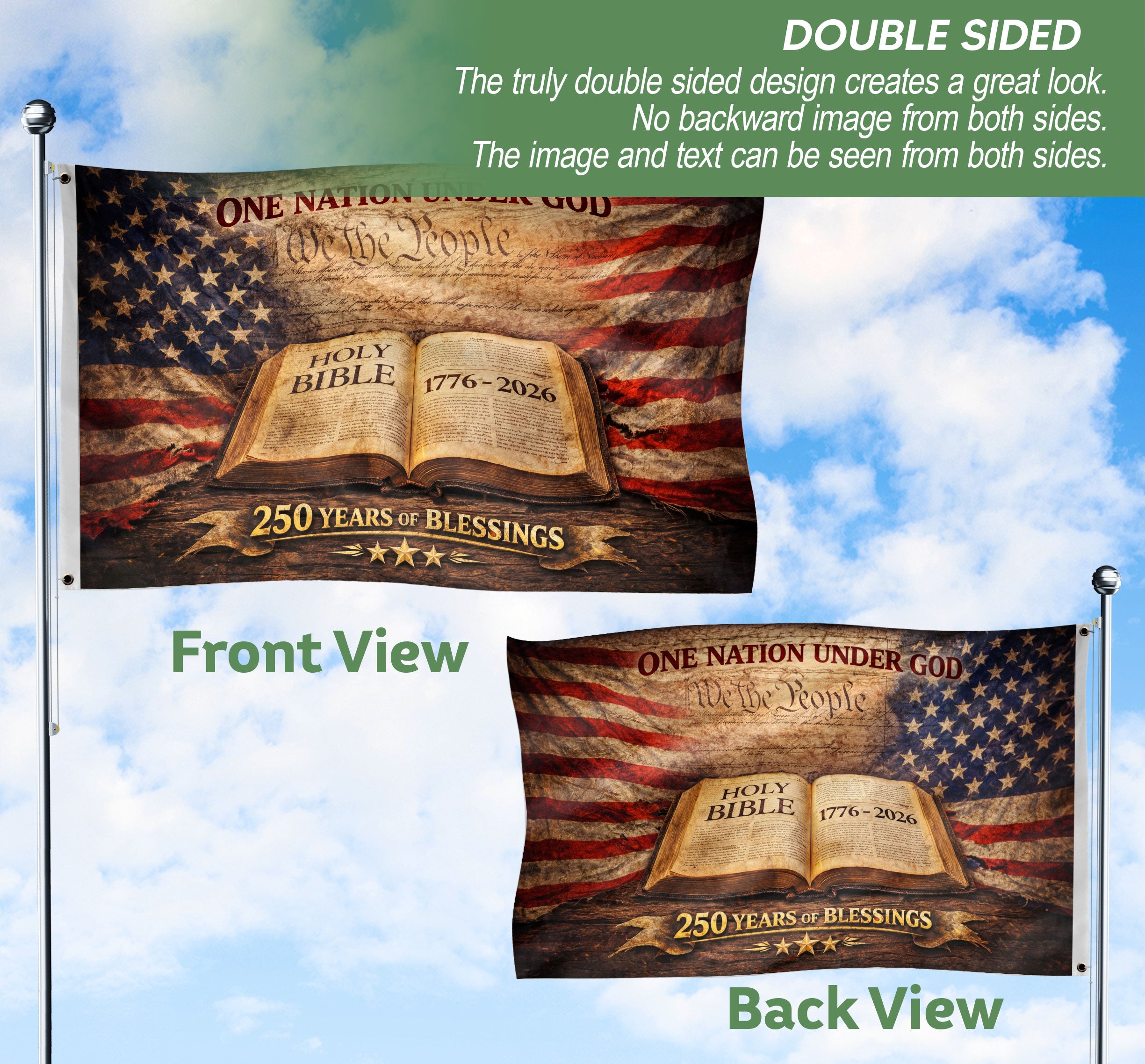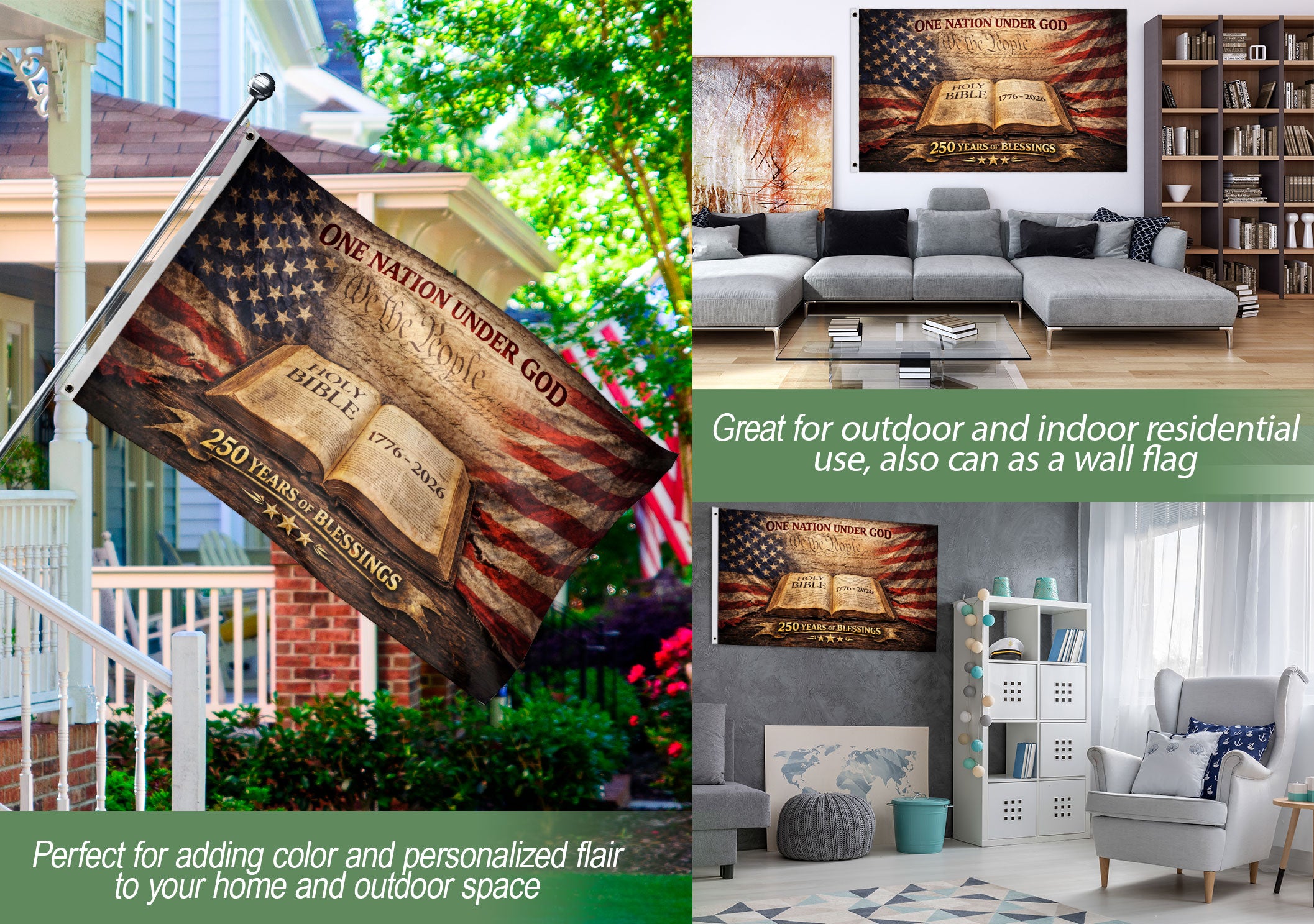 One Nation Under God 250th Anniversary Flag 1776-2026 Holy Bible We the People Patriotic Banner