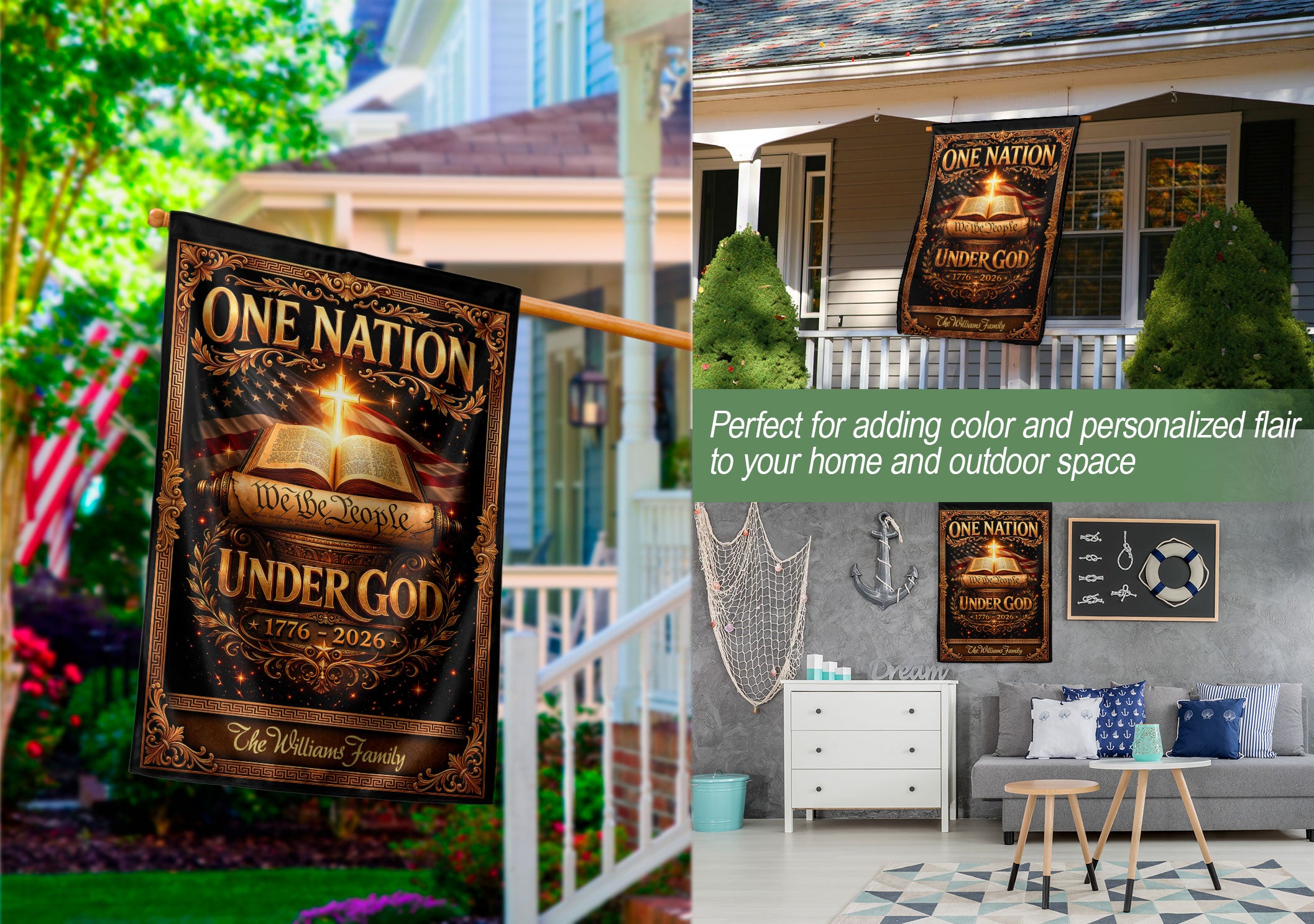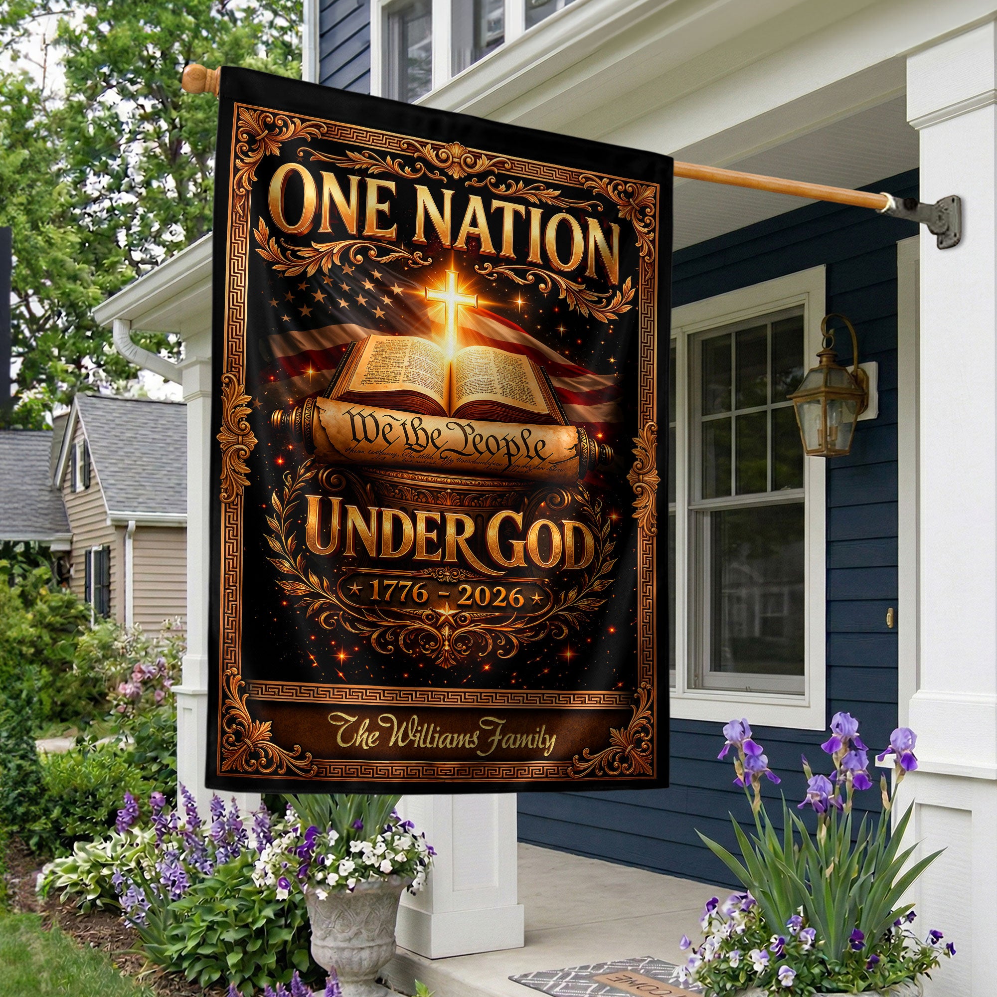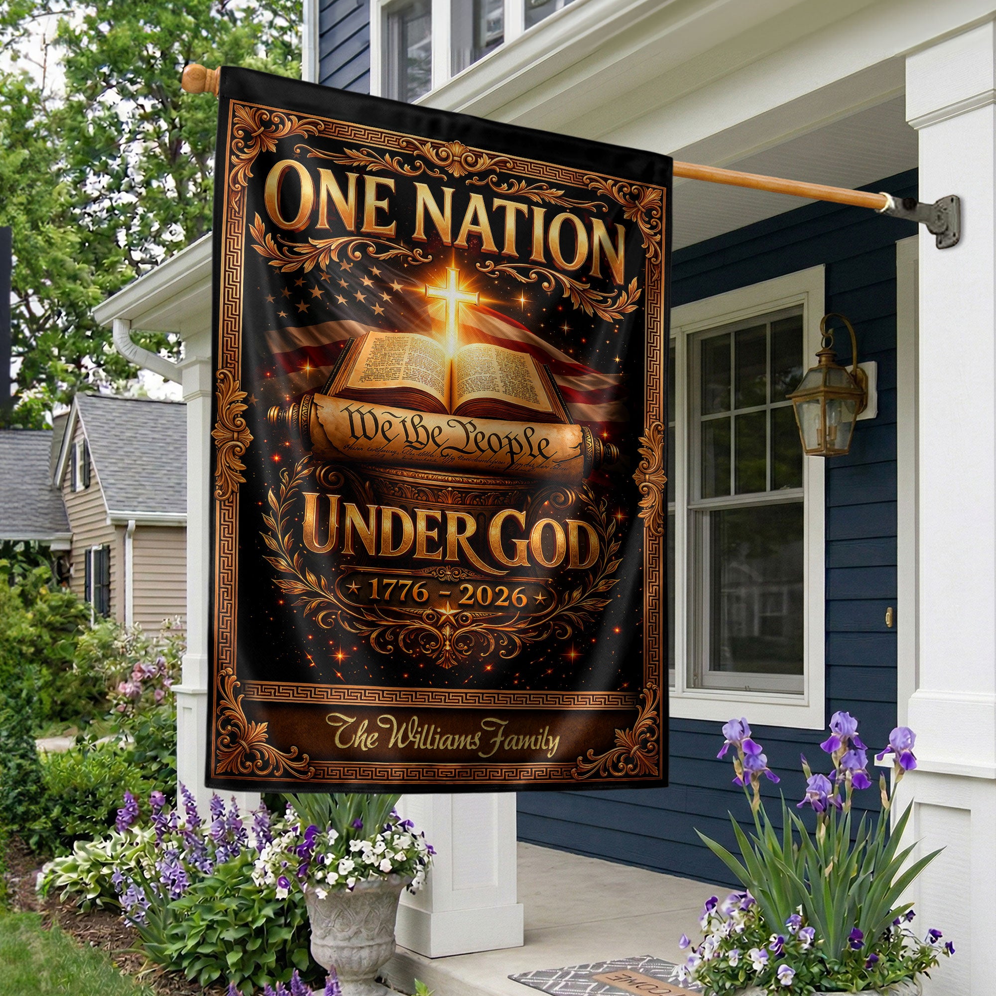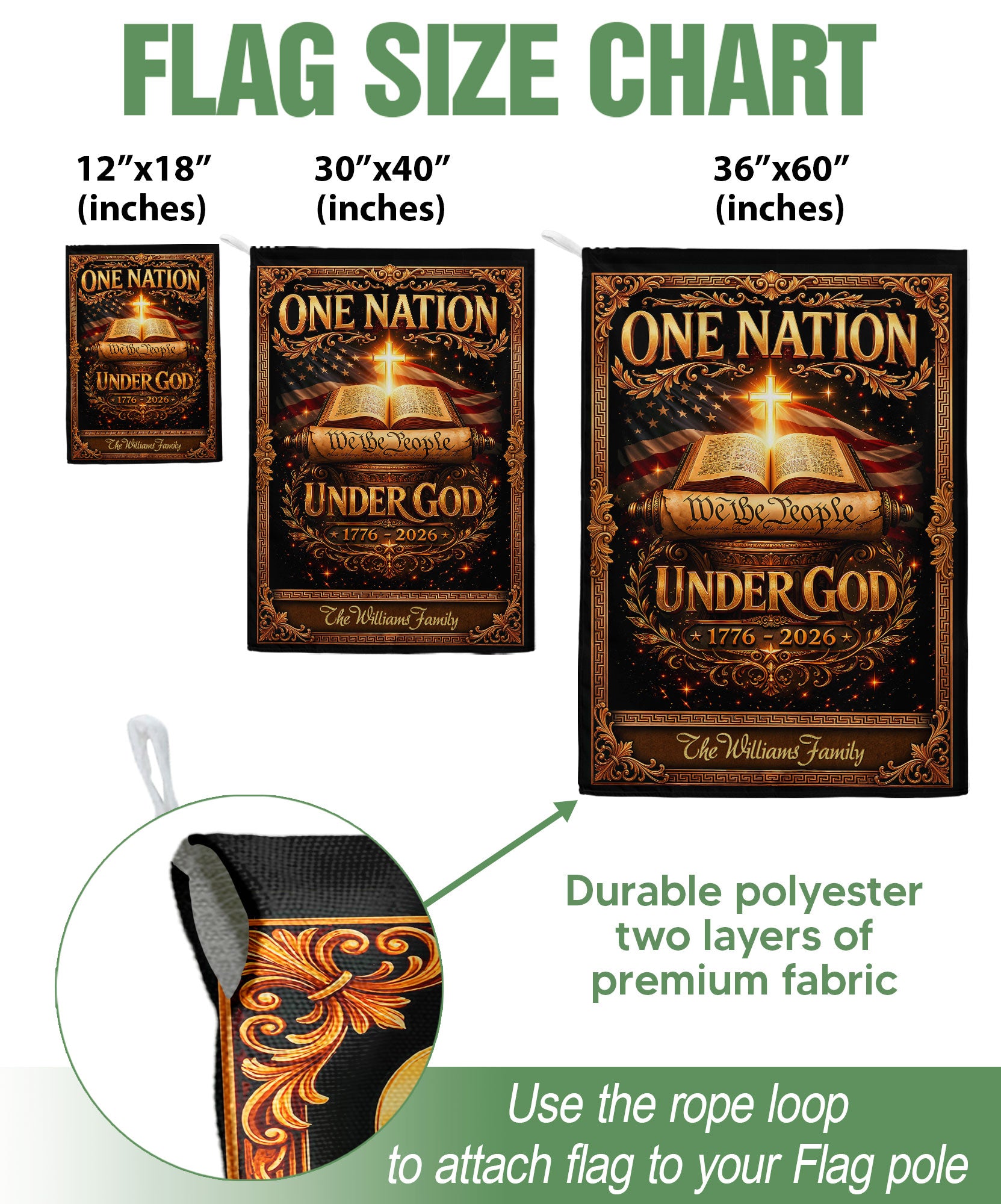 One Nation Under God 250th Anniversary Garden Flag Custom Family Name Bible Cross We the People 1776-2026