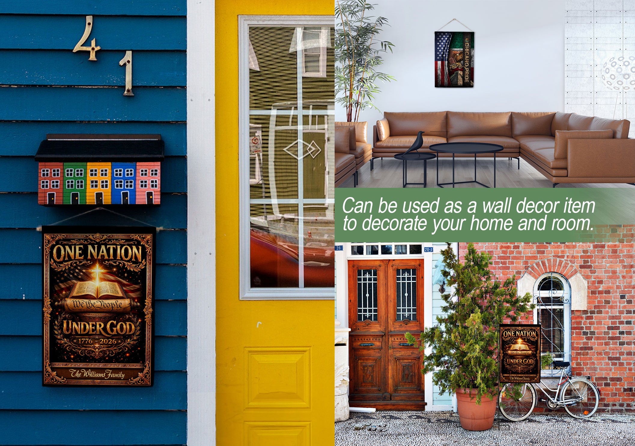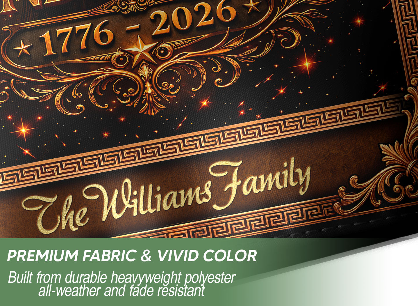 Celebrate America’s 250th anniversary from 1776 to 2026 with this custom family name garden flag. The design proudly features ‘One Nation Under God,’ the Bible, a Christian cross, and ‘We the People’ to honor the nation’s spiritual heritage and historical journey. Crafted for outdoor display, this personalized garden flag adds patriotic pride to your yard, porch, or garden bed. Ideal for families, history enthusiasts, and faith-based celebrations. Customize with your family name for a unique commemorative piece that withstands weather and serves as a meaningful gift.