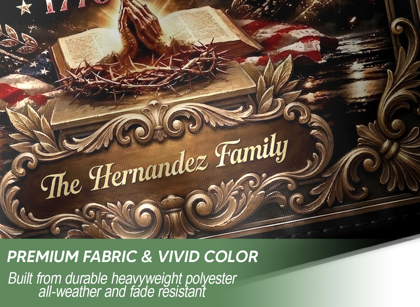 Celebrate America’s 250th anniversary from 1776 to 2026 with this custom family name garden flag. The design features a majestic eagle, Christian cross, open Bible, and the patriotic phrase ‘One Nation Under God.’ Perfect for displaying in your garden, yard, or patio to honor the nation’s spiritual heritage and historical journey. Personalize it with your family name for a unique touch. Made from durable, weather-resistant polyester fabric that withstands outdoor elements. Ideal for patriots, history enthusiasts, churches, and as a thoughtful gift for family gatherings, Independence Day, or Memorial Day. Easy to hang with a standard garden flag pole (not included). Show your pride in America’s blessings and faith-based foundations.