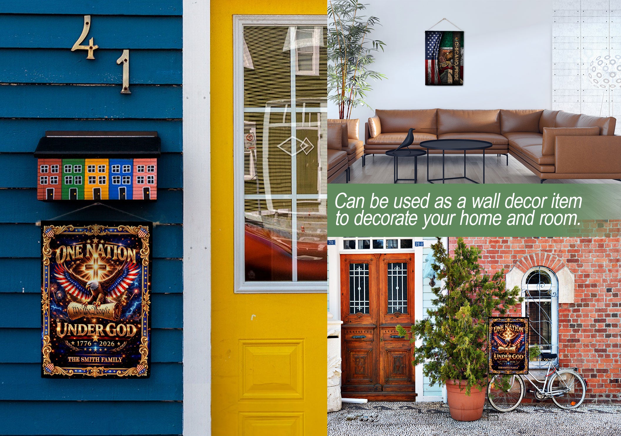 Celebrate America’s 250th anniversary from 1776 to 2026 with this custom family name garden flag. The design features a majestic eagle, sacred cross, ‘We the People’ inscription, and ‘One Nation Under God’ motto, honoring the nation’s spiritual heritage and historical journey. Crafted for outdoor display, this durable garden flag adds patriotic pride to your yard, porch, or garden bed. Personalize it with your family name for a unique touch that commemorates this milestone. Ideal for history enthusiasts, veterans, and families cherishing faith and freedom. Easy to install on garden stakes or poles, weather-resistant for long-lasting vibrancy.
