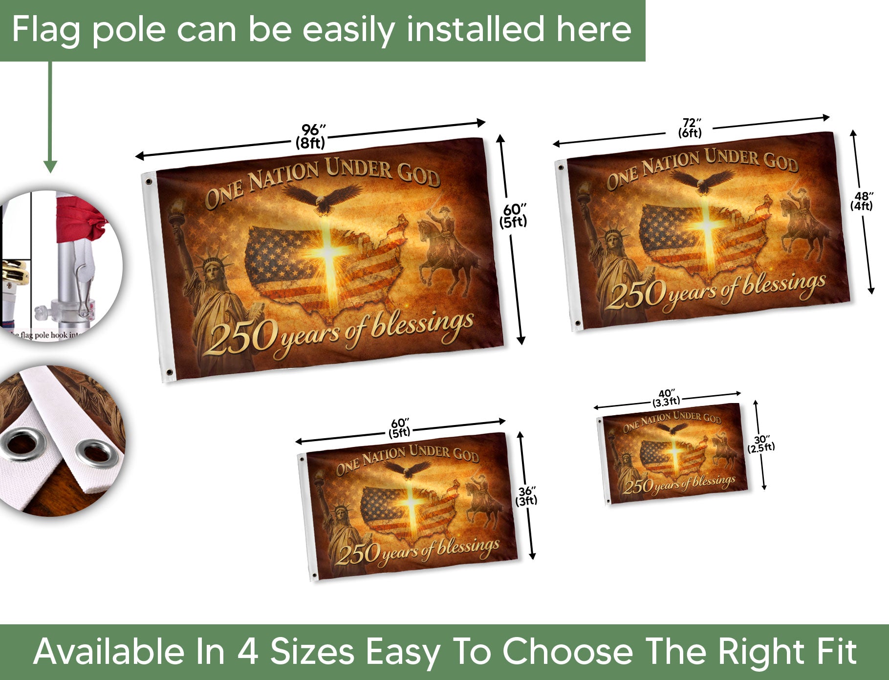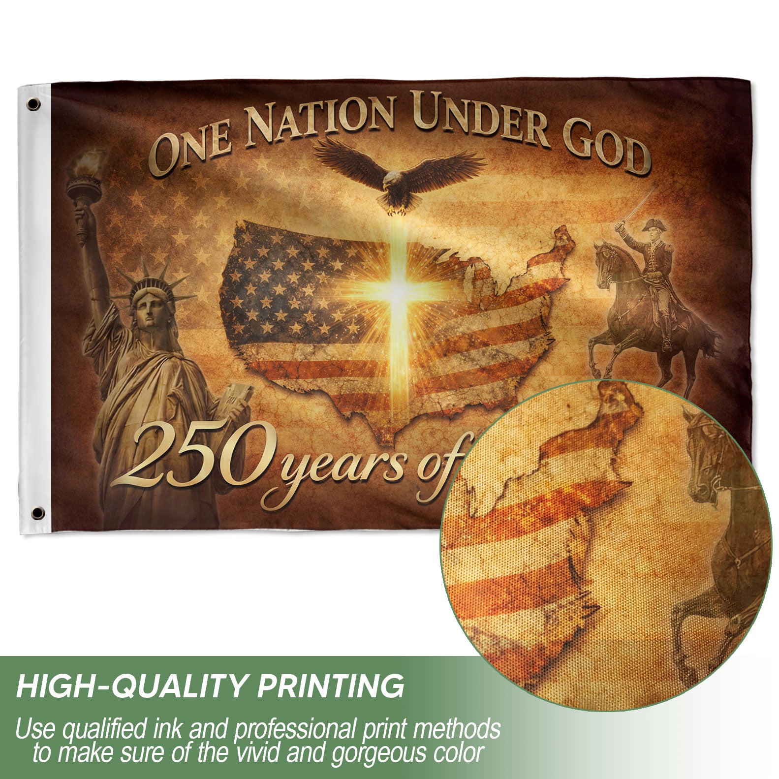 One Nation Under God 250th Anniversary American Flag with Cross 1776-2026 Patriotic Banner