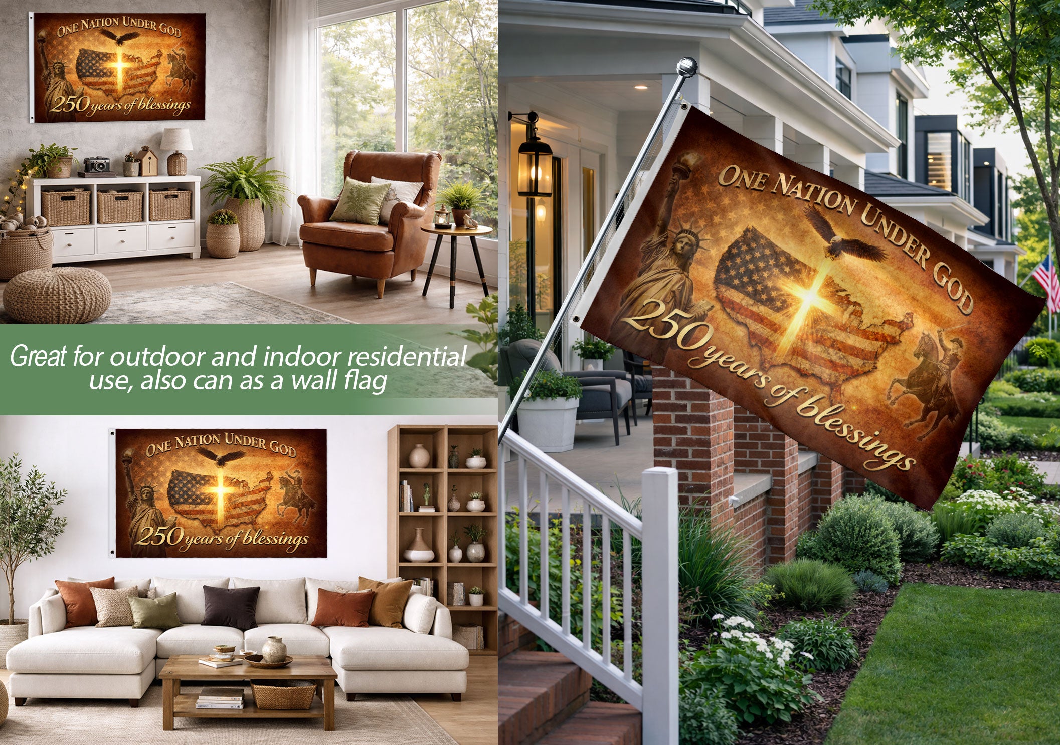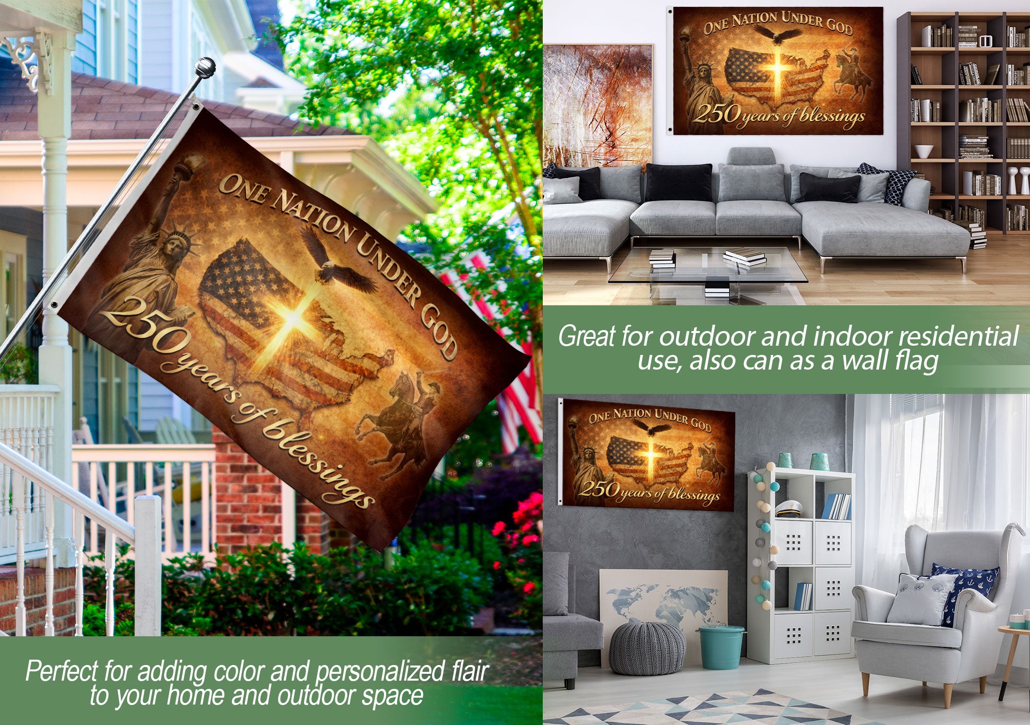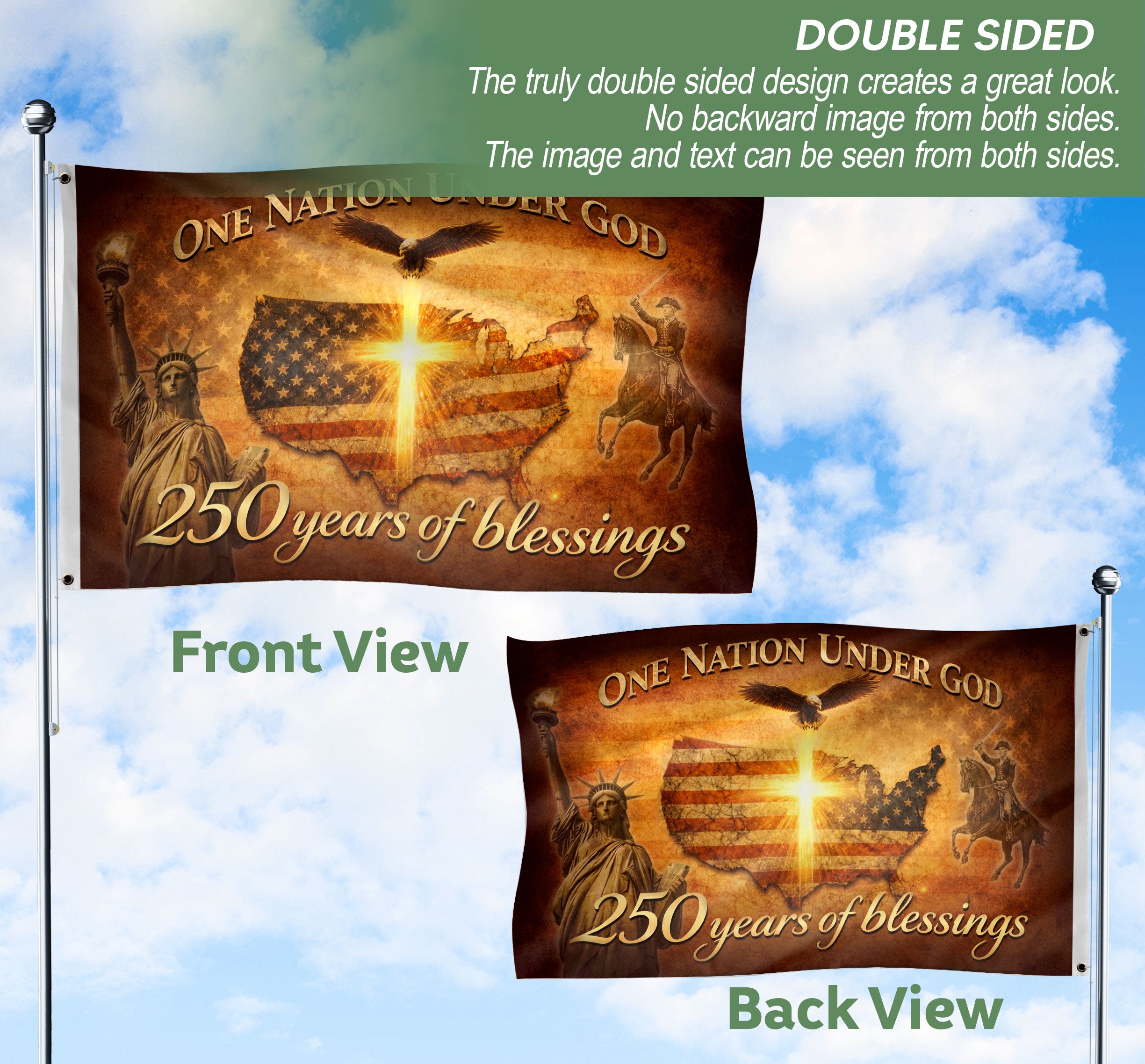 1776-2026 One Nation Under God 250th Anniversary Double Sided Christian USA House Flag