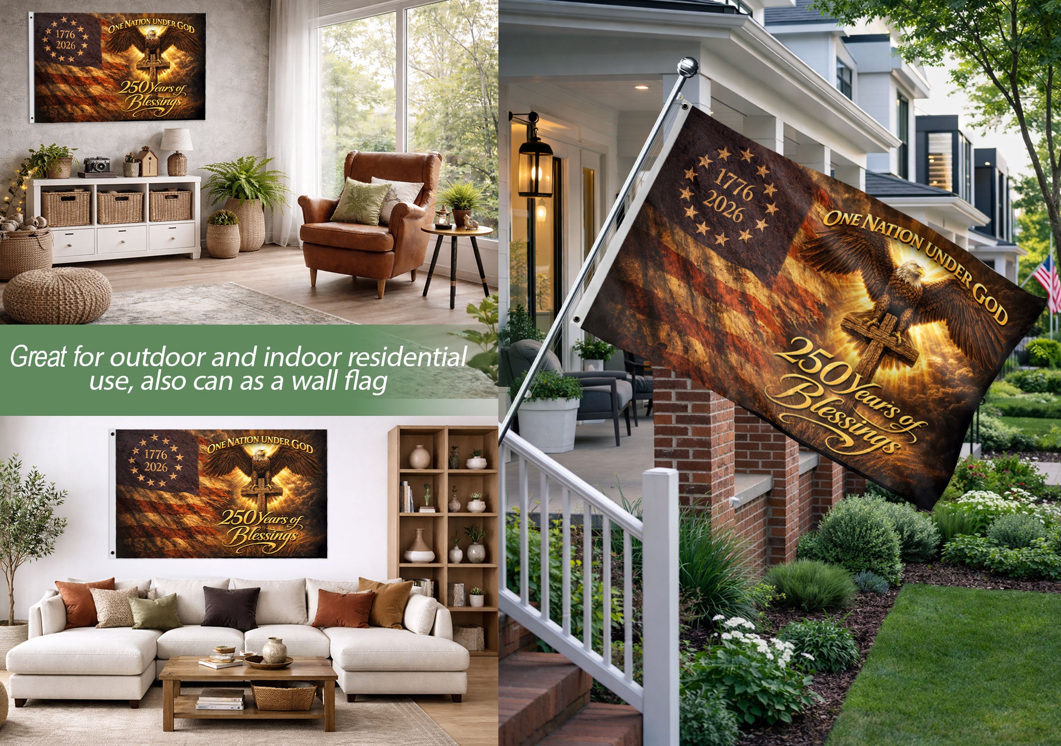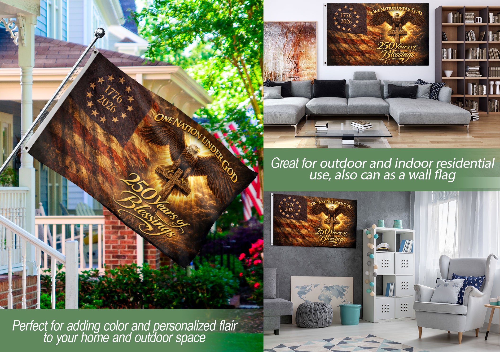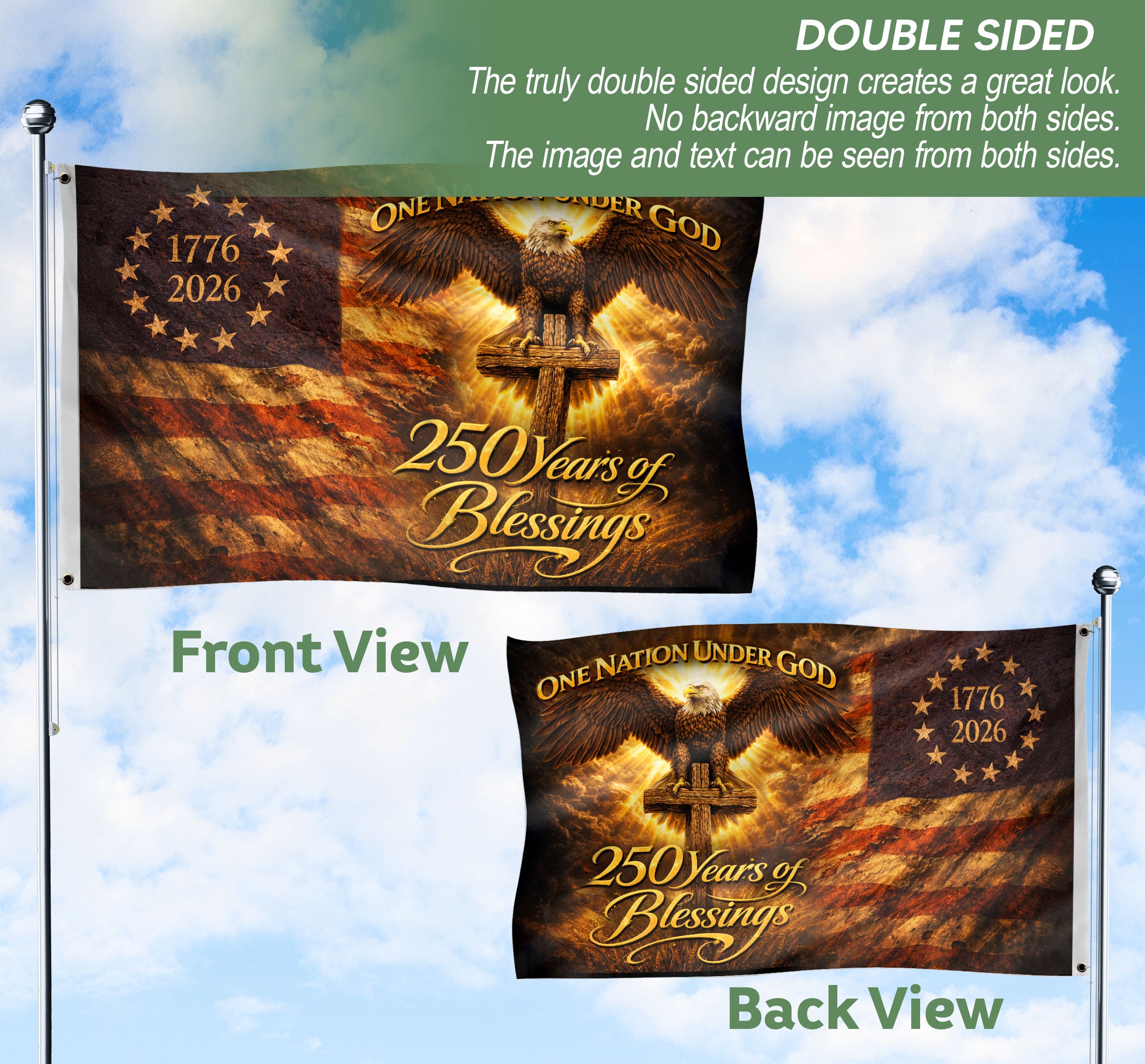 250 Years of Blessings Christian American Flag – One Nation Under God Patriot US Banner