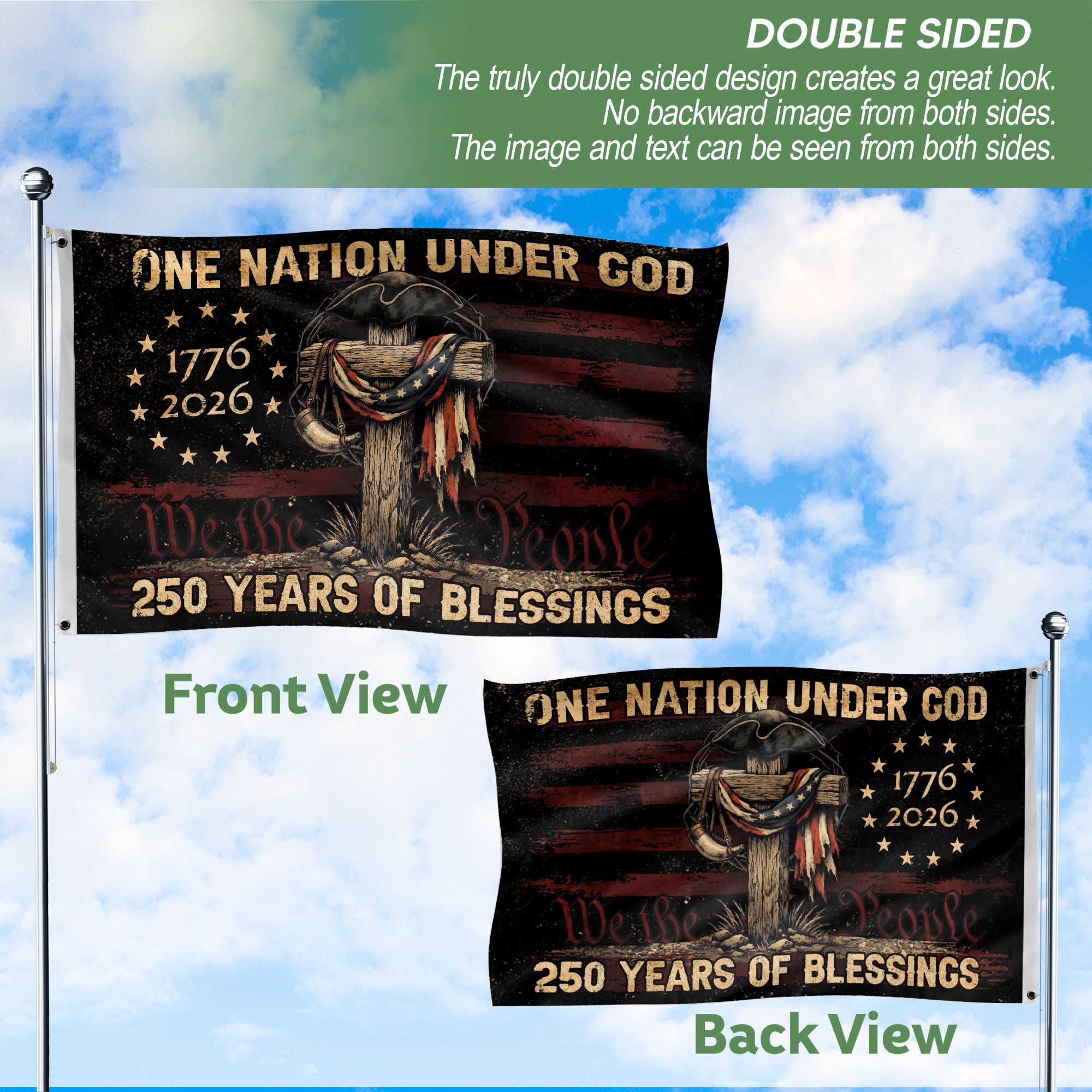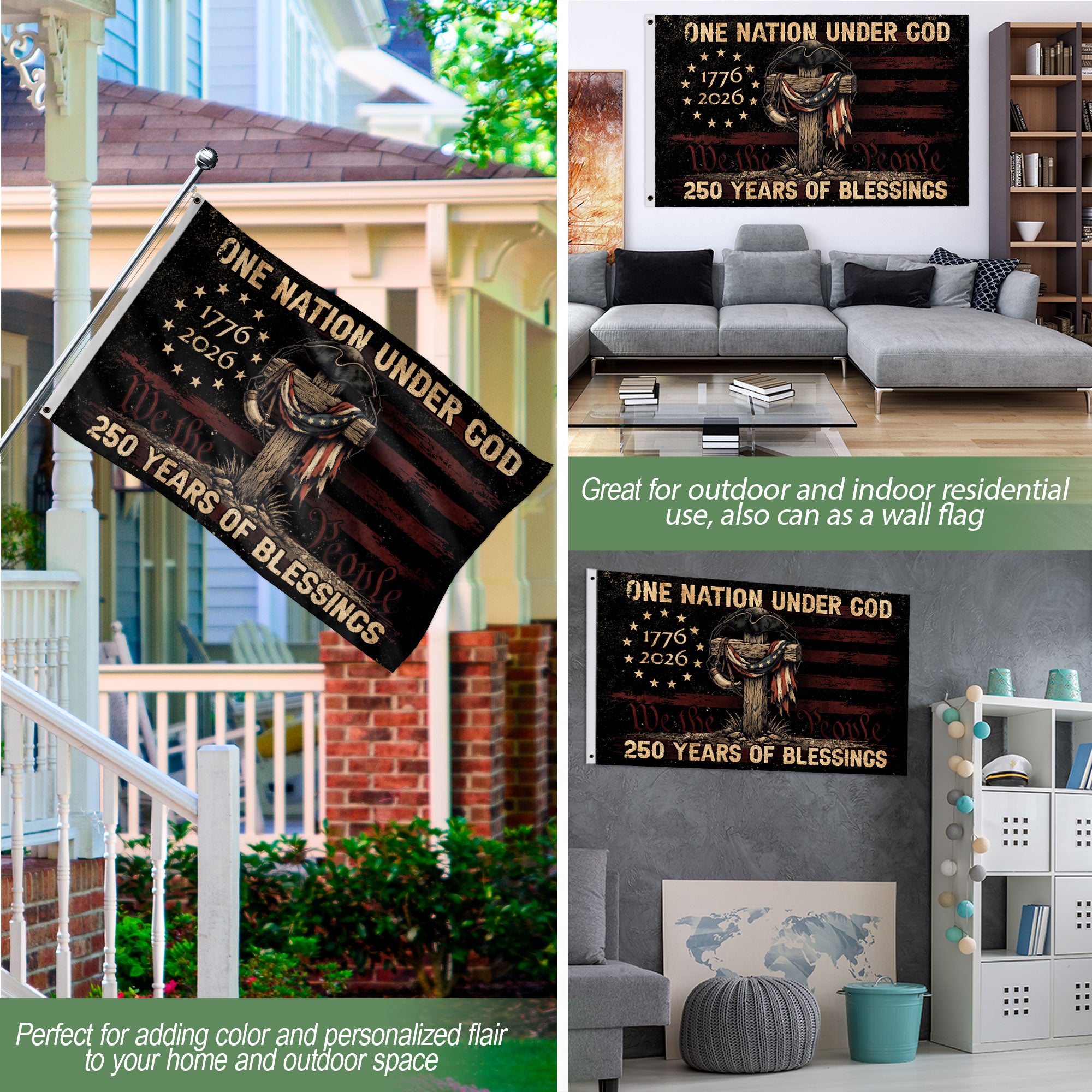 Display your faith and American pride with this Patriotic Christian USA Outdoor Flag. Crafted from durable, weather-resistant polyester fabric, it withstands wind, rain, and sun for year-round outdoor use. The vibrant design blends iconic Christian symbols like the cross with classic American flag motifs, stars, and stripes, creating a powerful statement of spiritual devotion and national heritage. Perfect for porches, flag poles, gardens, or patios, this flag measures standard size for easy visibility. Ideal for holidays such as the 4th of July, Memorial Day, Independence Day, or daily celebrations of freedom and unity. Features reinforced edges and brass grommets for secure hanging and simple maintenance – just rinse with water when needed. Whether you’re a believer honoring God and country or a patriot showcasing heritage, this flag elevates any outdoor space with timeless elegance and resilience.