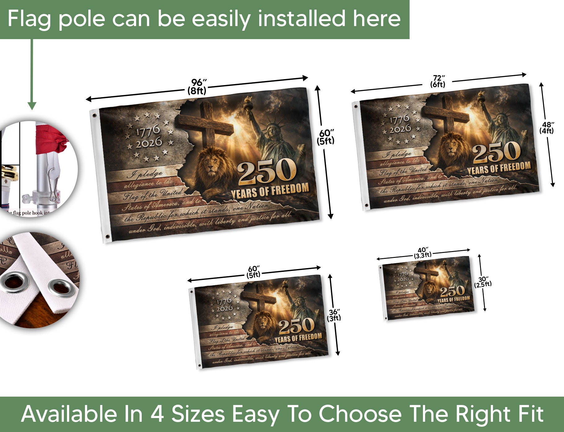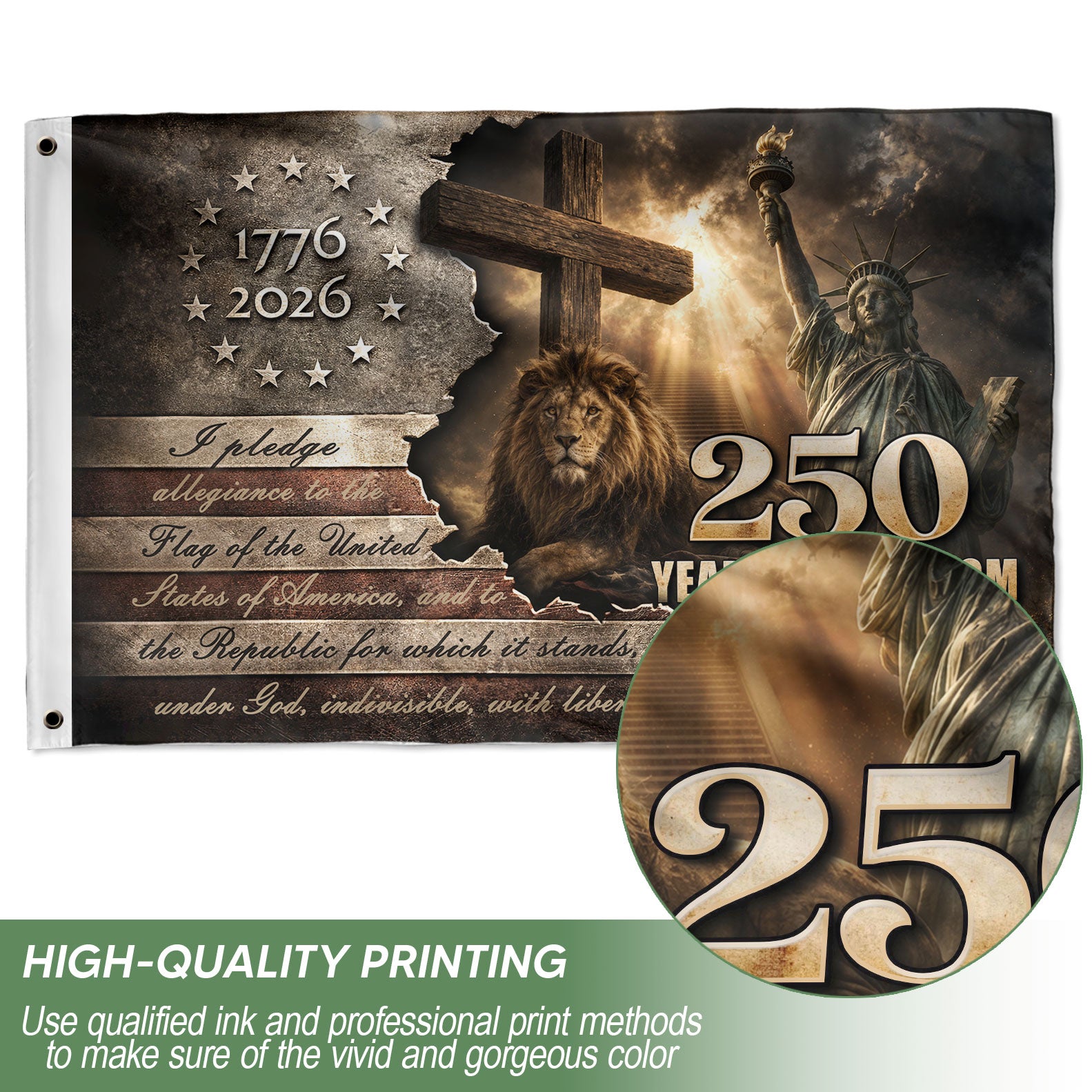 Patriotic Lion Cross House Flag 1776-2026 One Nation Under God 250 Years Freedom