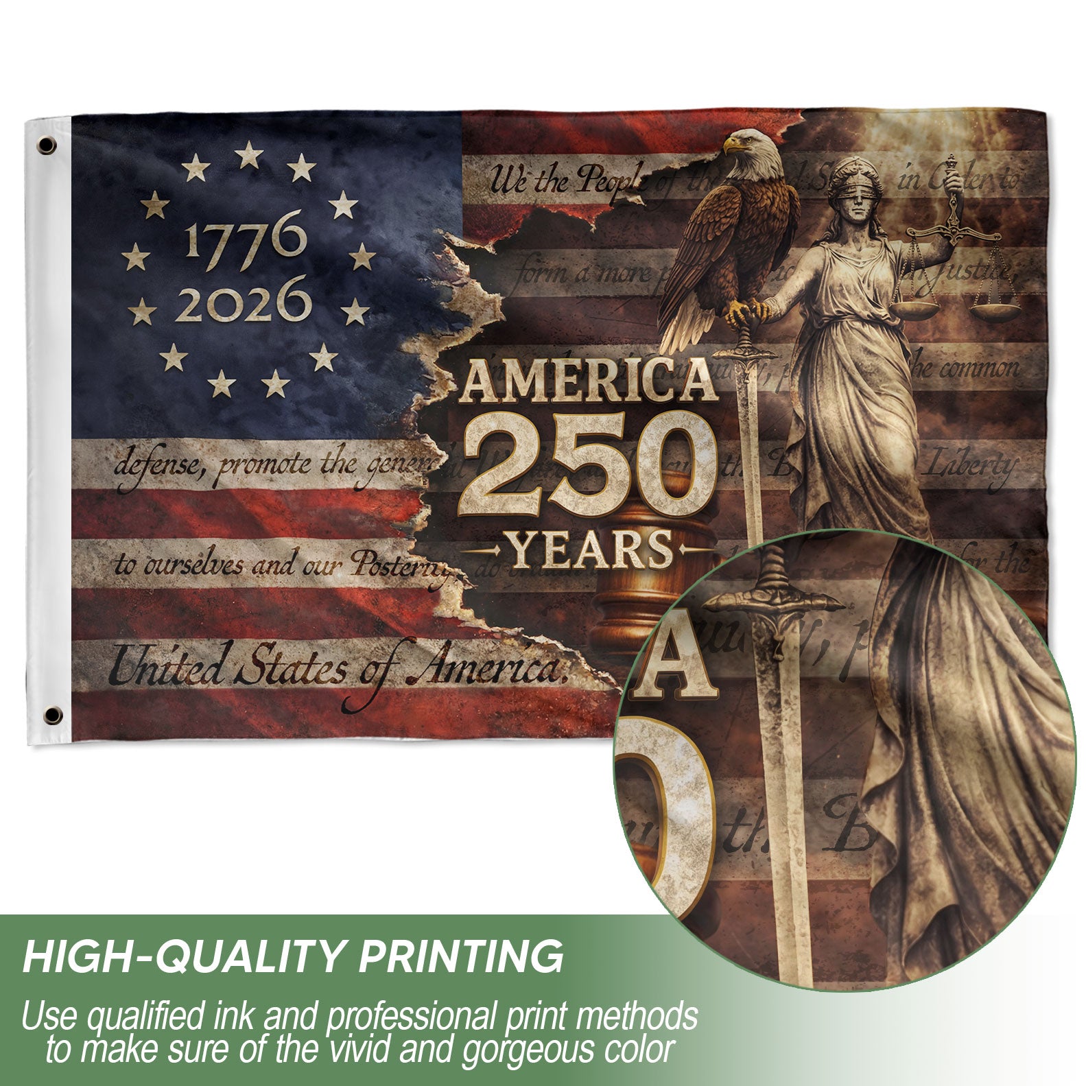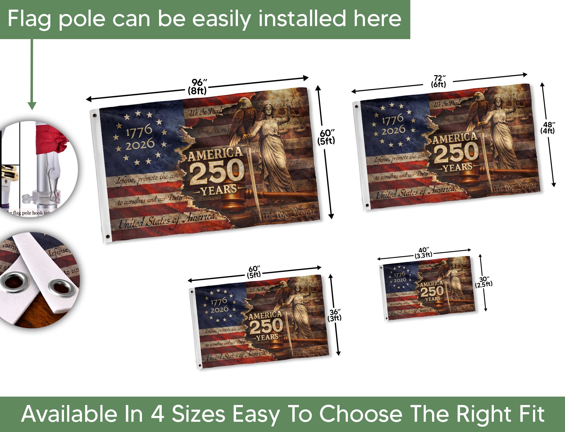 America 250th Anniversary Flag 1776-2026 Bald Eagle Lightning Bootleg Style Double-Sided House Flag
