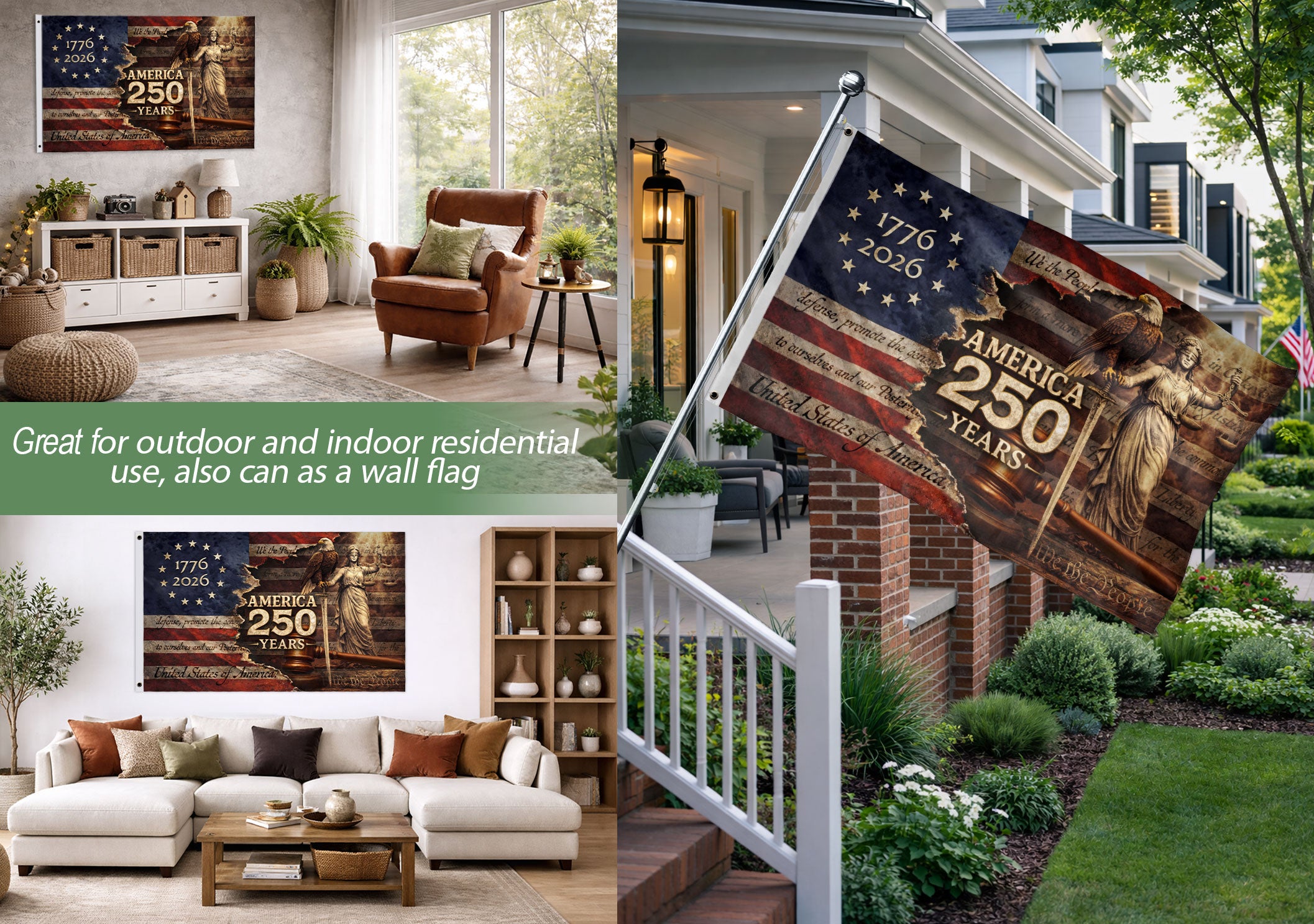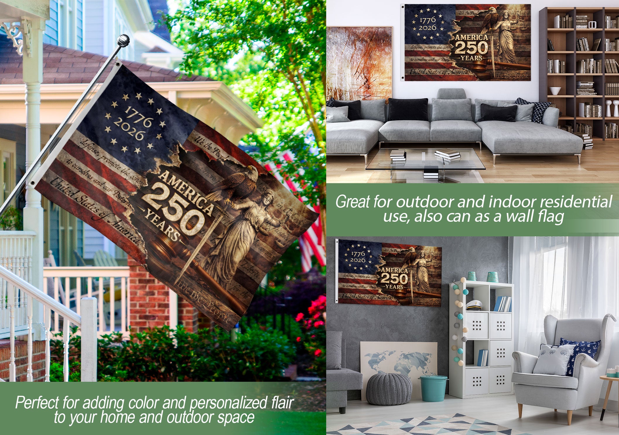 250 Years of Blessings Christian Flag 1776-2026 Eagle Liberty Bell Double Sided Patriotic House Flag