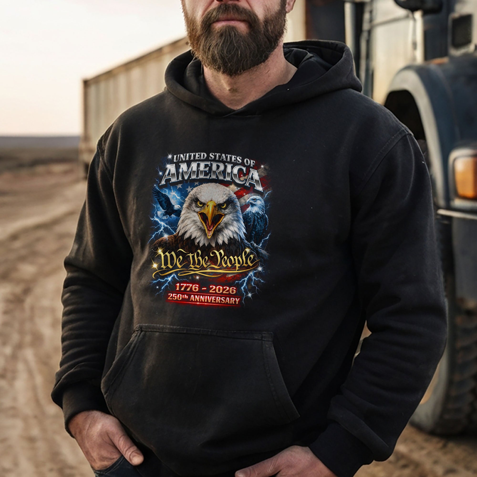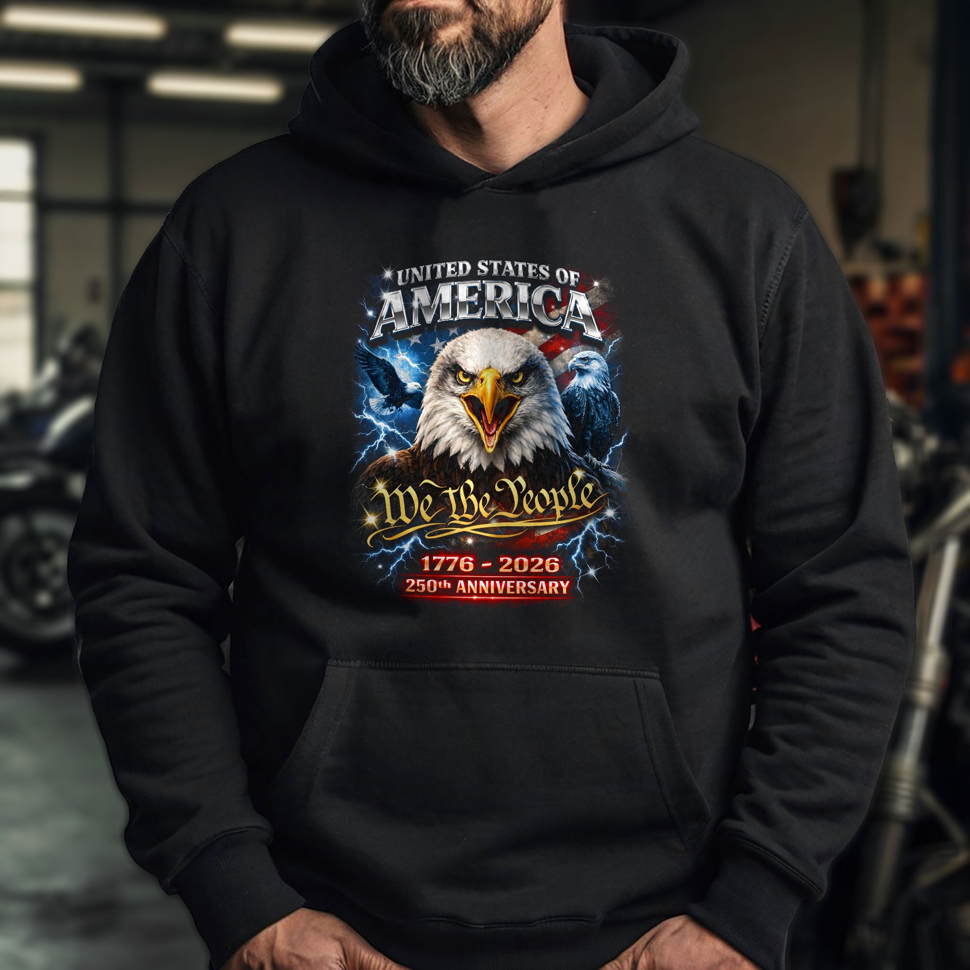 Retro 90s Bootleg United States 250th Anniversary Hoodie 1776-2026 We The People Eagle Graphic