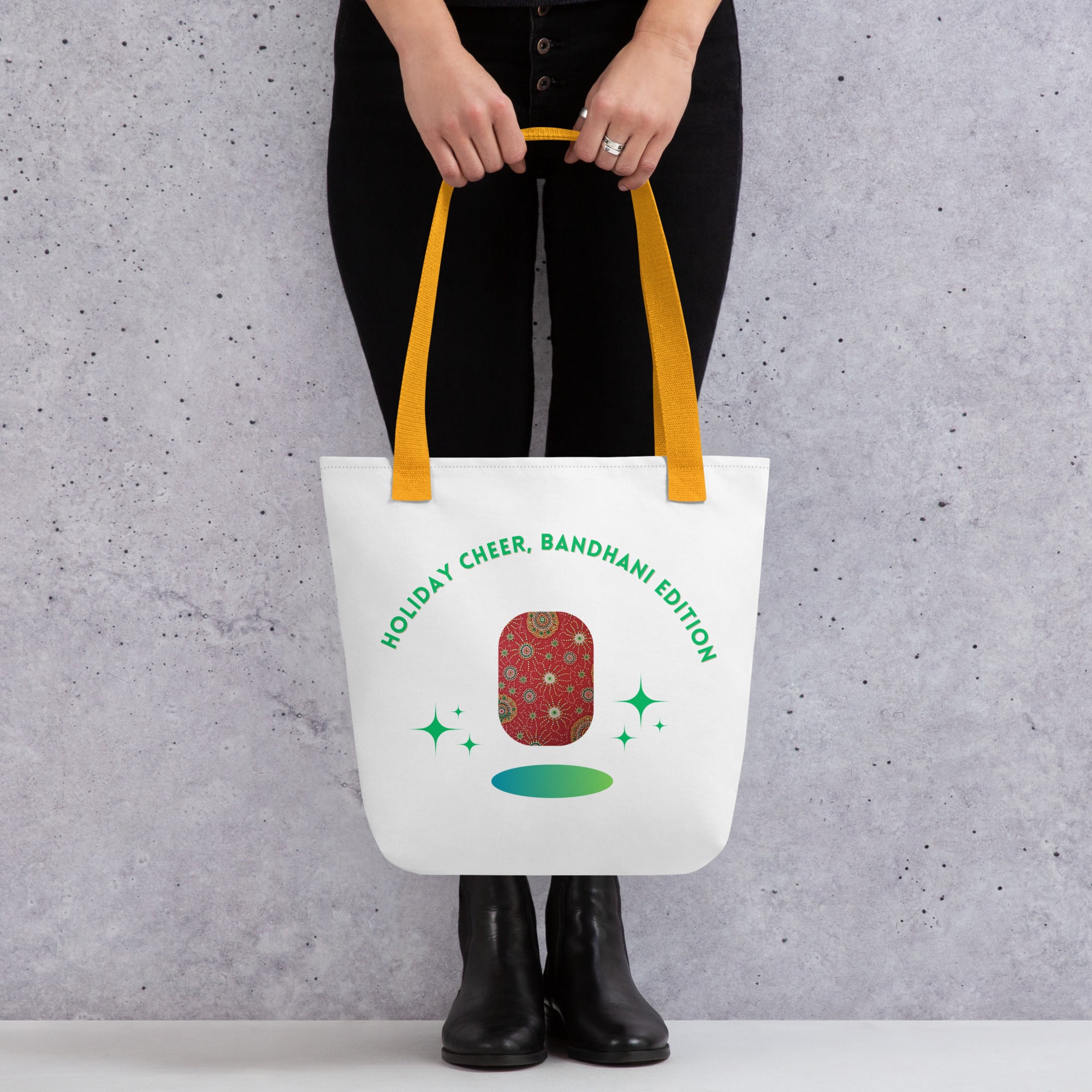 Toting your essentials has never looked (or felt) better. This roomy tote bag is the perfect eco-chic accessory for the modern minimalist. This organic cotton twill tote bag designer is lovingly printed using traditional Bandhani inspired designs, lending serious style cred to your daily carry, it’s the perfect tote bag for work, beach days, weekend travel, or marathon grocery runs. The open main compartment makes stashing items a breeze, while the wide dual straps keep this tote bag women-friendly. But looks aren’t everything-this tote bag custom is ethically made from 100% certified organic cotton twill that’s GOTS and OEKO-TEX certified. Best of all? You can double down on personal style by adding a double-sided print for a small fee. In other words, it’s one big tote bag personalized with traditional artistry and sustainable practices. So go ahead, wear this tote bag for men or women with pride knowing your purchase supports generations-old craft and eco-friendly fashion. A spacious and trendy tote bag to help you carry around everything that matters. • 100% polyester • Bag size: 15″ × 15″ (38.1 × 38.1 cm) • Capacity: 2.6 US gal (10 l) • Maximum weight limit: 44lbs (20 kg) • Dual handles made from 100% natural cotton bull denim • Handle length 11.8″ (30 cm), width 1″ (2.5 cm) • The handles can slightly differ depending on the fulfillment location This product is made especially for you as soon as you place an order, which is why it takes us a bit longer to deliver it to you. Making products on demand instead of in bulk helps reduce overproduction, so thank you for making thoughtful purchasing decisions!