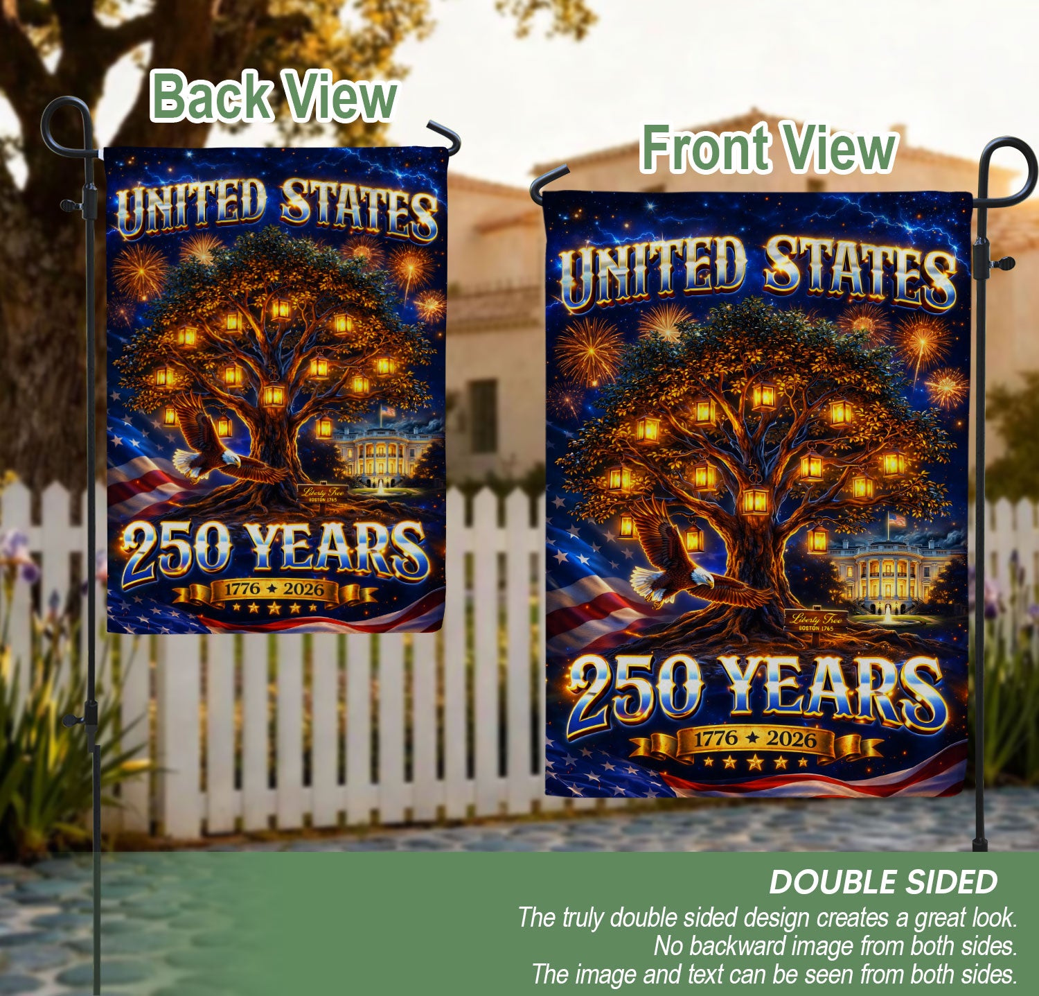 United States 250 Years Garden Flag Freedom Tree Patriotic 1776 2026 Outdoor Banner