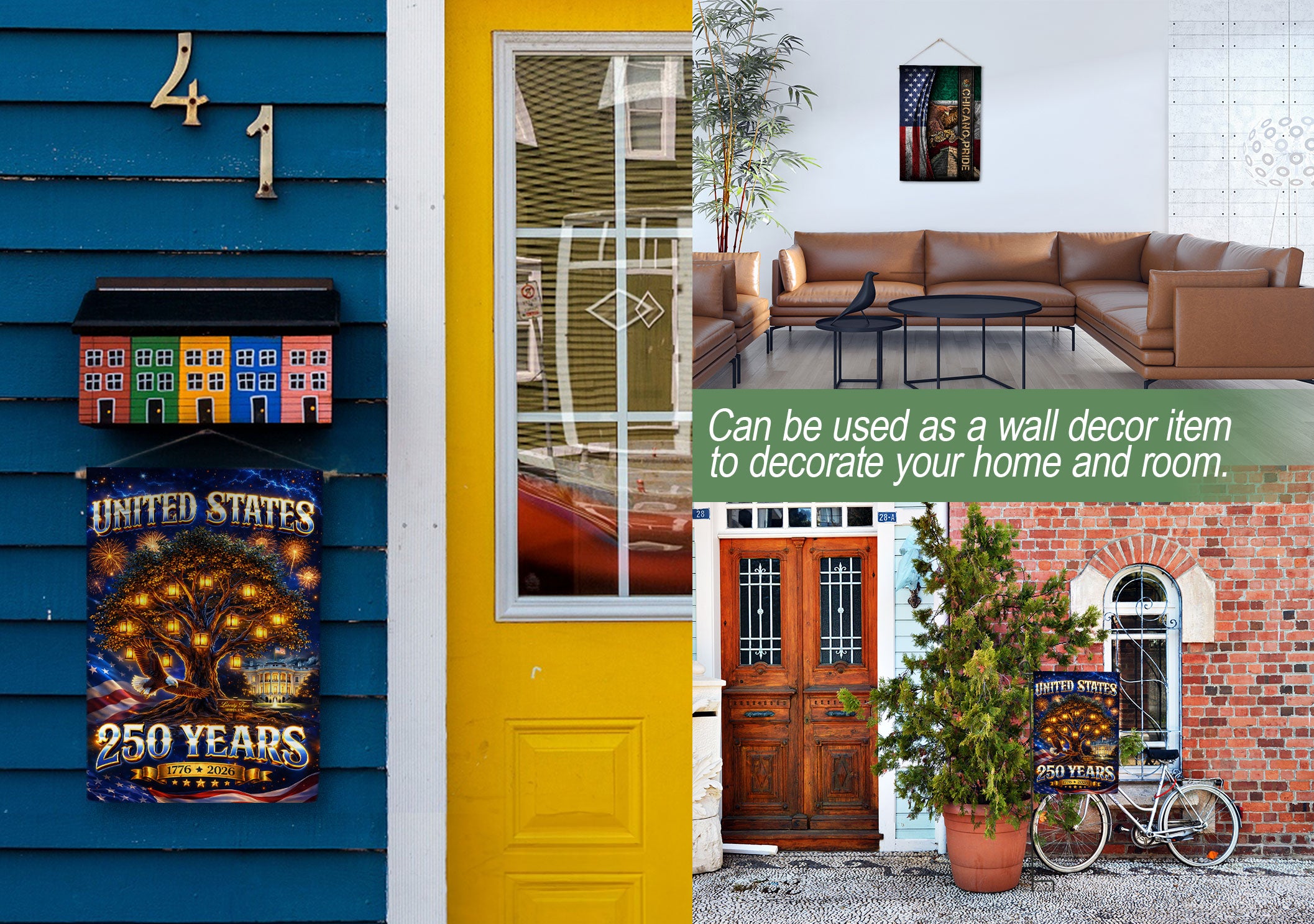 Celebrate 250 years of American independence with this United States garden flag featuring a glowing freedom tree, soaring eagle, and patriotic scenery. Crafted for durability, this vibrant outdoor banner symbolizes unity, heritage, and national pride from 1776 to 2026. Perfect for gardens, yards, porches, or patios, it withstands weather while adding a warm, meaningful touch year-round. Double-sided printing ensures visibility from all angles, making it ideal for patriotic holidays like the 4th of July, Memorial Day, or the upcoming semiquincentennial. Easy to hang with a standard garden flag pole (not included). Measures approximately 12×18 inches for optimal display.