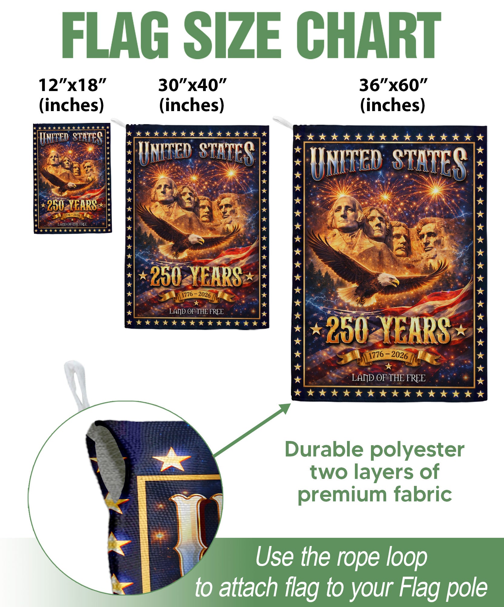 United States 250 Years House Flag Mount Rushmore Eagle 1776-2026 Patriotic Banner