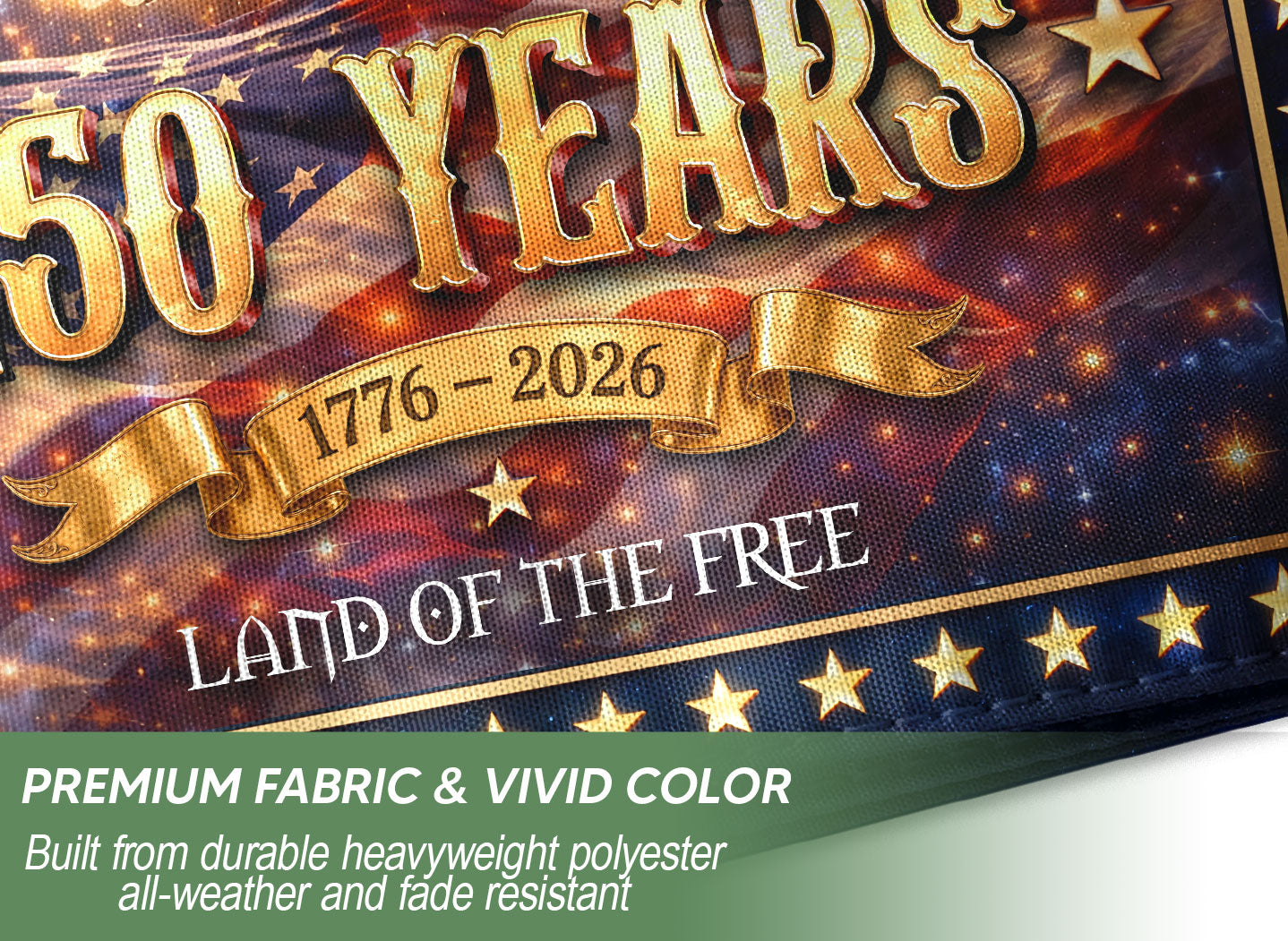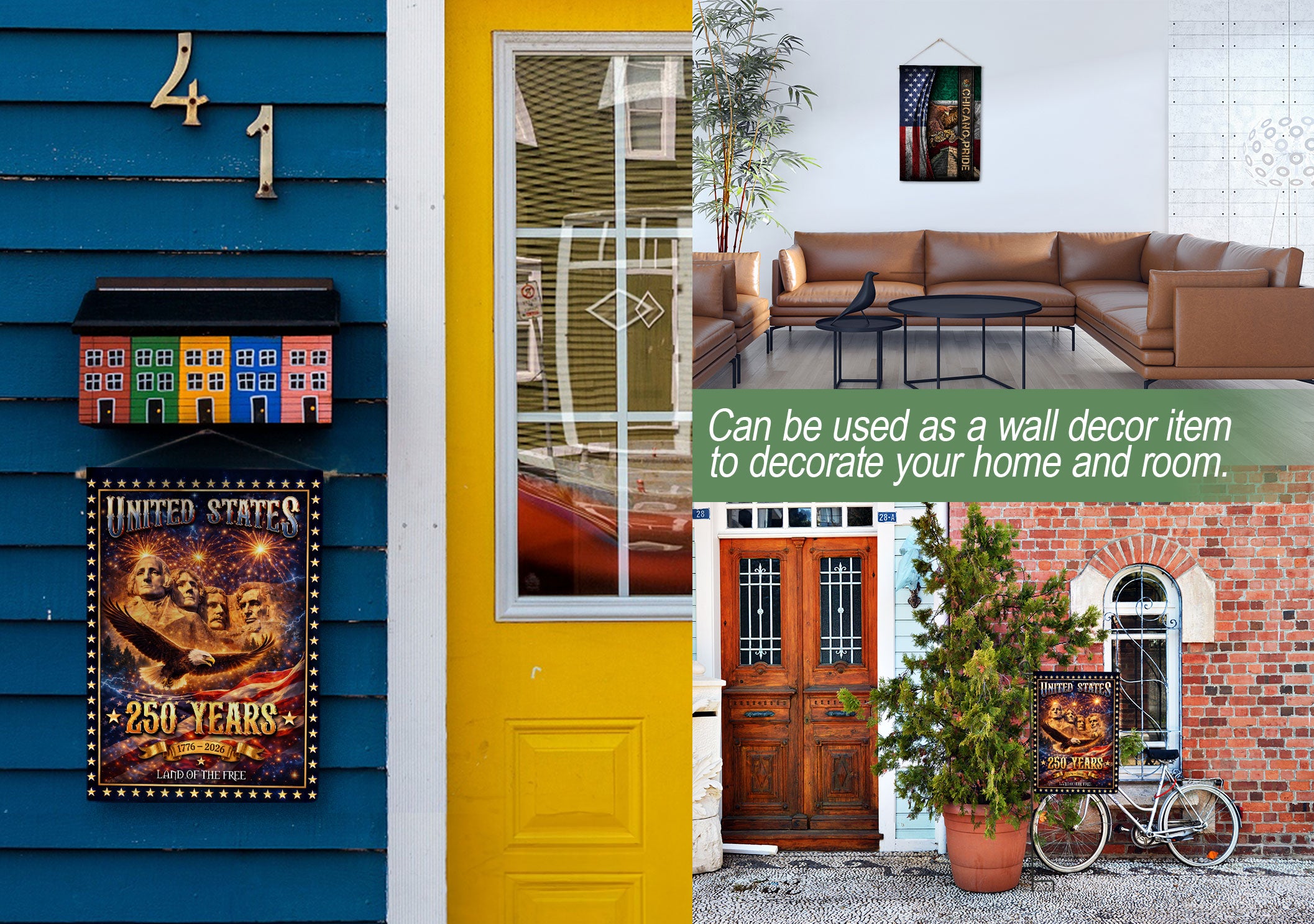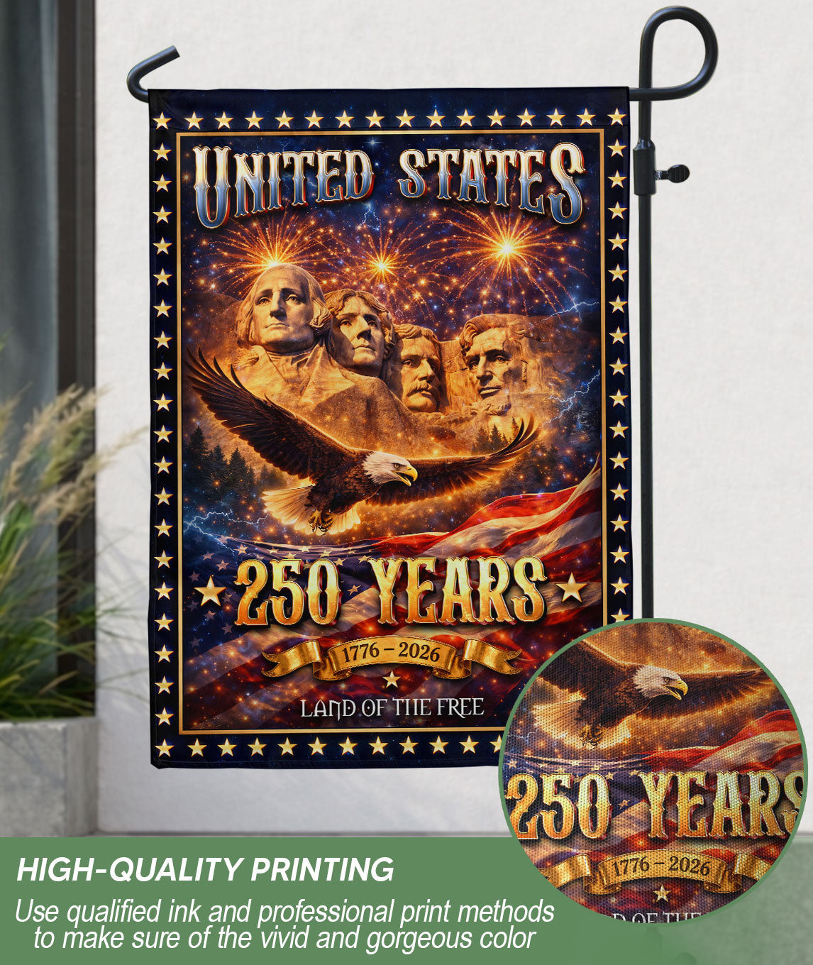 Celebrate 250 years of American independence with this striking United States house flag. Featuring the iconic Mount Rushmore presidents, a majestic soaring eagle, and bold patriotic elements from 1776 to 2026, this banner embodies national pride, strength, and unity. Crafted for durable outdoor display, it’s perfect for porches, patios, or gardens. The vibrant design adds a powerful, meaningful accent to your home decor, honoring U.S. history and freedom. Easy to hang and weather-resistant, ideal for patriots showcasing their love for America during holidays, anniversaries, or everyday.
