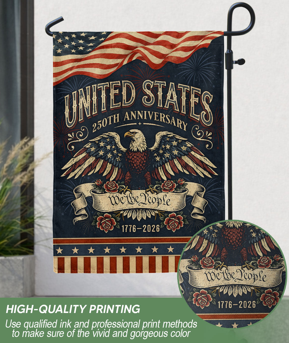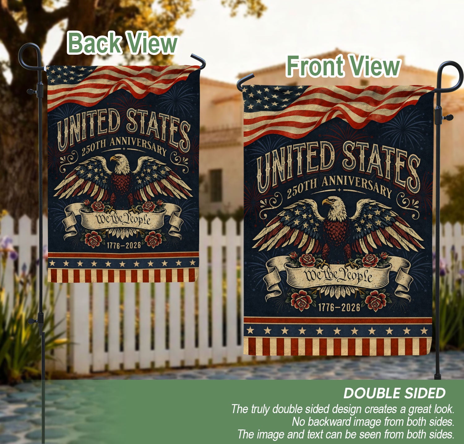 United States 250th Anniversary 1776-2026 House Flag We The People Bald Eagle Vintage Double Sided