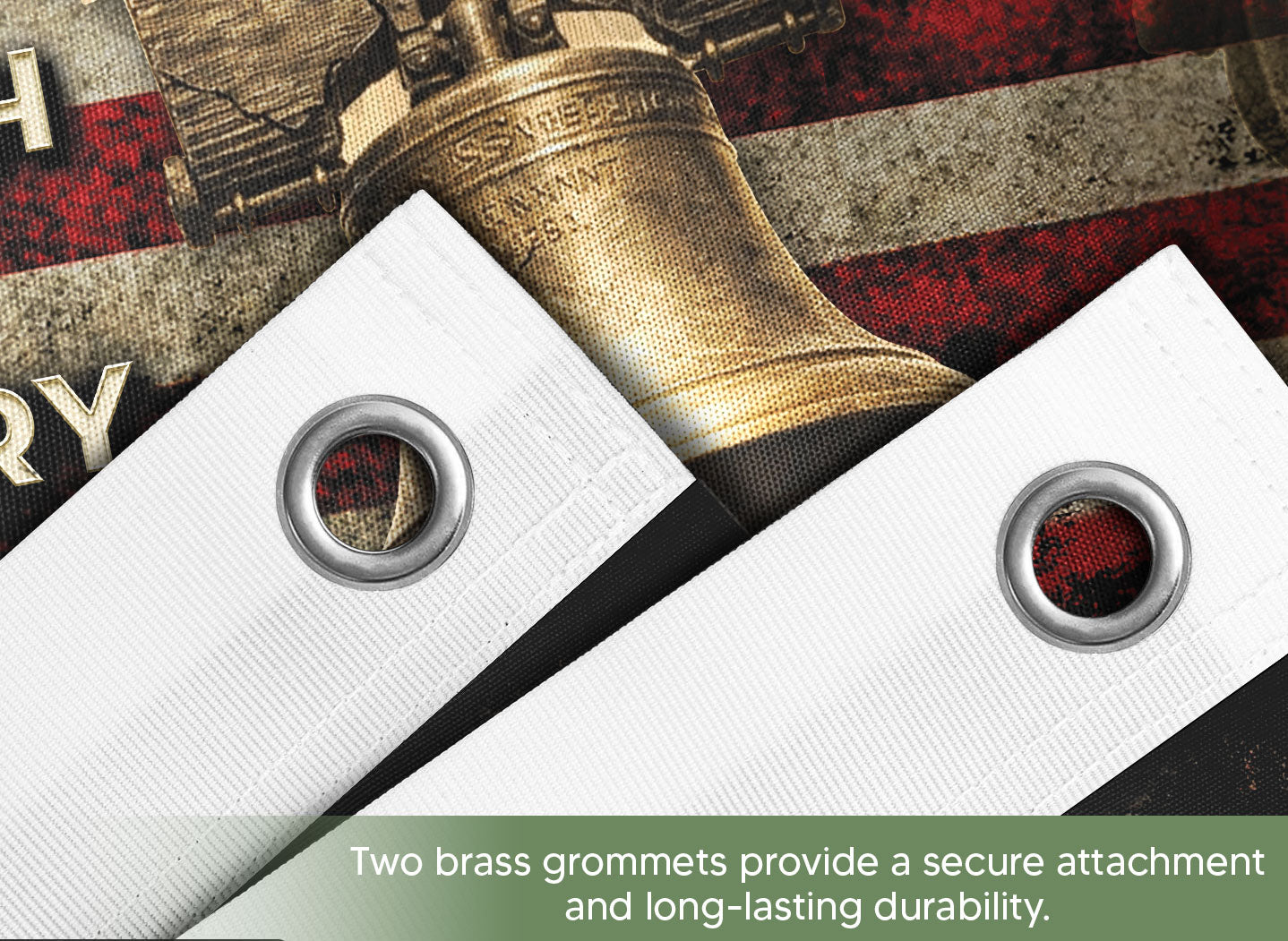 Celebrate America’s 250th anniversary with this striking United States flag featuring a powerful eagle perched above the iconic Liberty Bell, framed by the historic years 1776–2026. This patriotic décor embodies the strength of freedom, legacy of independence, resilience, and unity. Designed in a bold, vintage-inspired style, it serves as a meaningful tribute to the enduring spirit of the nation. Perfect for displaying at home, offices, events, or outdoor spaces to honor American pride and history. Crafted for lasting durability, this commemorative flag captures the essence of patriotism and is ideal for collectors, history enthusiasts, and anyone cherishing the nation’s milestones.