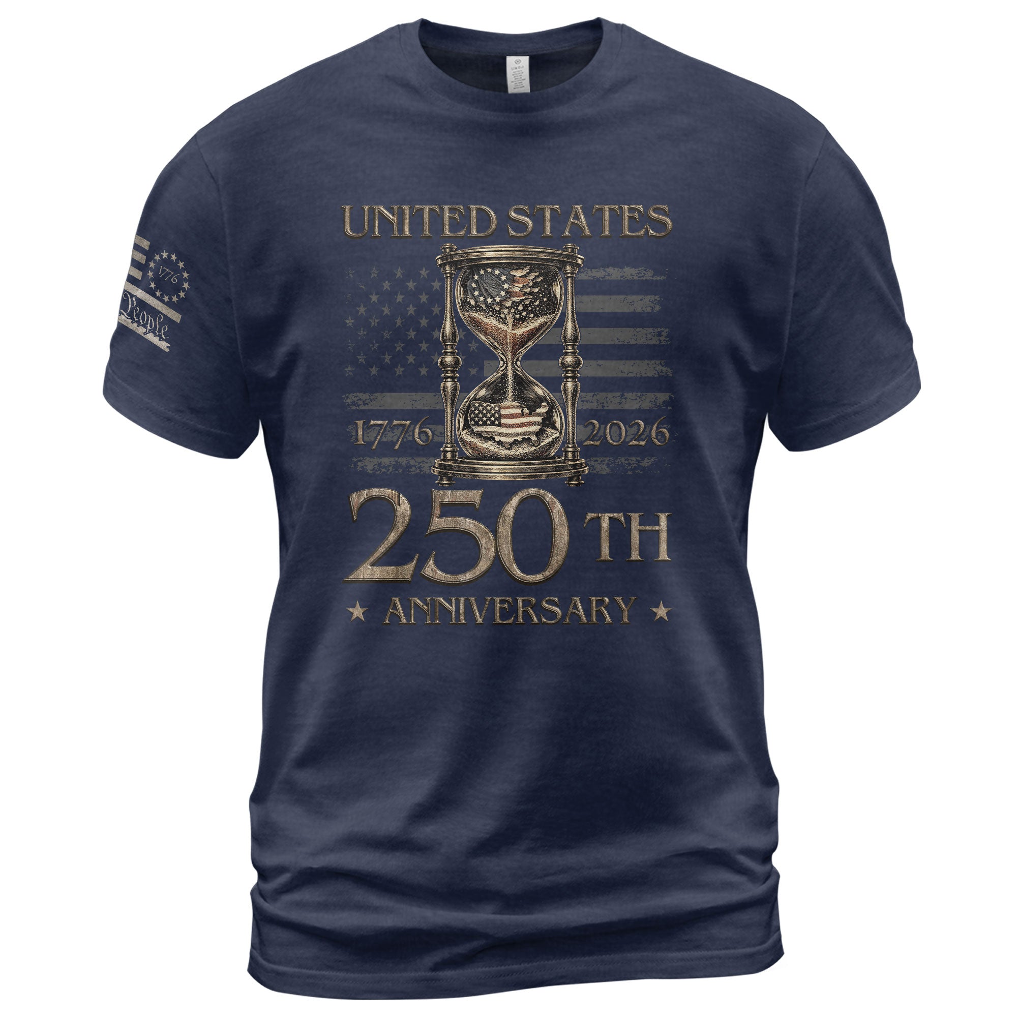 United States 250th Anniversary T-Shirt with Hourglass Design Past Present Freedom