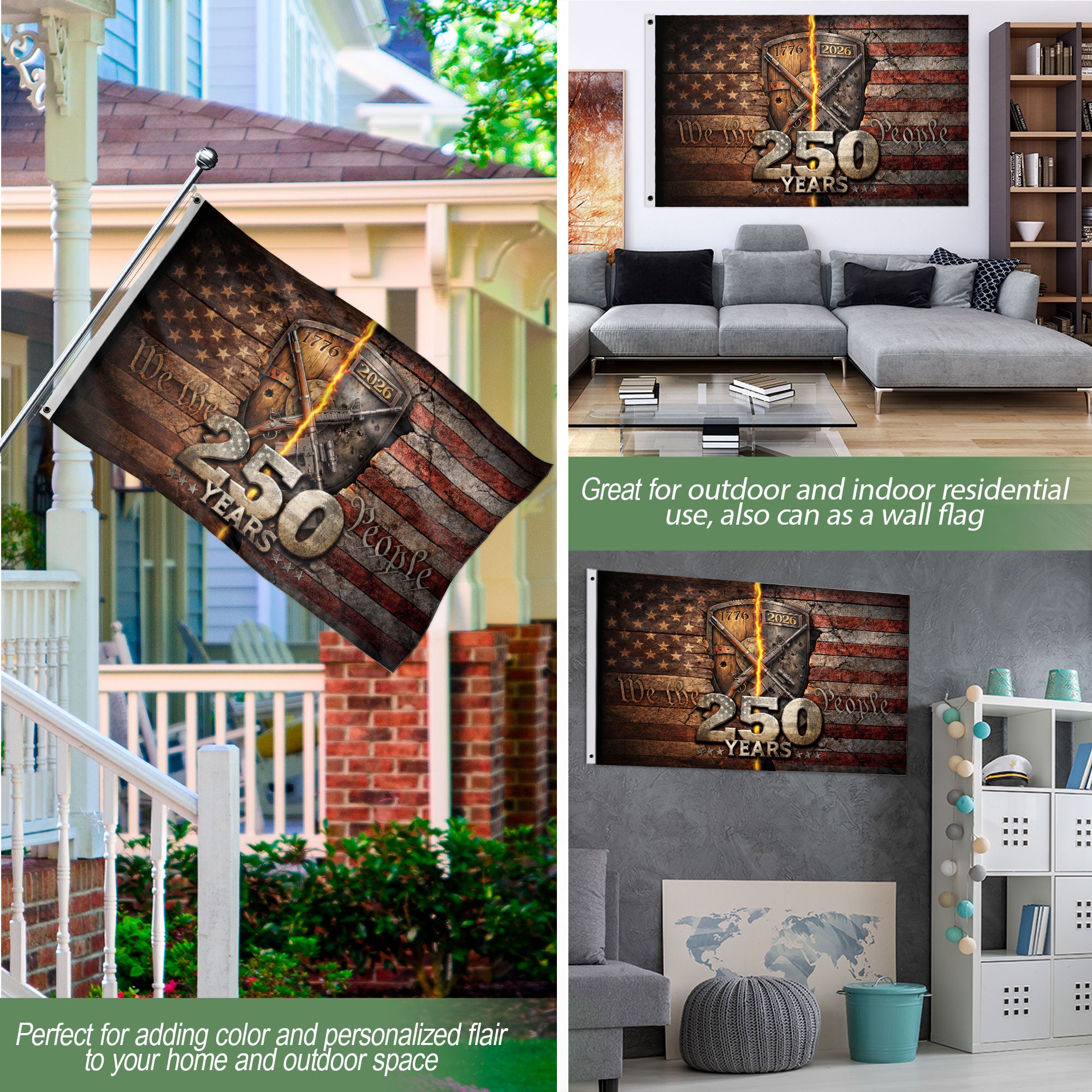 Celebrate 250 years of American independence with this modern patriotic garden flag commemorating 1776-2026. This semiquincentennial flag features a bold contemporary design blending historical significance with striking modern aesthetics. Perfect for garden displays, porches, patriotic events, or everyday outdoor spaces, it adds vibrant national pride. Crafted for durability to withstand weather elements like wind, rain, and sun, ensuring long-lasting display. Ideal for Independence Day celebrations, historical commemorations, Memorial Day, or showing American spirit year-round. Easy to hang with a sturdy pole sleeve, this USA flag brings timeless patriotism to your home or yard.