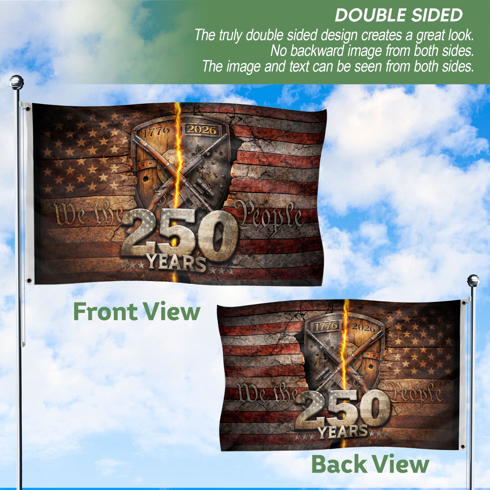 America 250th Anniversary Flag 1776-2026 Bald Eagle Lightning Bootleg Style Double-Sided House Flag