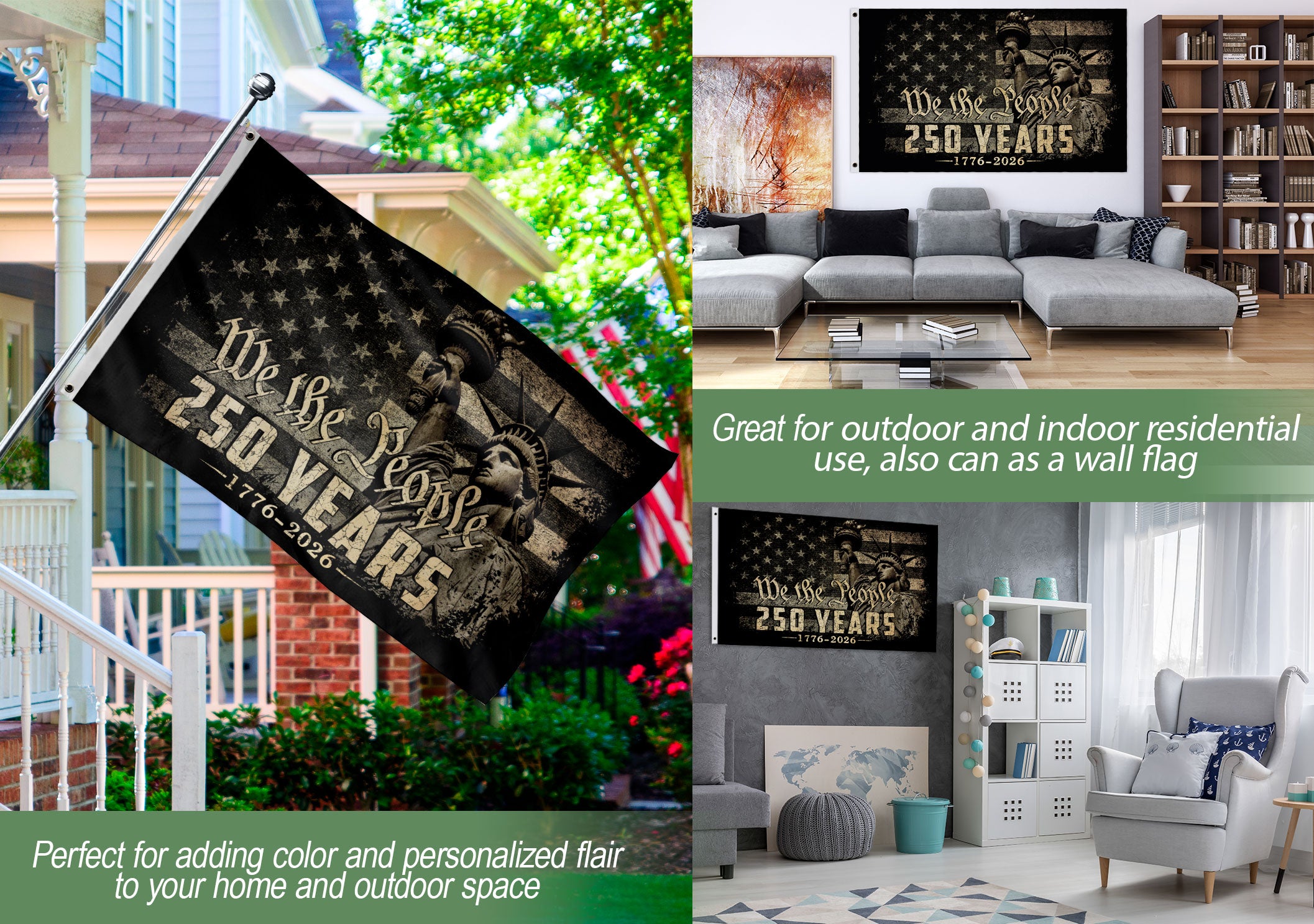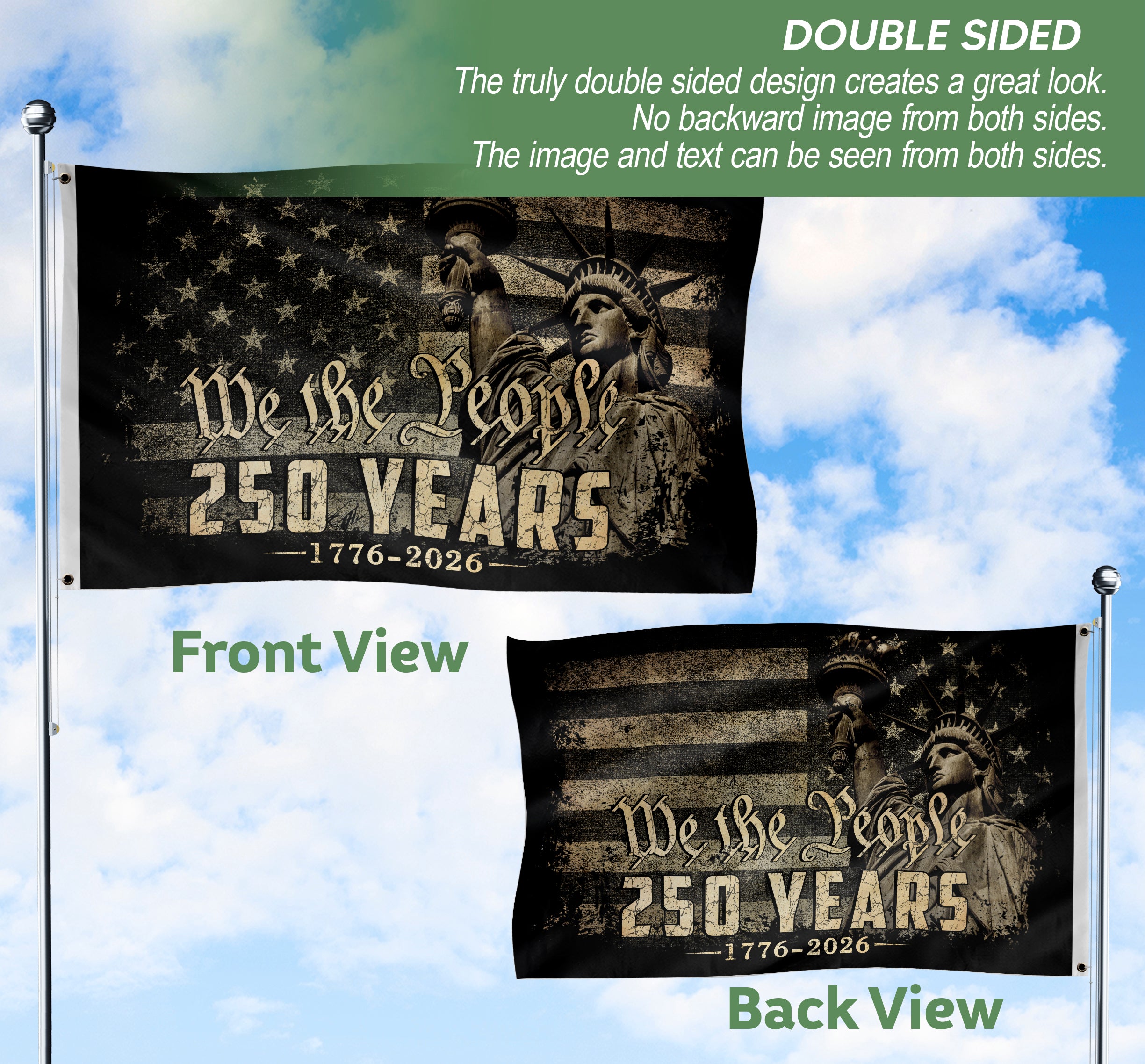 Celebrate America’s 250-year journey from 1776 to 2026 with this patriotic US Freedom Flag garden flag. The design prominently features the iconic Statue of Liberty and ‘We The People’ text, symbolizing freedom, unity, and national pride. Ideal for outdoor garden decor, patios, yards, or porches, this durable flag is built to withstand various weather conditions for year-round display. Made from high-quality polyester fabric, it offers vibrant colors, fade resistance, and long-lasting performance. Standard garden flag size ensures easy setup on flag stands or poles. Perfect for Independence Day, Memorial Day, Fourth of July celebrations, or everyday expression of American spirit. Simple to hang and remove, it adds timeless patriotism to any outdoor space.