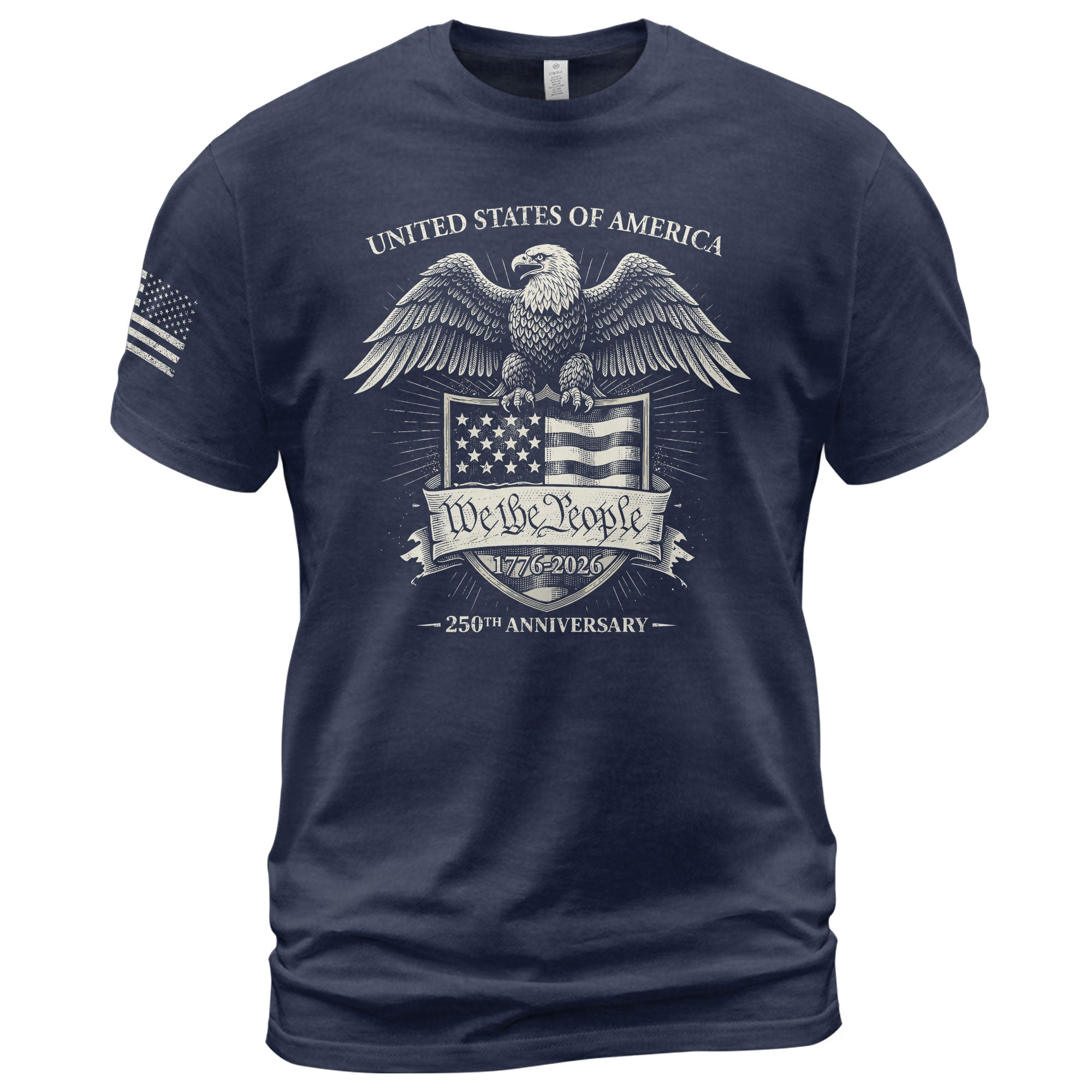 USA 250 Years Freedom T-Shirt 1776-2026 We The People American Eagle Shield Patriotic