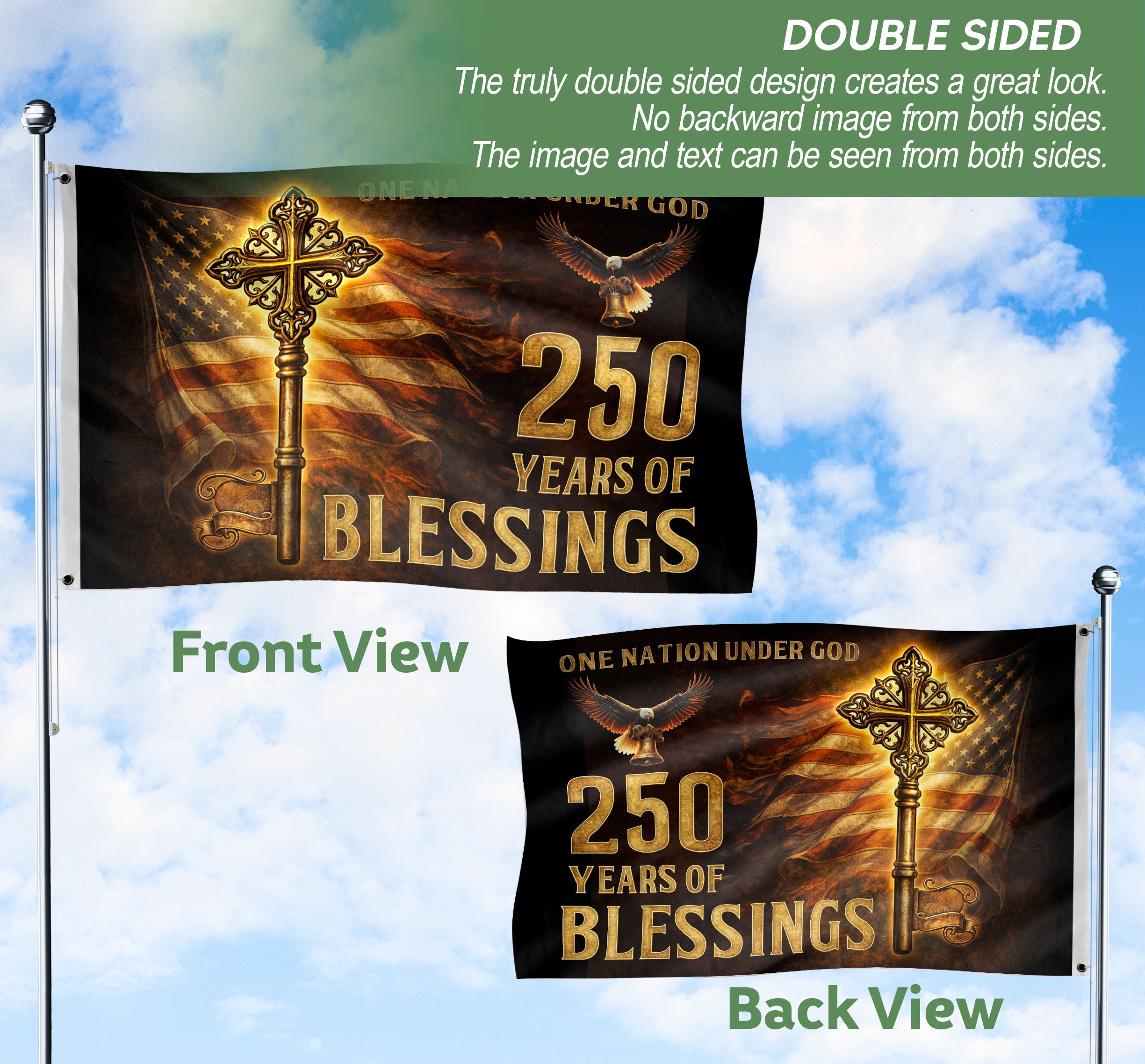 USA 250 Years of Faith Cross Flag – One Nation Under God Christian Patriotic Outdoor Flag 1776-2026