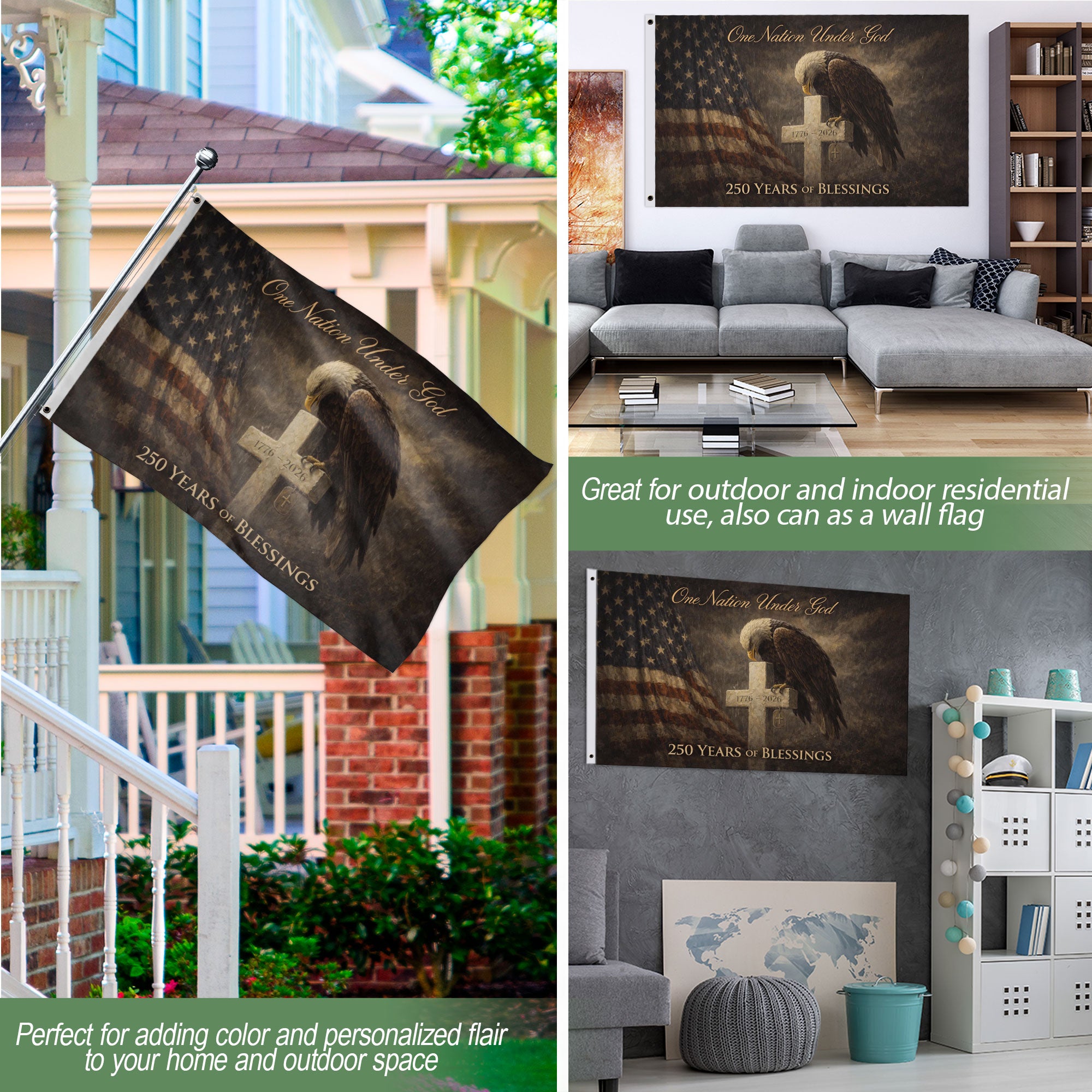 USA 250th Anniversary 1776-2026 Double Sided Flag Bald Eagle Cross Patriotic Christian Decor