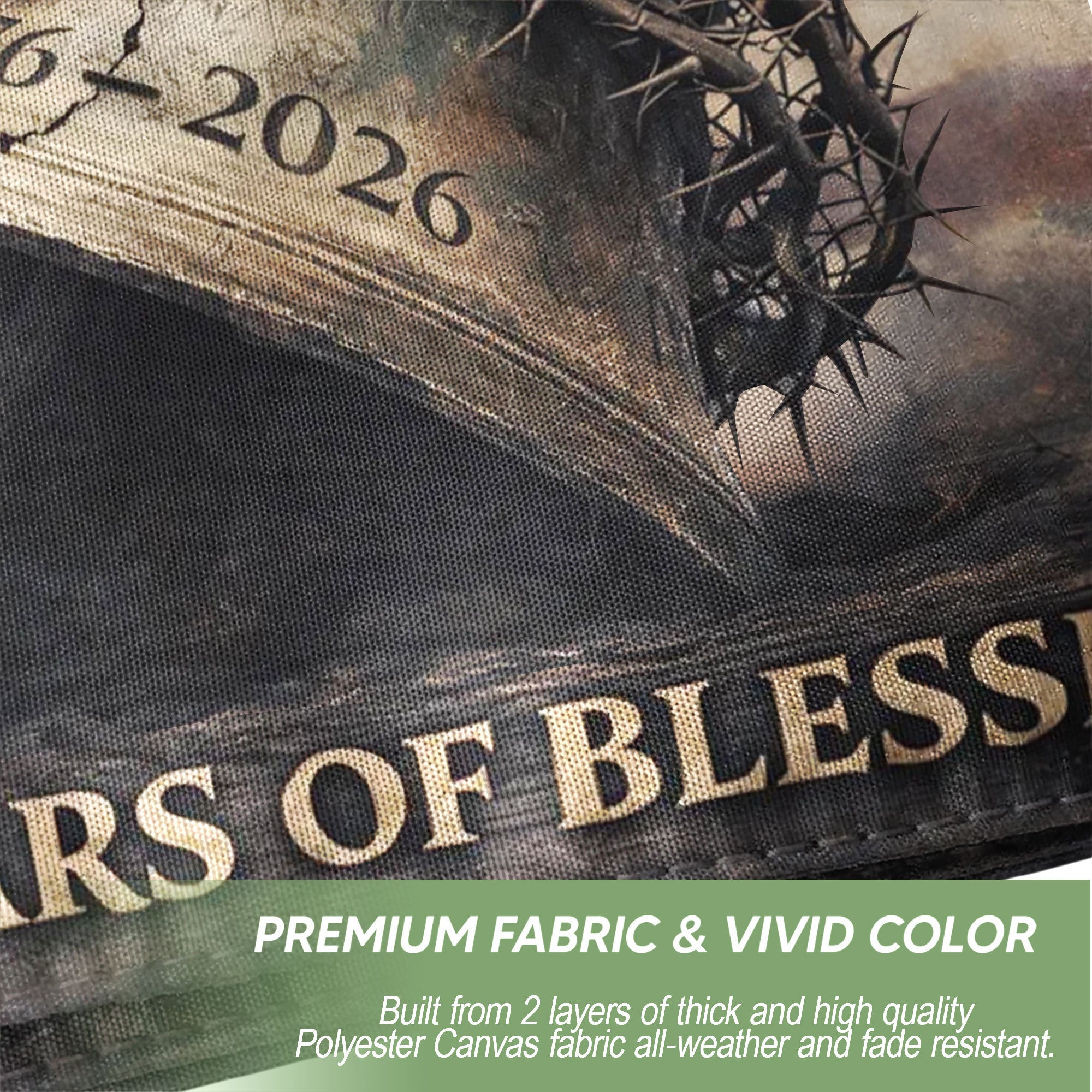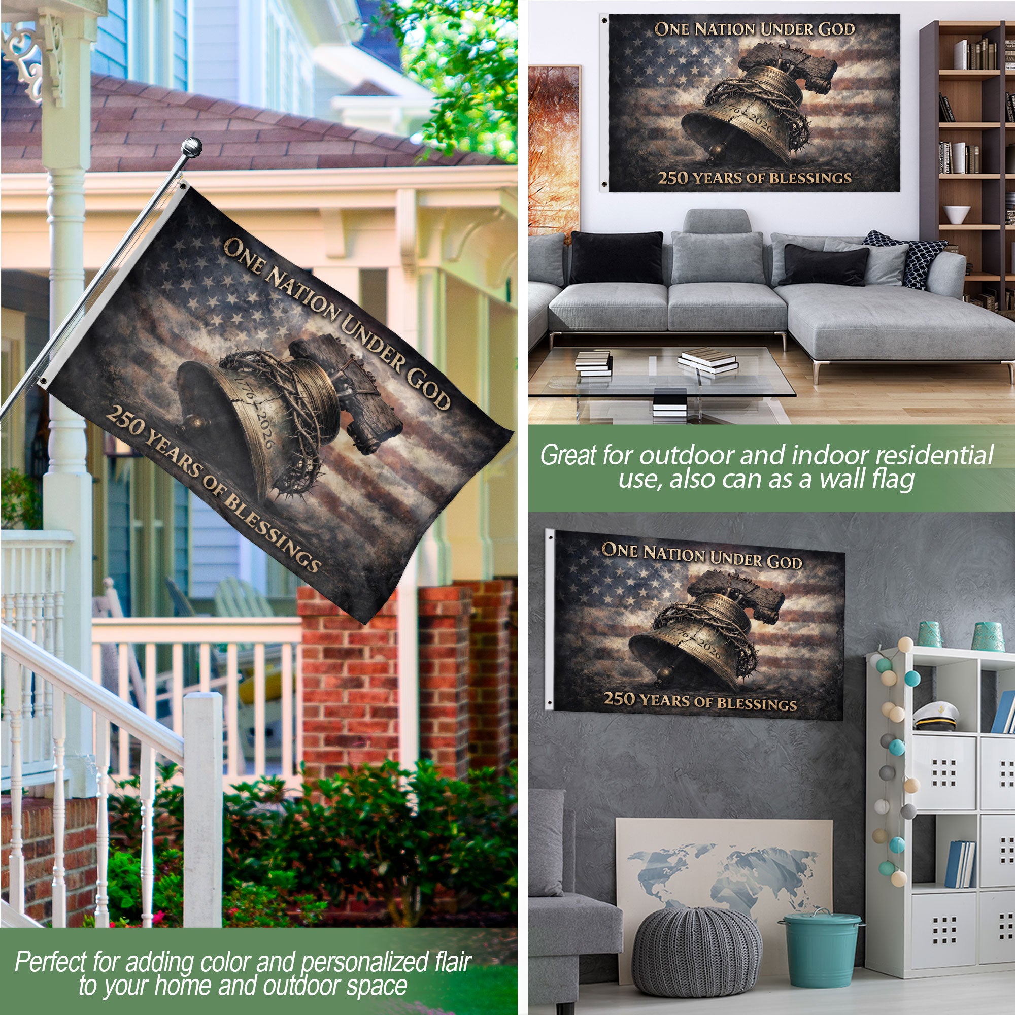 USA 250th Anniversary 1776-2026 Double Sided Patriotic Flag with Liberty Bell, Crown of Thorns, One Nation Under God