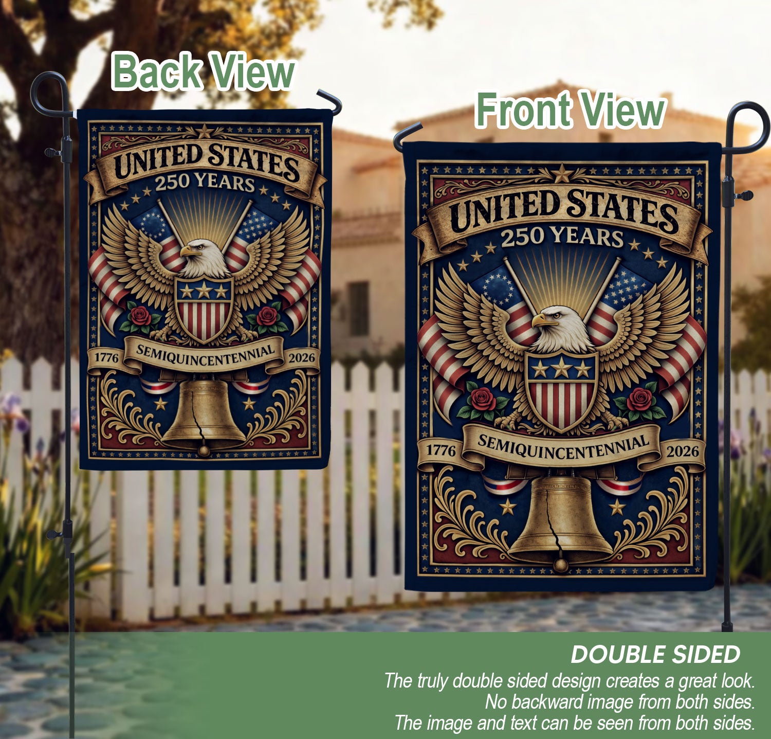1776-2026 America 250th Anniversary Garden Flag Bald Eagle US Capitol Statue of Liberty Double Sided