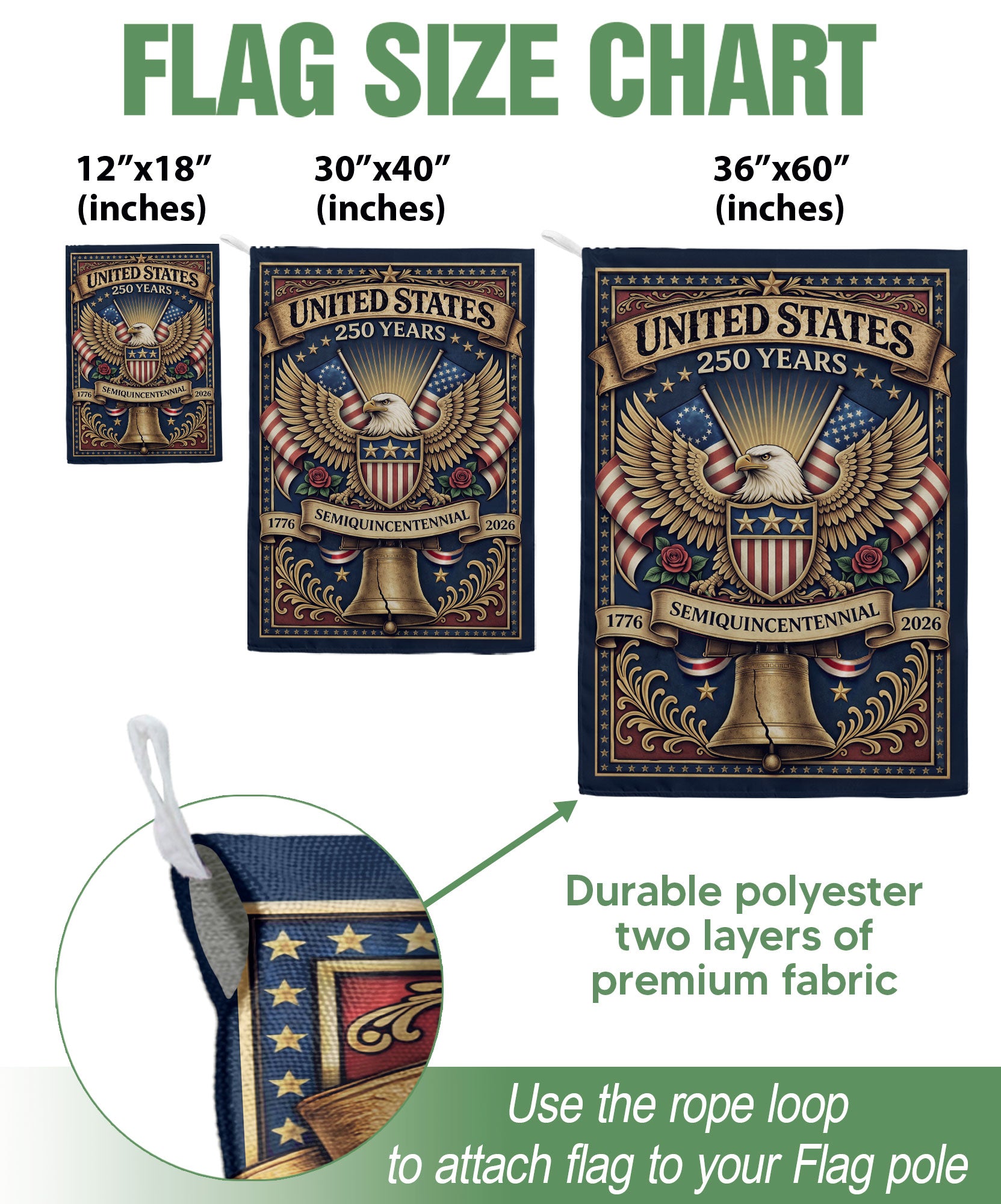 USA 250th Anniversary 1776-2026 House Flag Double Sided Bald Eagle Stars Stripes Banner