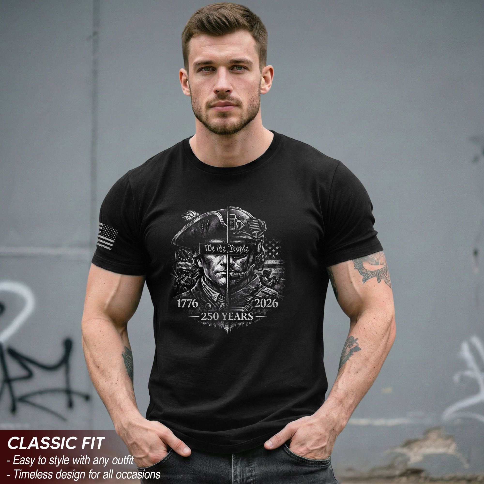 USA 250th Anniversary 1776-2026 T-Shirt Men’s Revolutionary Modern Soldier We The People