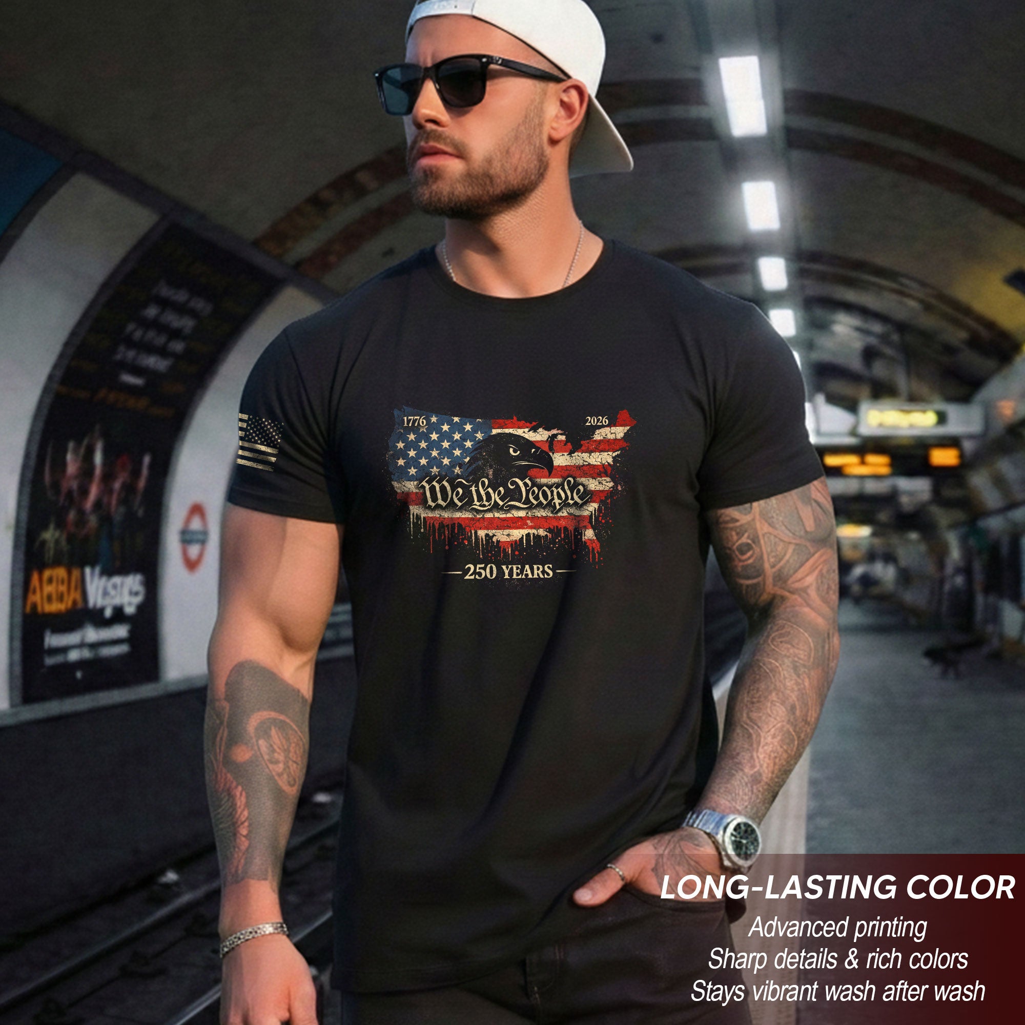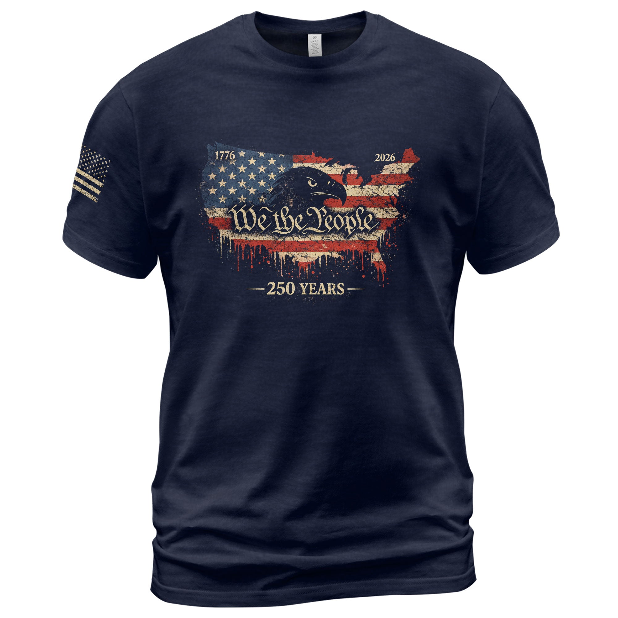 Celebrate America’s 250th anniversary from 1776 to 2026 with this patriotic T-shirt featuring a detailed USA map, majestic eagle, and the iconic ‘We The People’ slogan. This design symbolizes unity across all 50 states, honoring 250 years of freedom, independence, and shared national heritage. Crafted from soft, breathable cotton blend fabric for all-day comfort, it’s perfect for Independence Day celebrations, Fourth of July barbecues, veterans’ events, historical commemorations, or everyday wear showing your American pride. Available in multiple sizes for men, women, and unisex fit. Machine washable and durable for long-lasting wear. Ideal gift for history buffs, patriots, and anyone proud of the USA’s legacy.