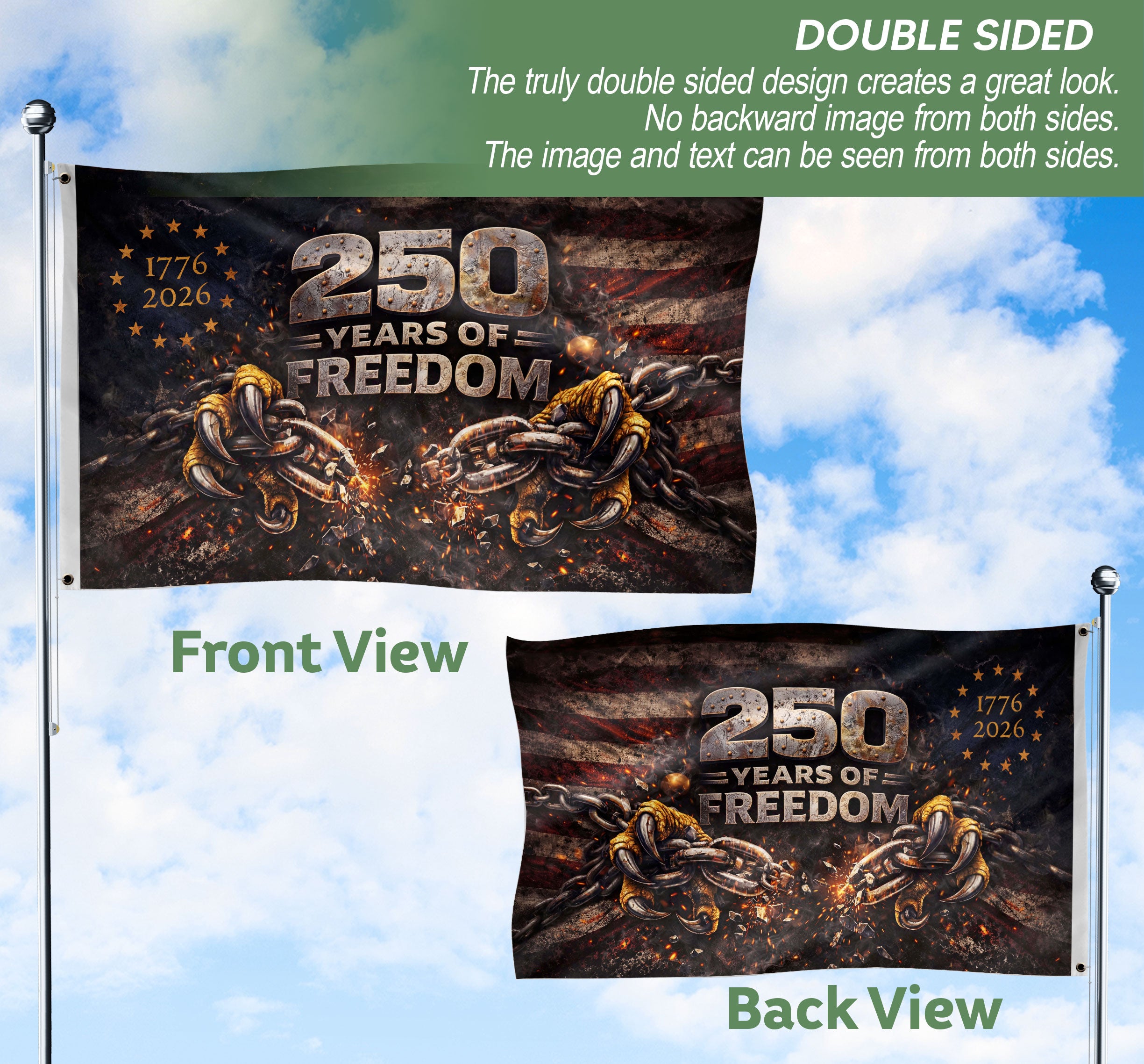 USA 250th Anniversary Double Sided House Flag 1776-2026 Breaking Chains Design