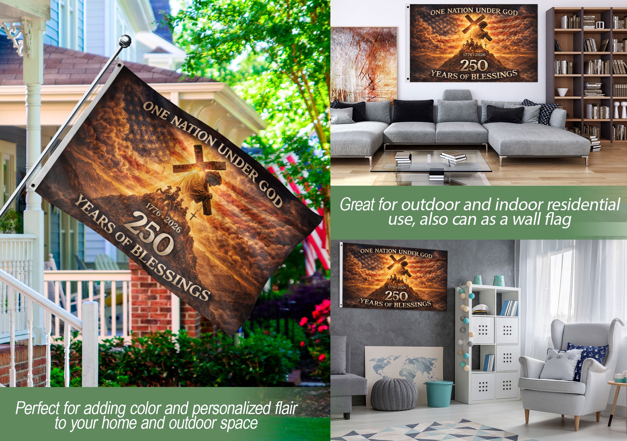 250 Years of Blessings Christian American Flag – One Nation Under God Patriot US Banner