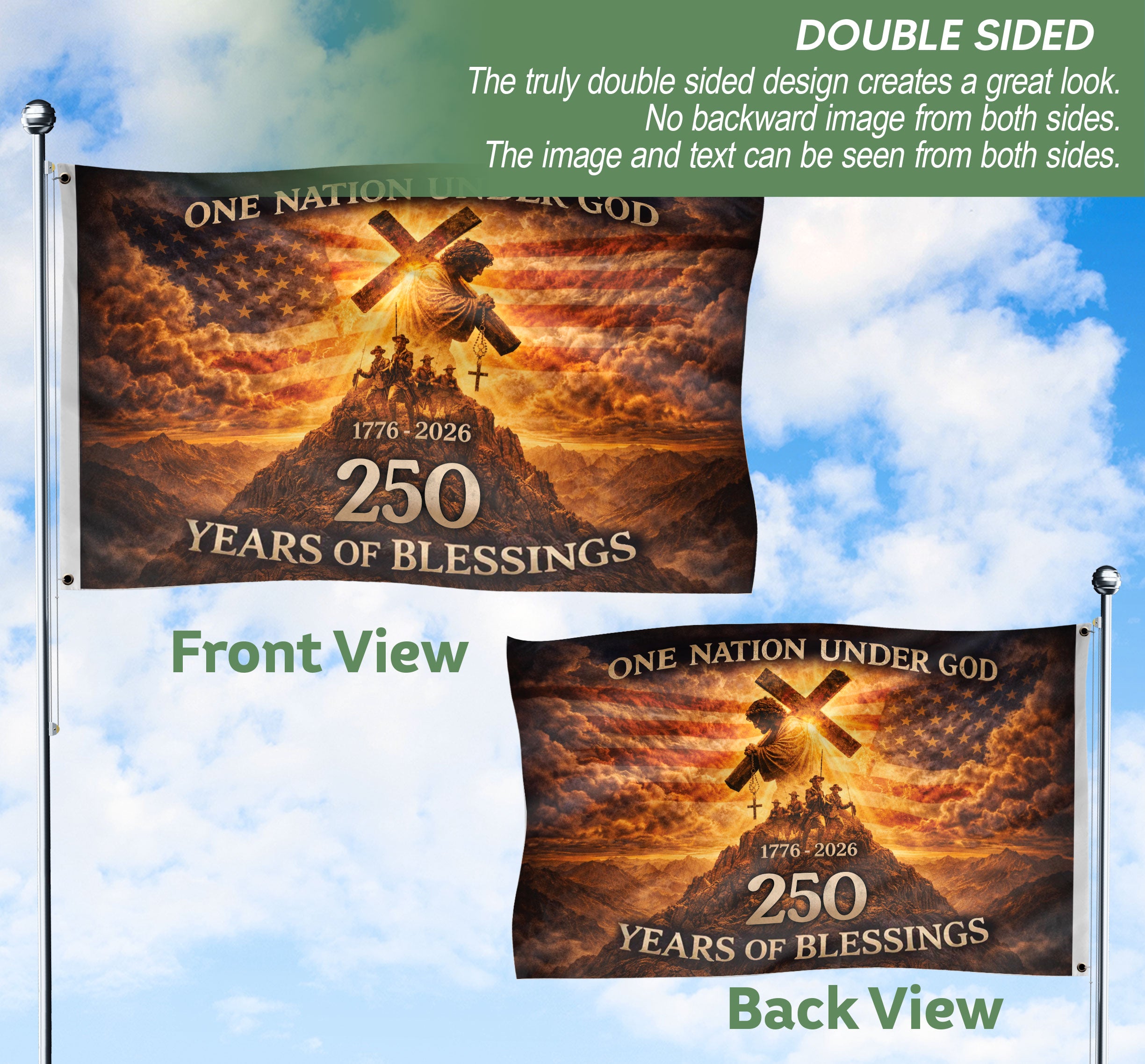250 Years of Blessings American Flag – Christian Patriotic One Nation Under God Double Sided Design
