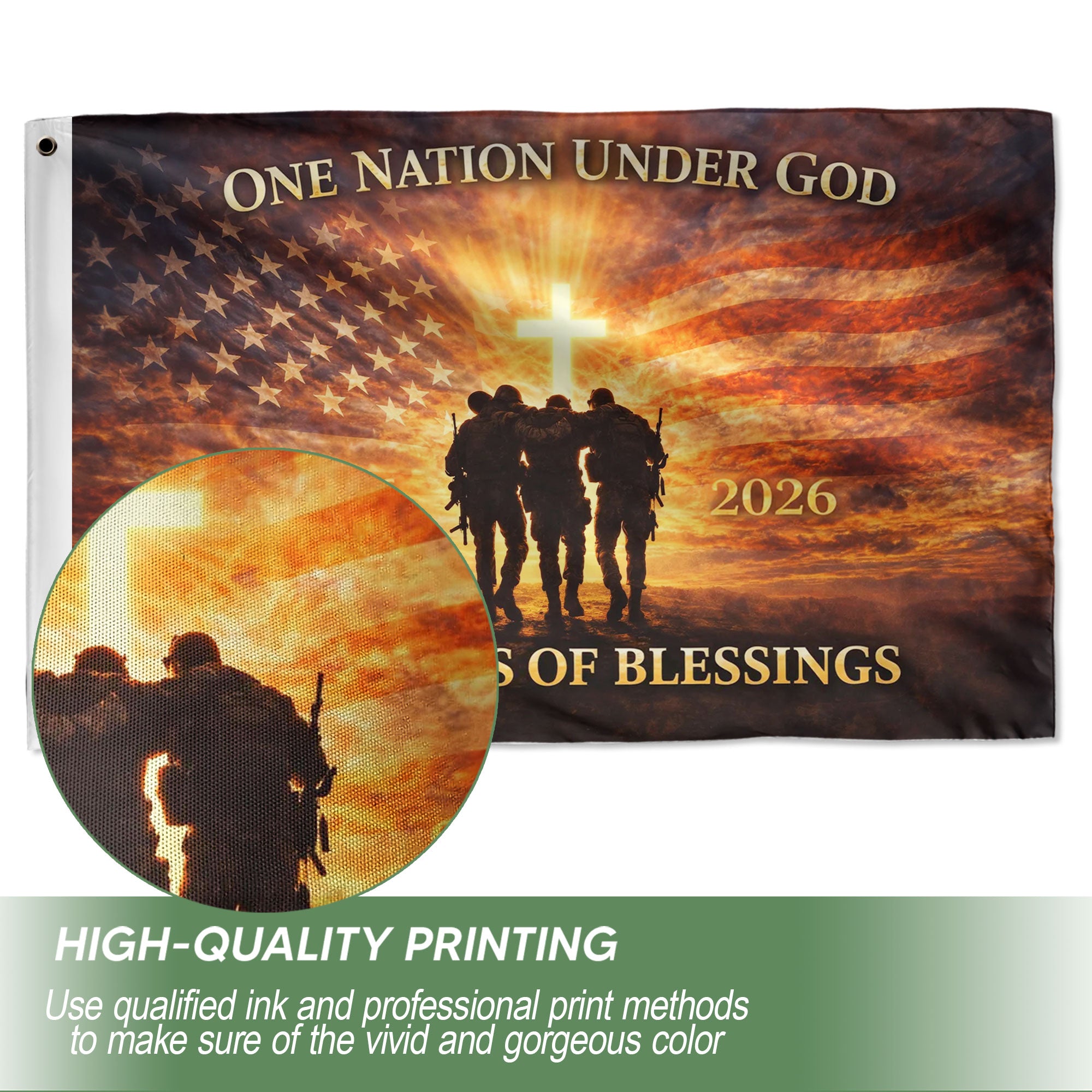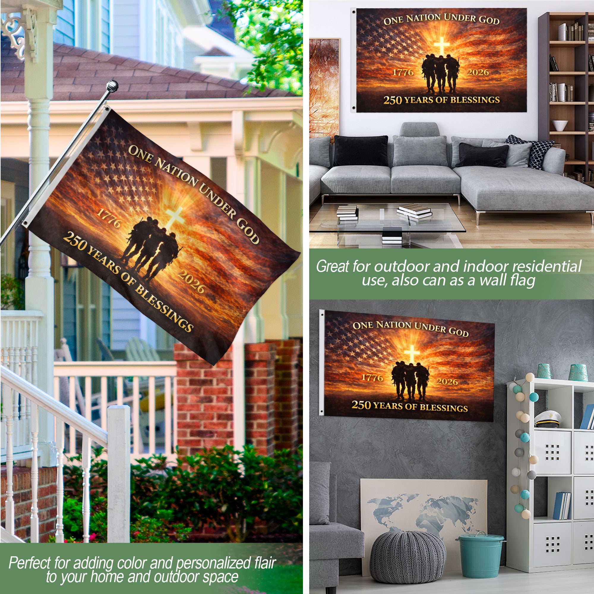 One Nation Under God 250th Anniversary American Flag with Cross 1776-2026 Patriotic Banner