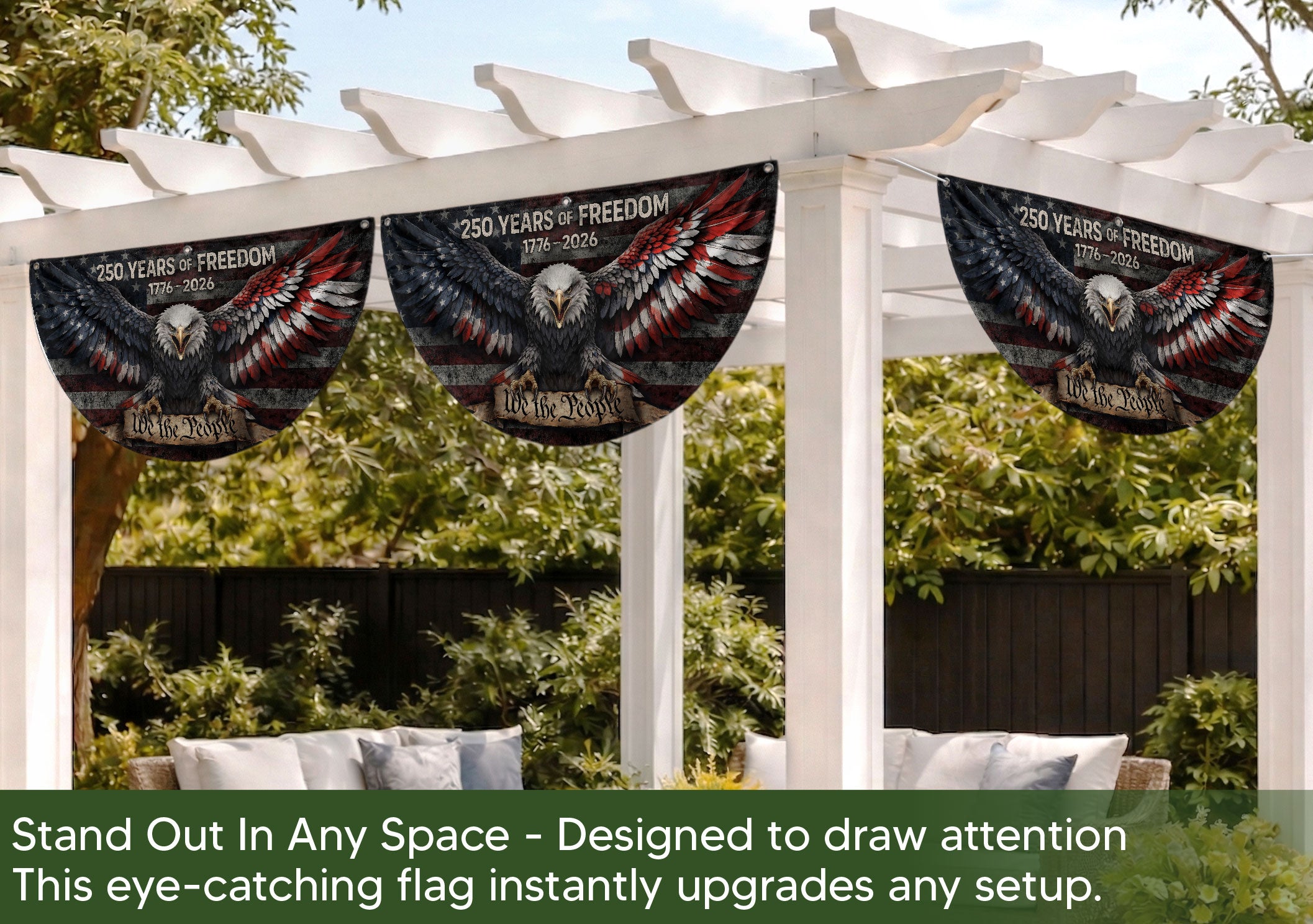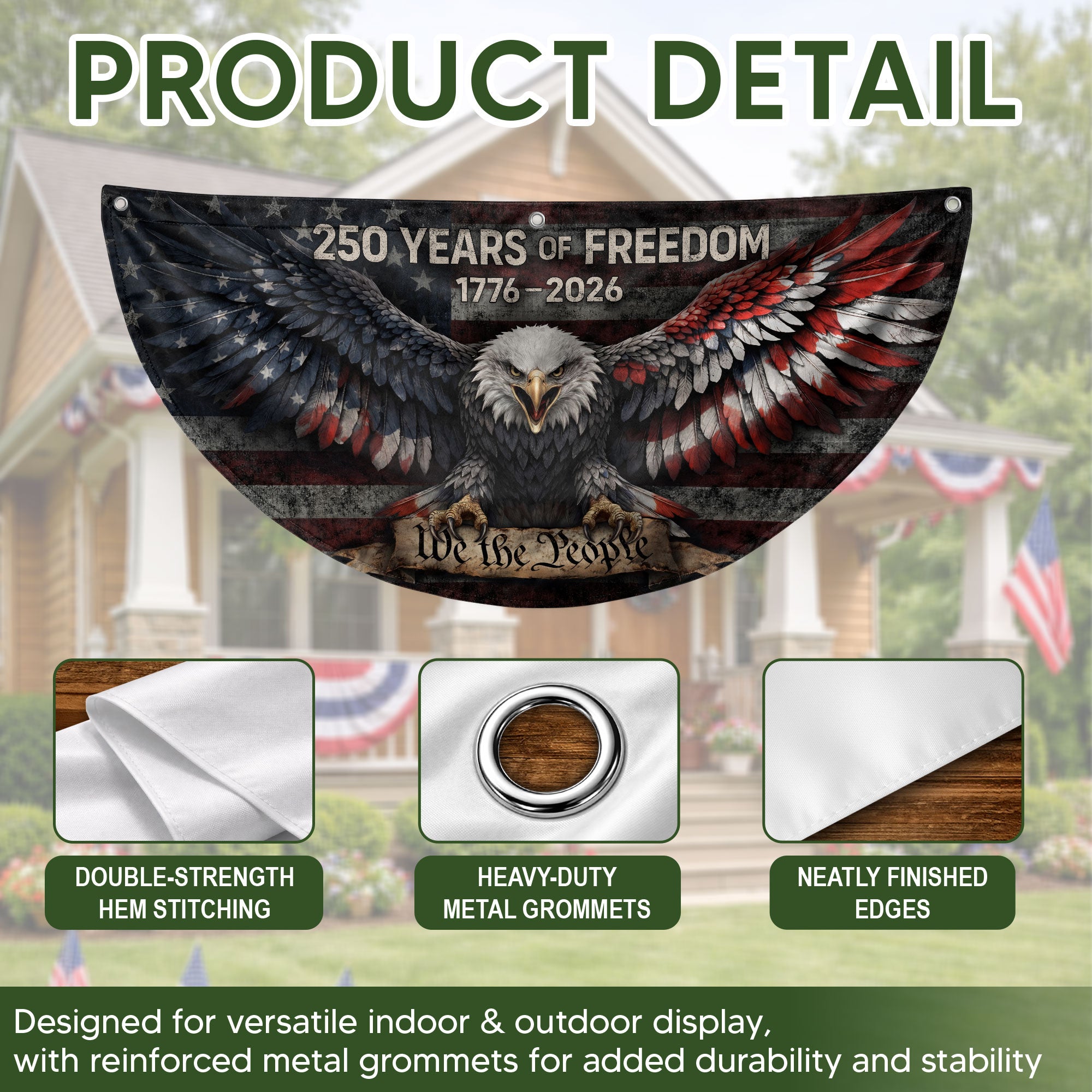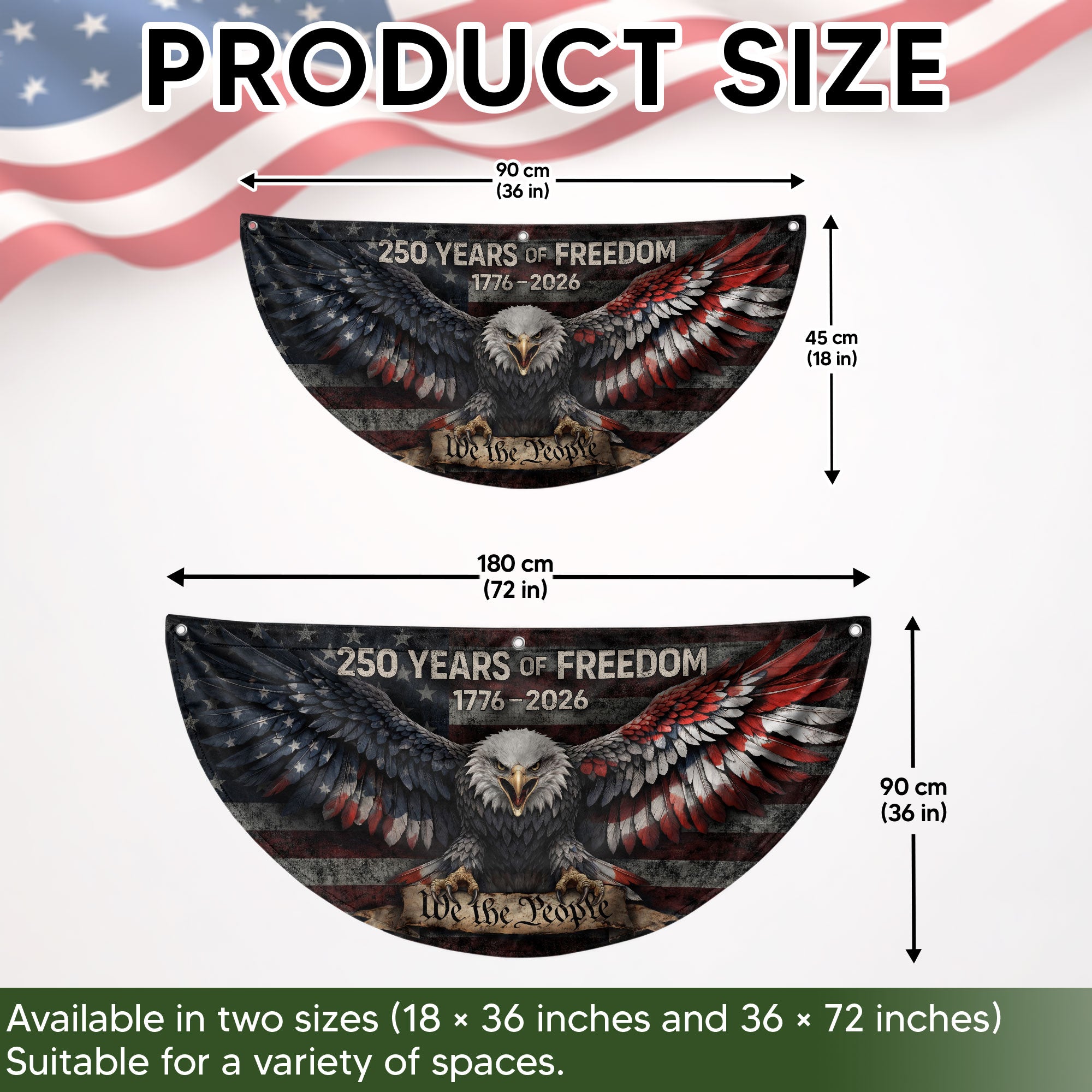 Celebrate America’s 250th anniversary from 1776 to 2026 with this striking fence flag featuring a bold American eagle design and strong patriotic theme. Perfect for outdoor display on porches, front doors, fences, or special events like Independence Day celebrations and historical commemorations. Crafted for durability to withstand weather exposure, this banner adds a meaningful touch of national pride to your home or gathering. Easy to hang and remove, it’s an ideal way to honor 250 years of freedom and American heritage.