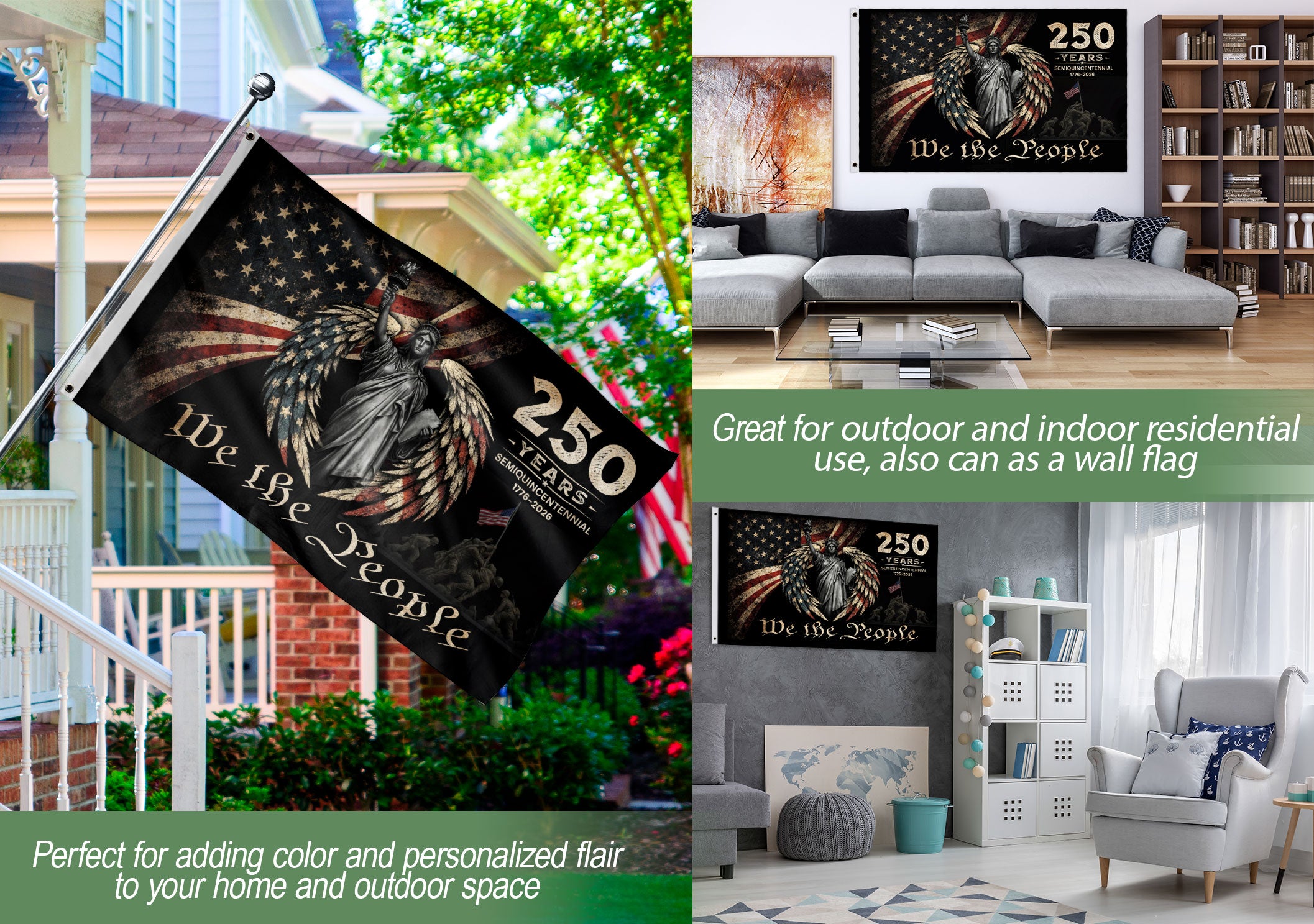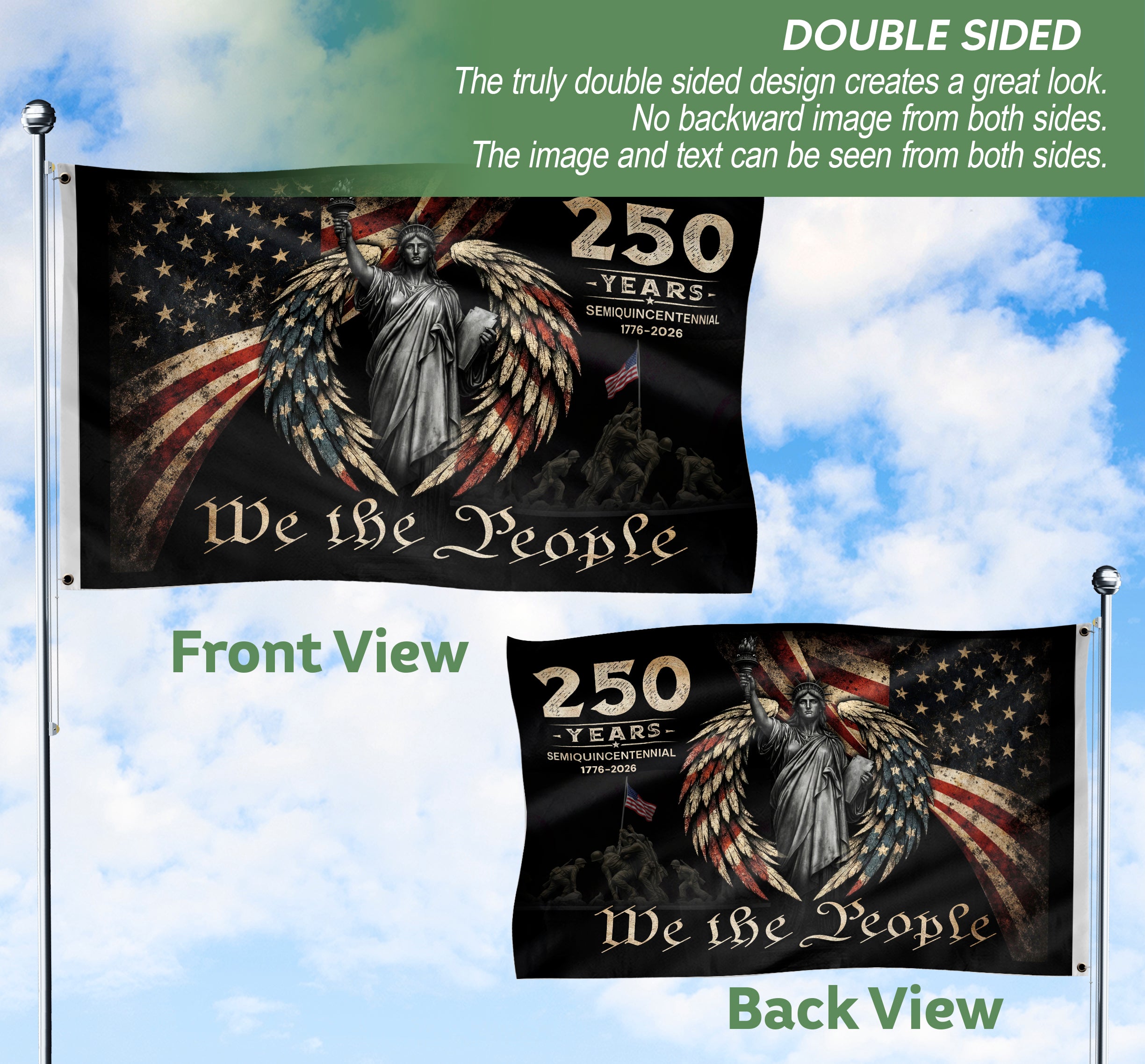 USA 250th Anniversary Flag 1776-2026 We The People Statue of Liberty Patriotic Design
