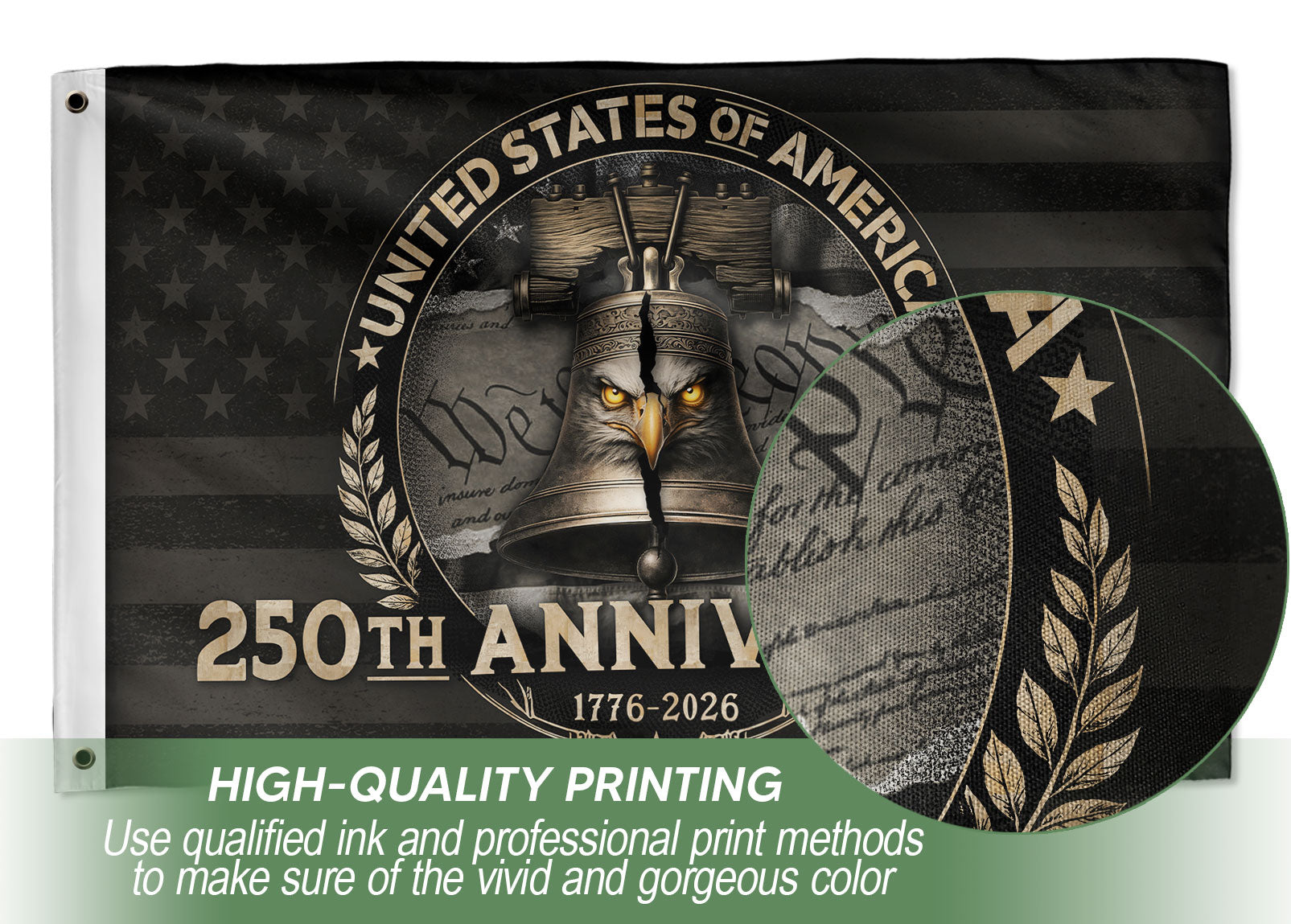 USA 250th Anniversary Flag 1776-2026 with Liberty Bell and Eagle Design