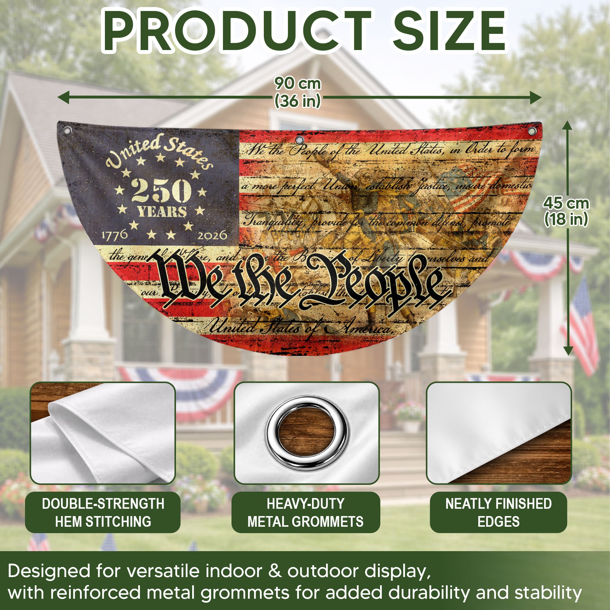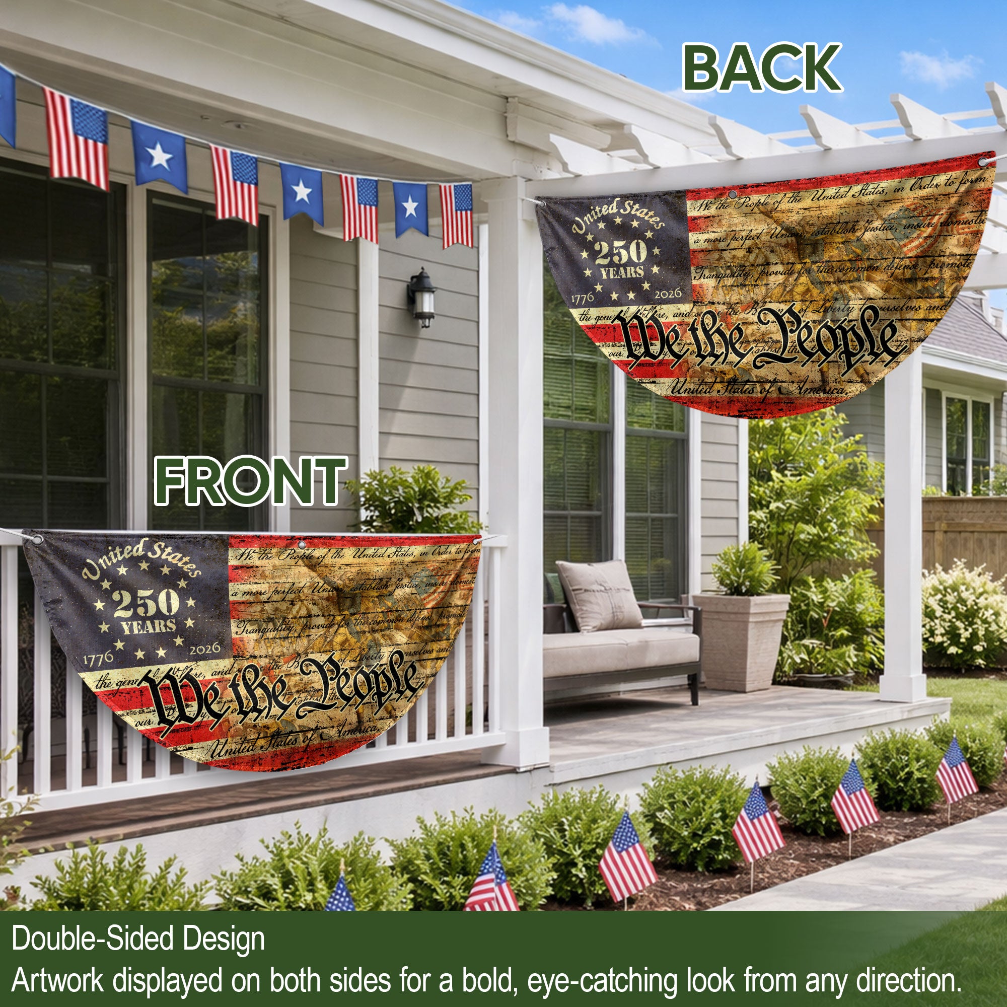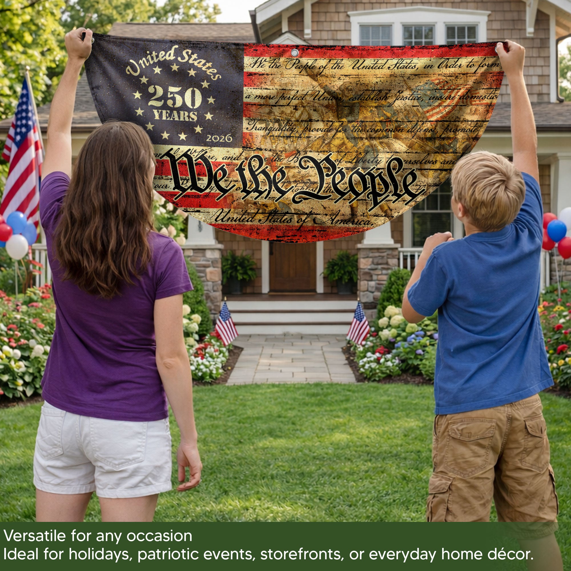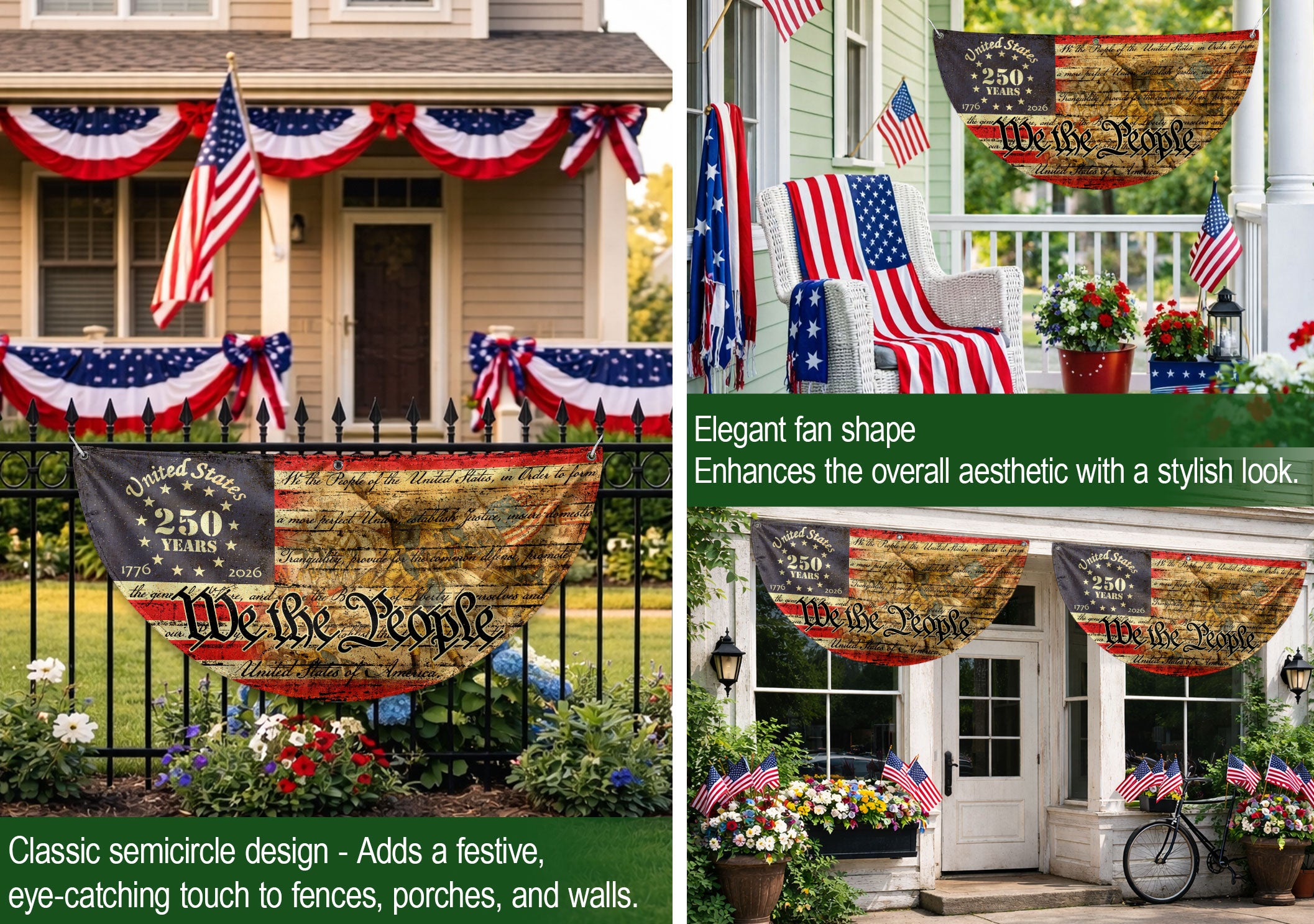 Celebrate the United States’ 250th anniversary in 2026 with this durable flag fence banner. Featuring the iconic ‘We the People’ phrase, a majestic eagle, stars, and stripes, it honors the journey from 1776 to 2026. Perfect for patriotic displays on fences, porches, or gardens, this eye-catching banner showcases American pride and historical legacy. Made for outdoor use, it withstands weather while adding a bold statement to celebrations, parades, or home decor.