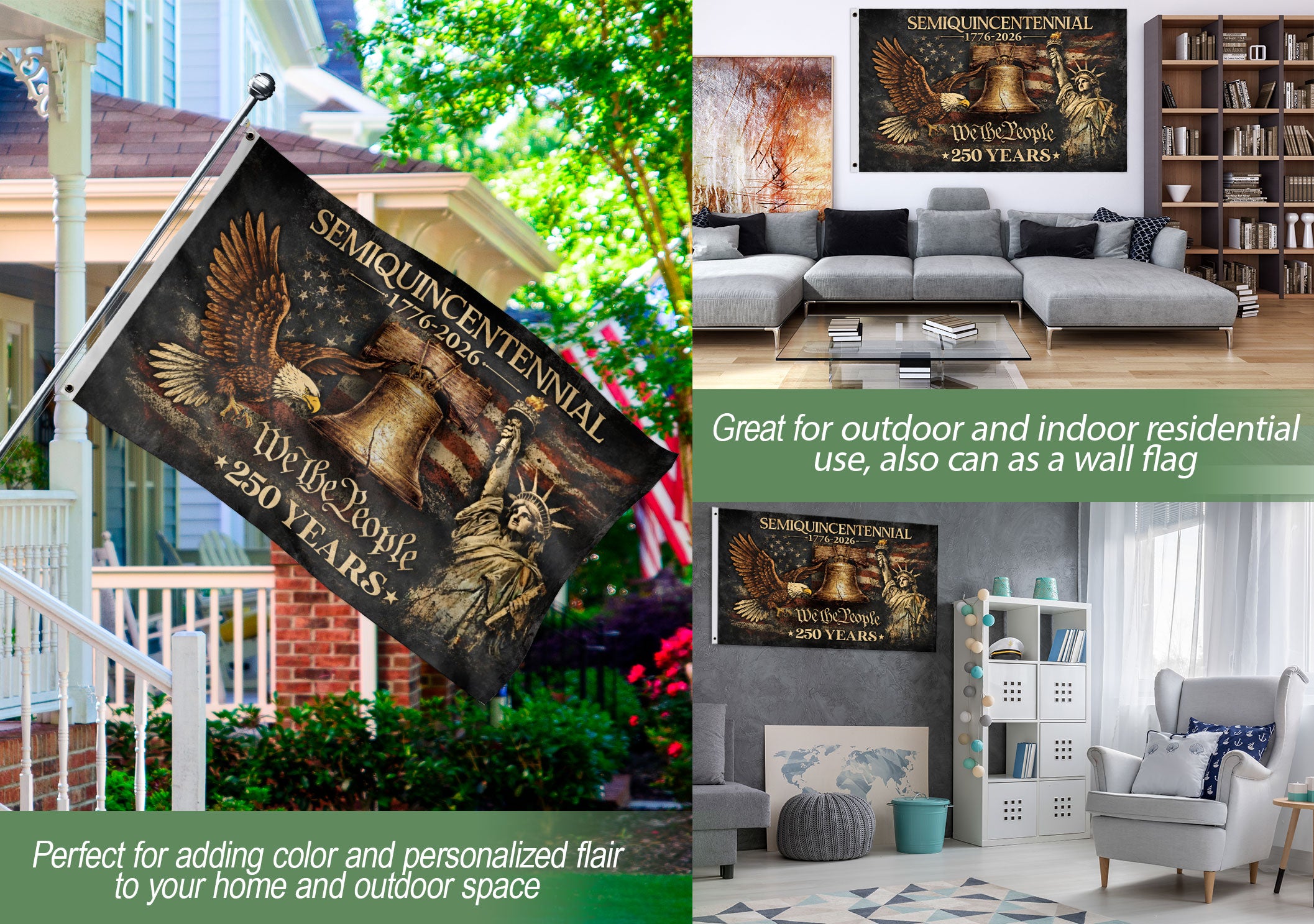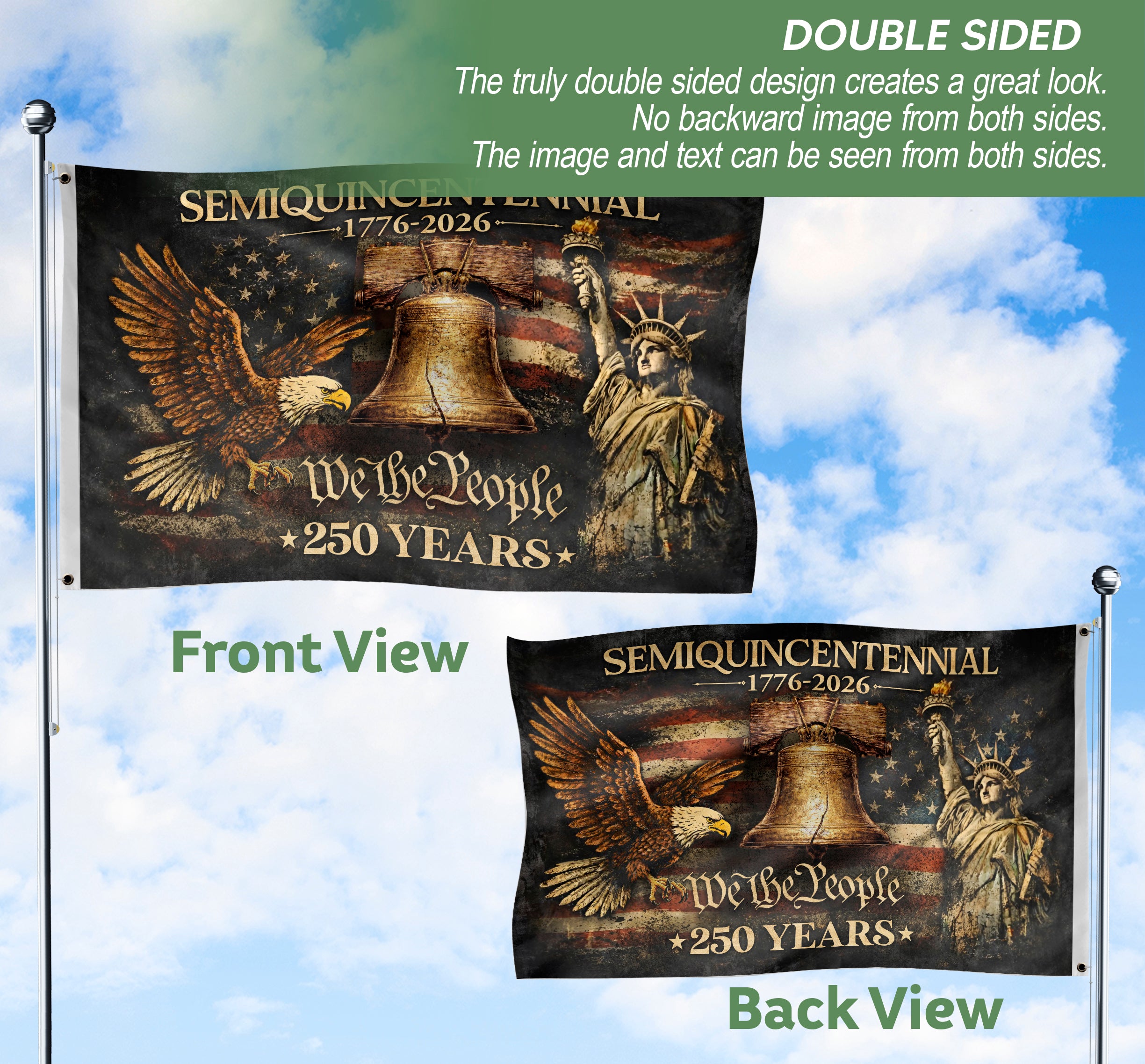 Celebrate America’s 250th anniversary with this patriotic garden flag honoring 1776-2026. Featuring ‘We The People’ and iconic symbols of liberty, freedom, and unity, this durable outdoor flag is perfect for displaying national pride in your yard, garden, or porch. Crafted for weather resistance, it captures the enduring spirit of independence and patriotism that defines the United States. Ideal for holidays, commemorations, or everyday expression of American values.