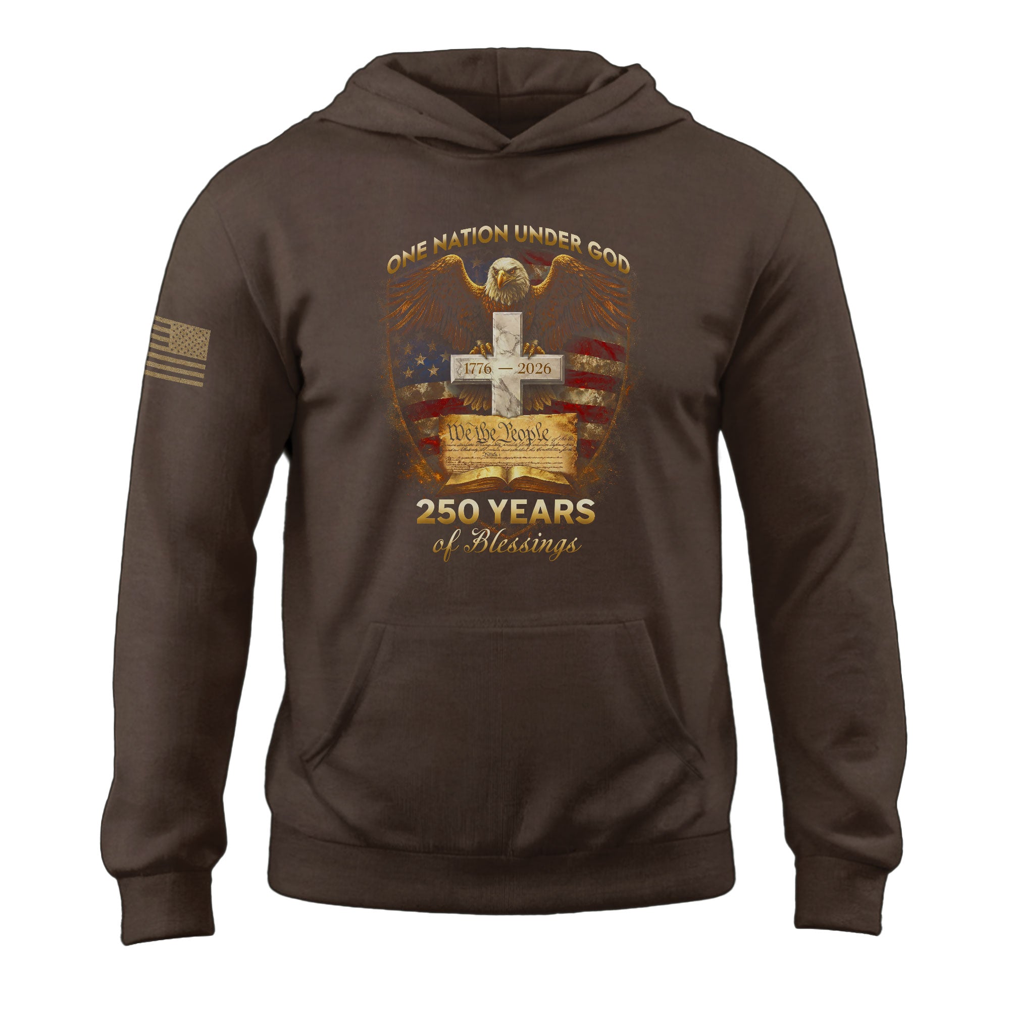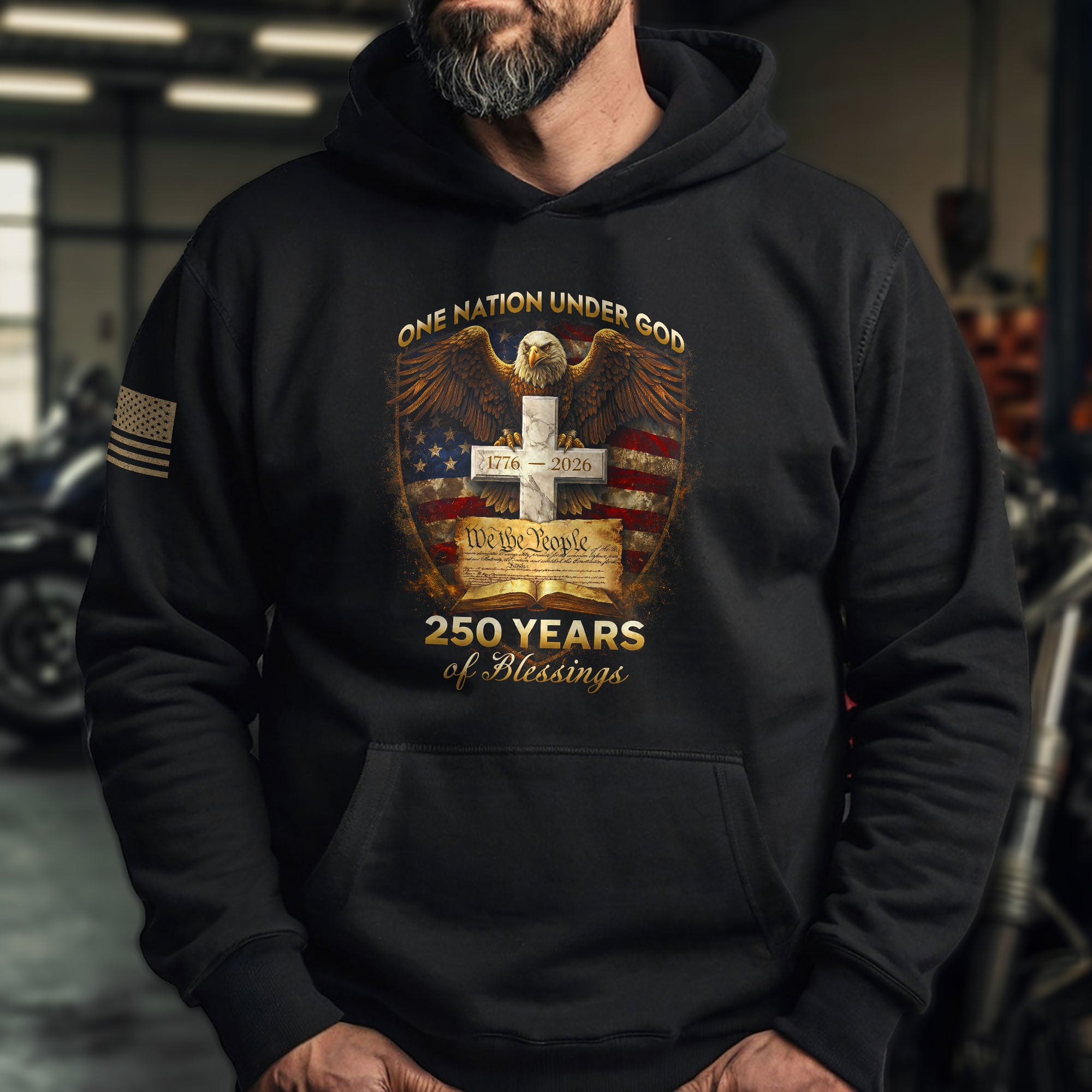 USA 250th Anniversary Hoodie 1776-2026 Patriotic Flag Eagle Cross One Nation Under God