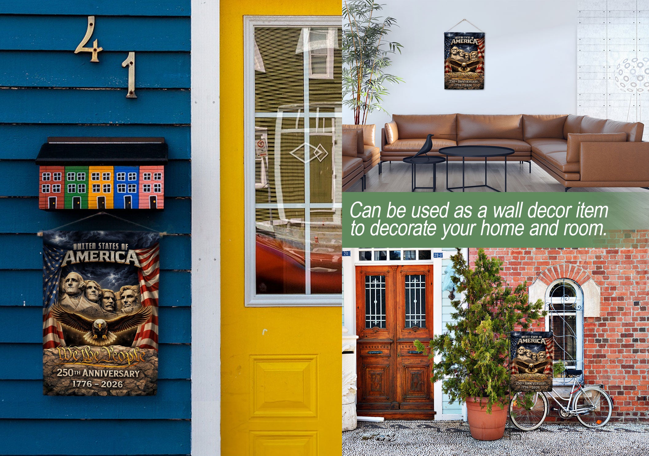 Celebrate America’s 250th anniversary from 1776 to 2026 with this patriotic double-sided house flag. Featuring a striking design with Mount Rushmore, a majestic eagle, and the iconic Stars and Stripes, this outdoor yard decoration proudly displays 250 years of freedom. Perfect for porches, gardens, or any outdoor space, it’s crafted for durability to withstand the elements while showcasing national pride. Ideal for Independence Day, Memorial Day, or everyday display of American heritage.