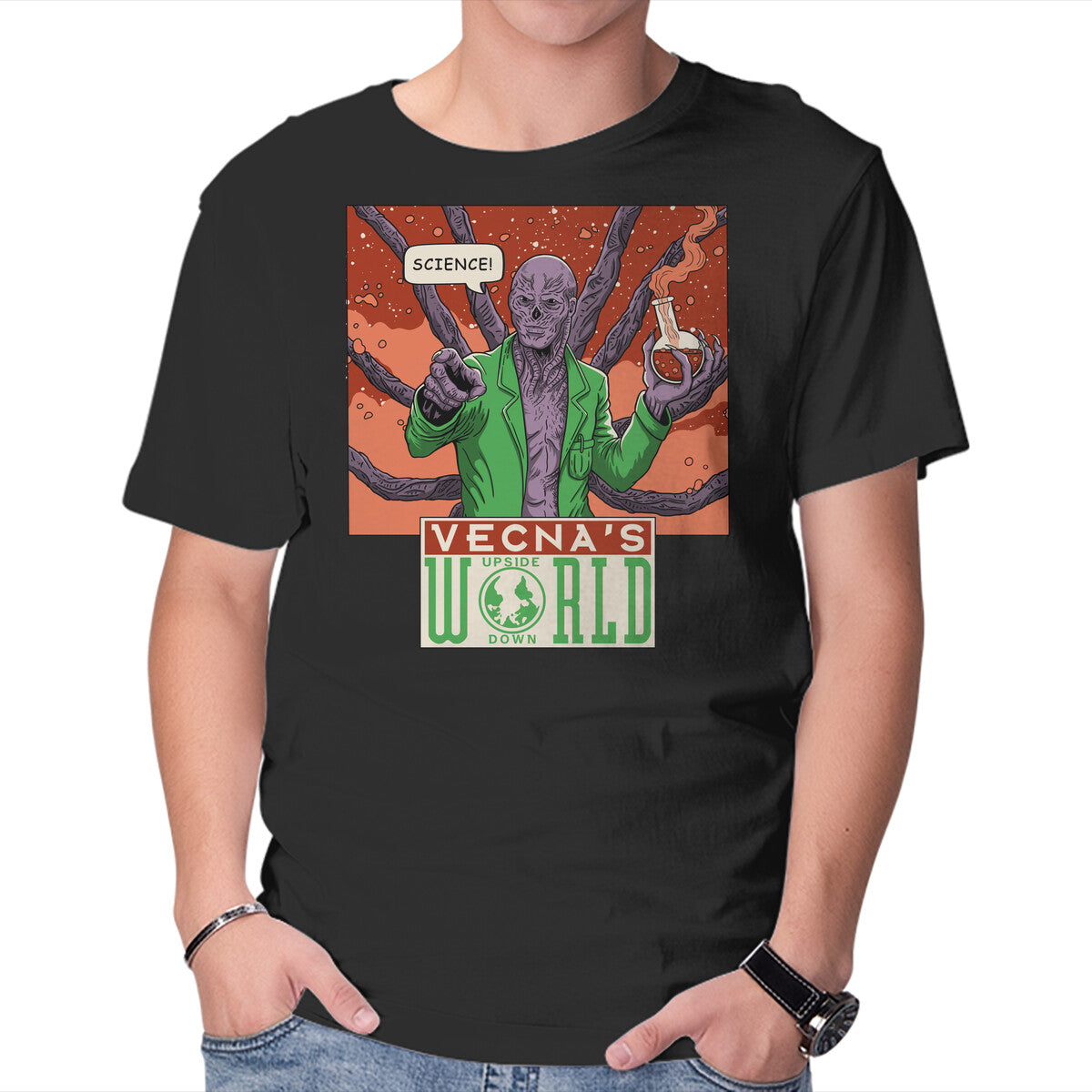 Vecna’s World is a great Mens Basic Tee from our amazing collection of custom fandom inspired products. This product was designed by JCMaziu, who is part of our exclusive pop-culture inspired artist community.