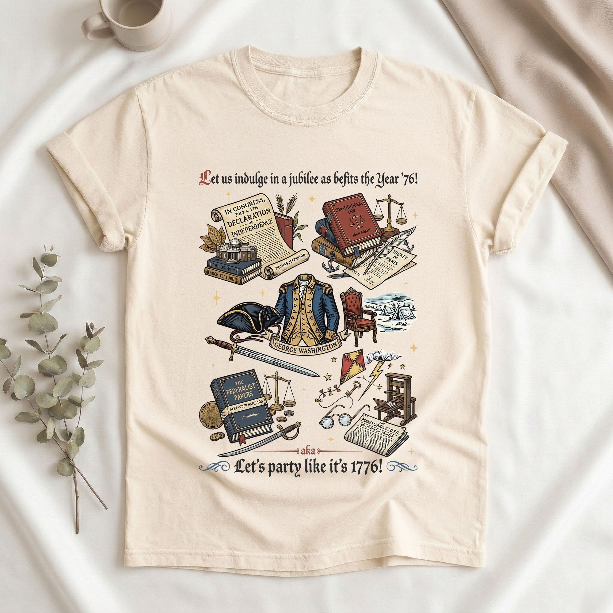 Celebrate American independence with this vintage 1776 patriotic T-shirt, featuring classic history icons and a timeless distressed design. Crafted from soft, breathable cotton for all-day comfort, it’s perfect for Independence Day celebrations, 4th of July barbecues, history buffs, and anyone proud of USA heritage. The retro graphic showcases key moments from 1776, evoking patriotism and national pride. Available in multiple sizes for men, women, and unisex fit. Machine washable and durable for everyday wear or special events like Memorial Day or Veterans Day.