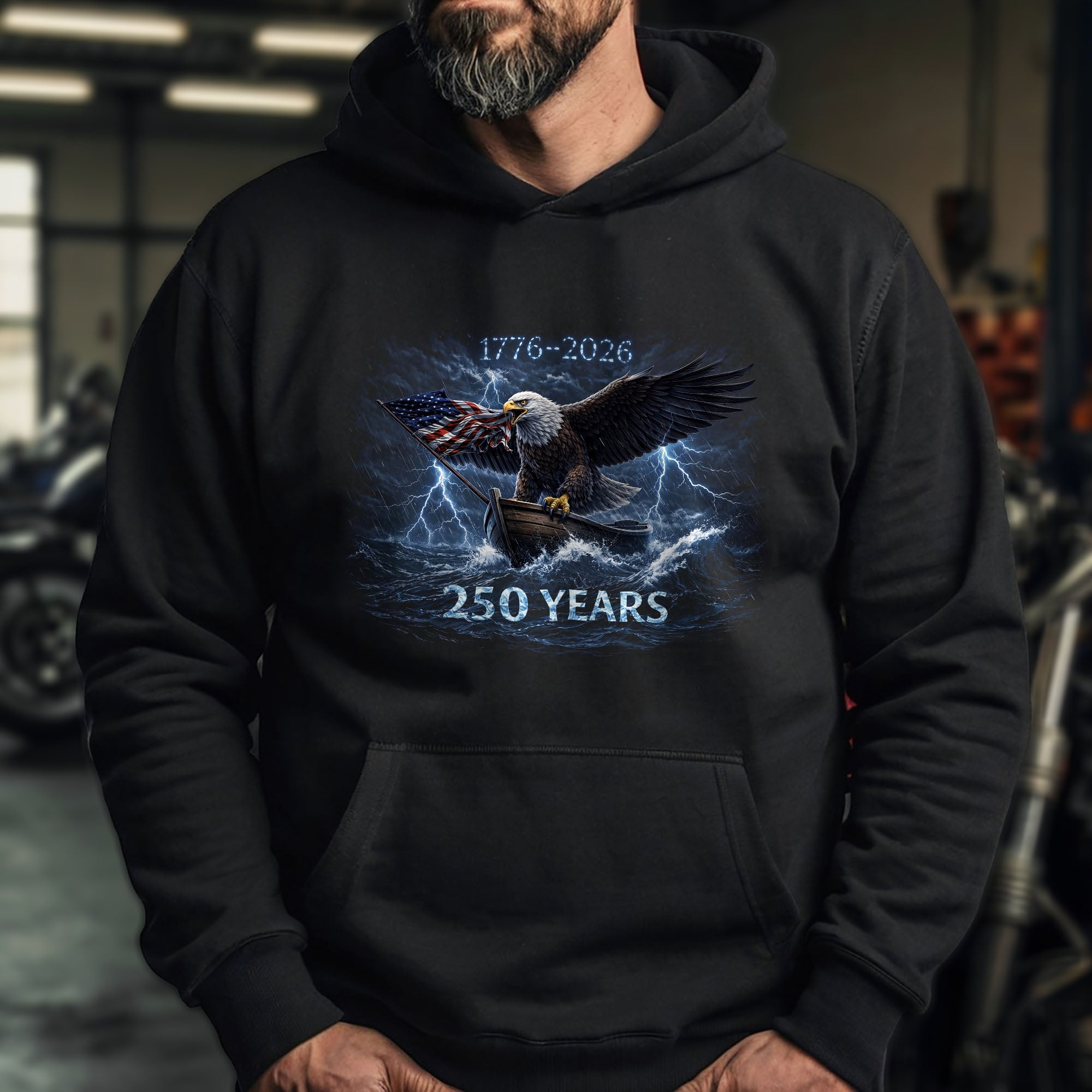 Vintage Bootleg 250 Years America Anniversary Hoodie 1776-2026 Eagle Flag Graphic