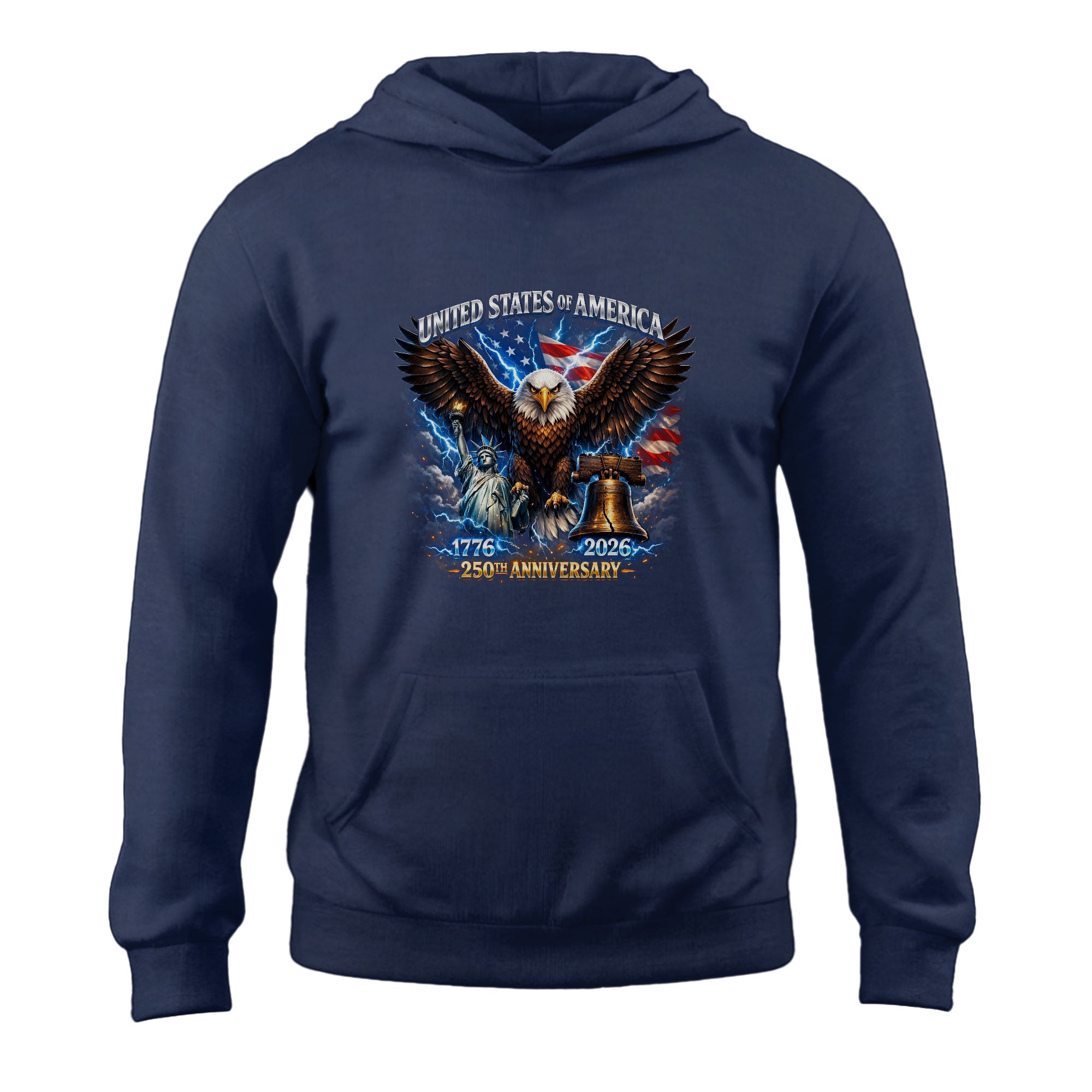 Vintage Bootleg USA Eagle Hoodie – 1776-2026 250th Anniversary Patriotic Liberty Bell Shield Graphic