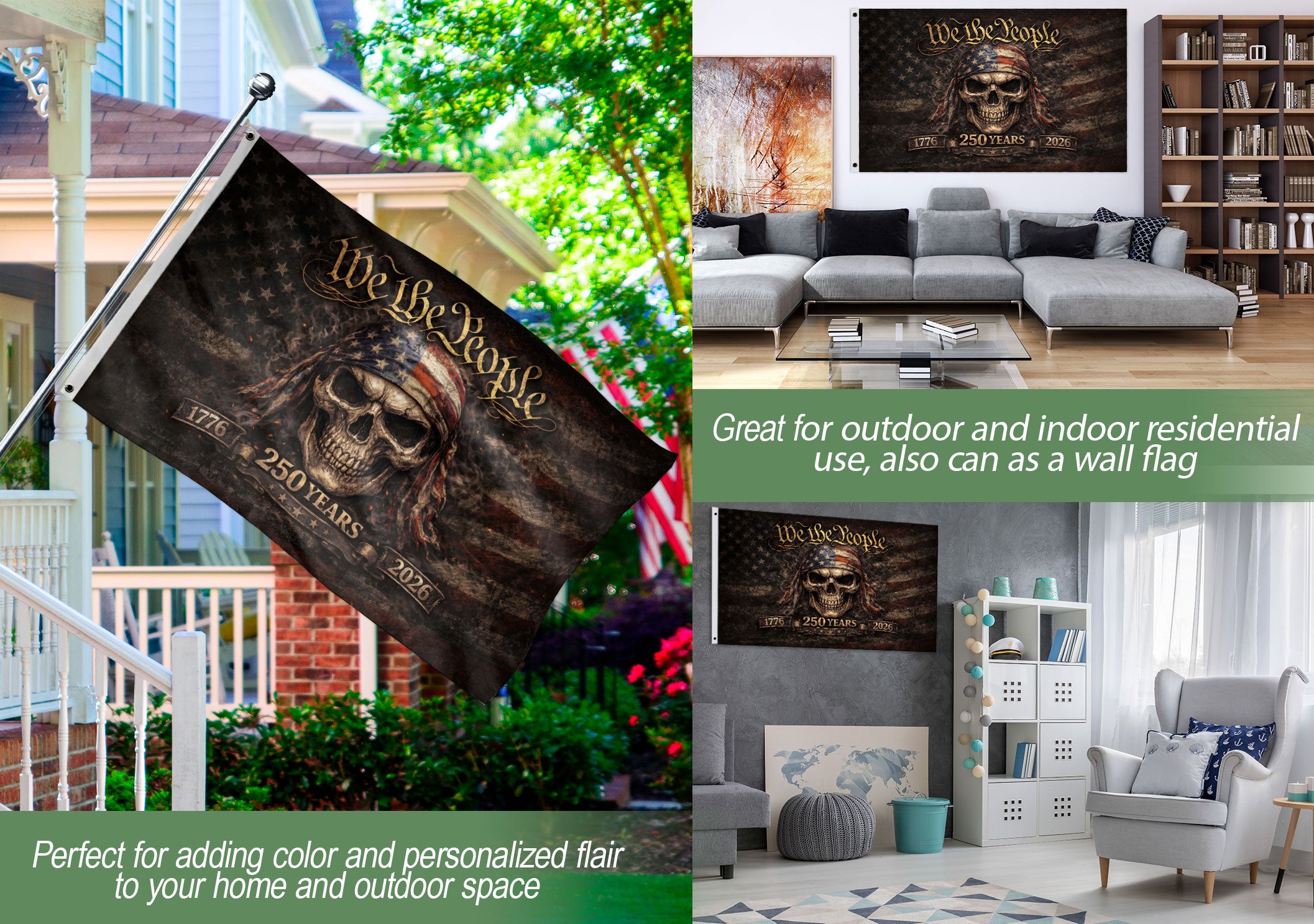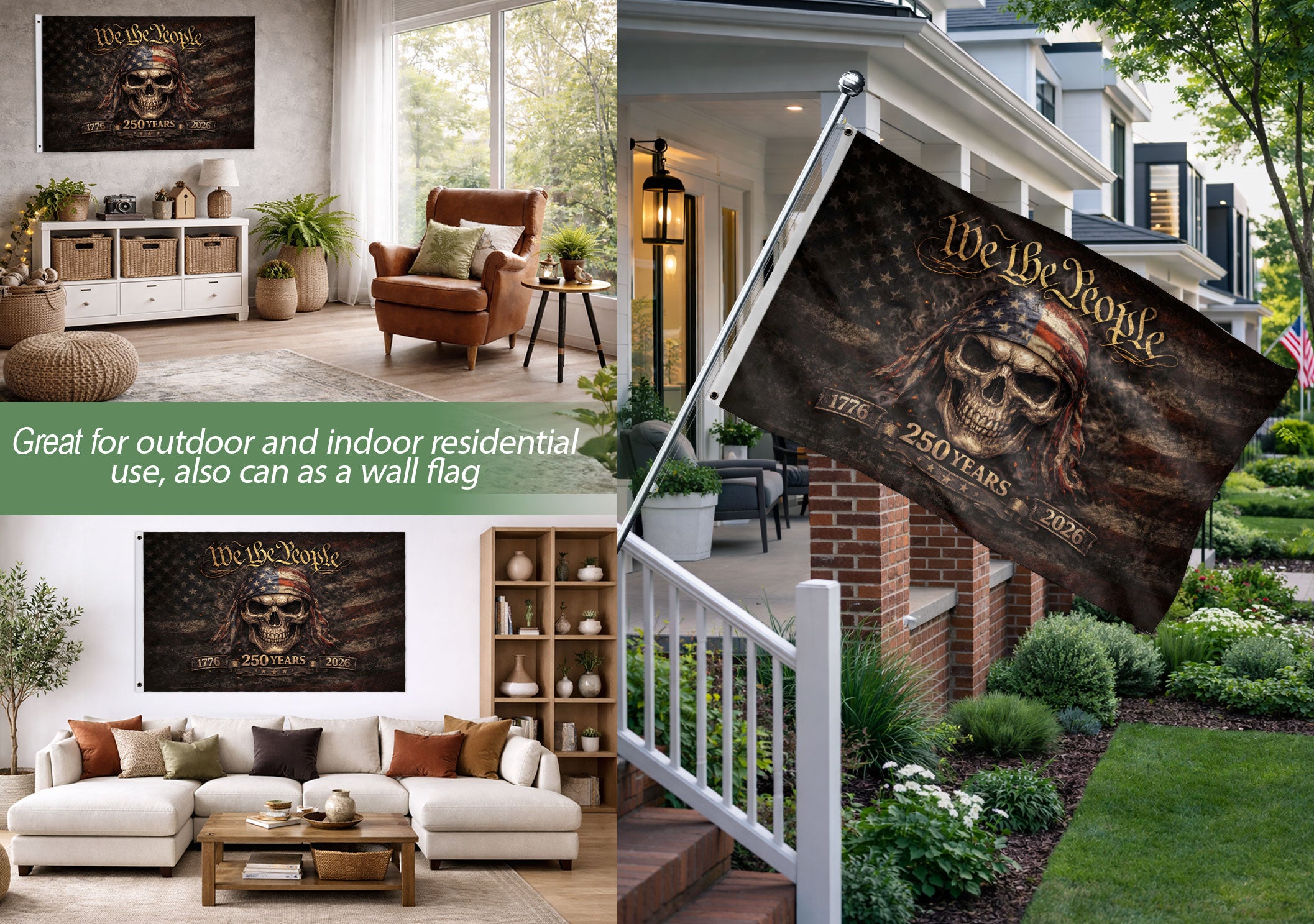 We The People 1776-2026 Patriotic Skull 250 Years House Flag