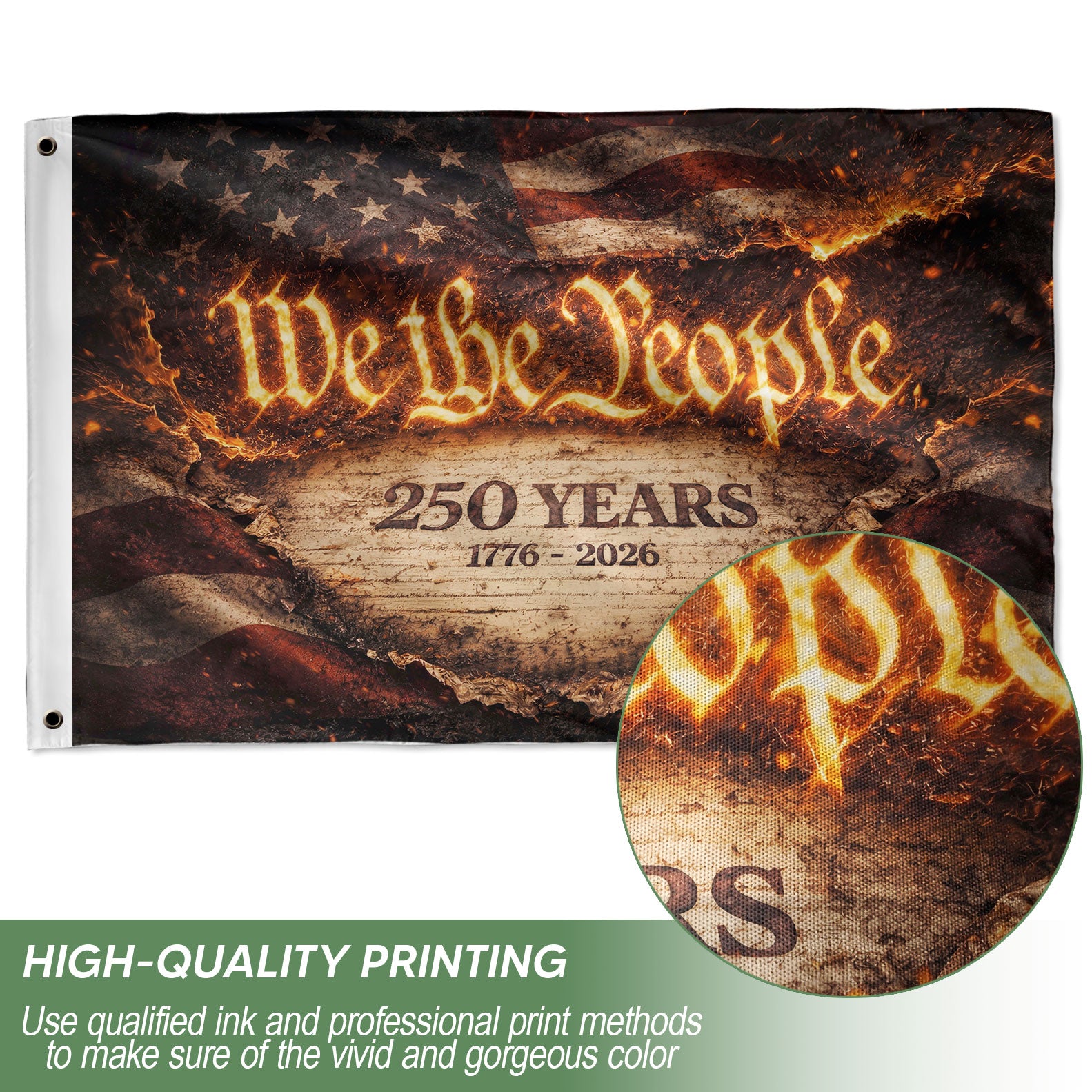 We The People 250 Years 1776-2026 Fire Style Patriotic Double Sided Yard Flag