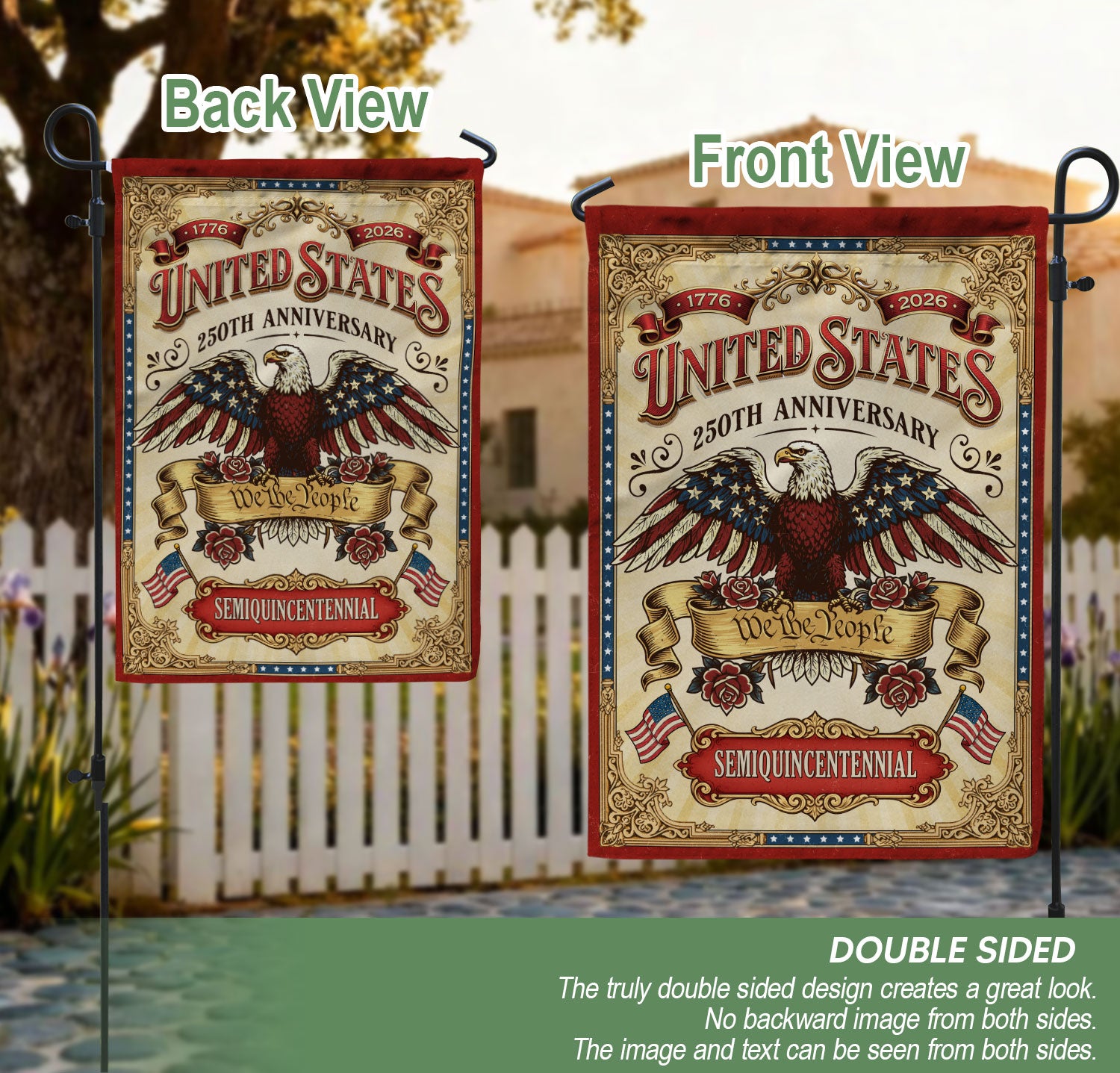 We The People 250 Years United States 1776-2026 Garden Flag Bald Eagle Double Sided